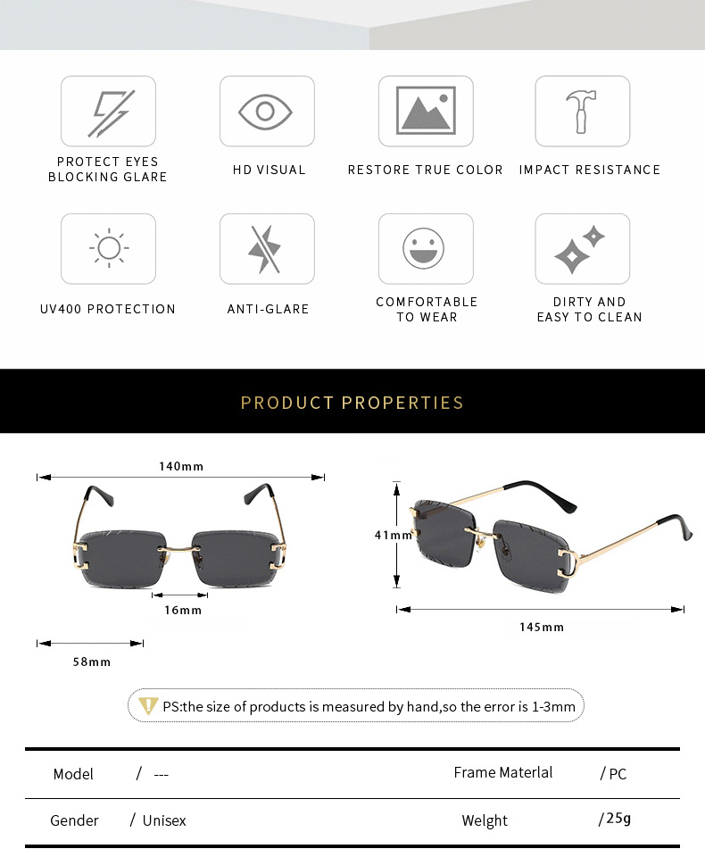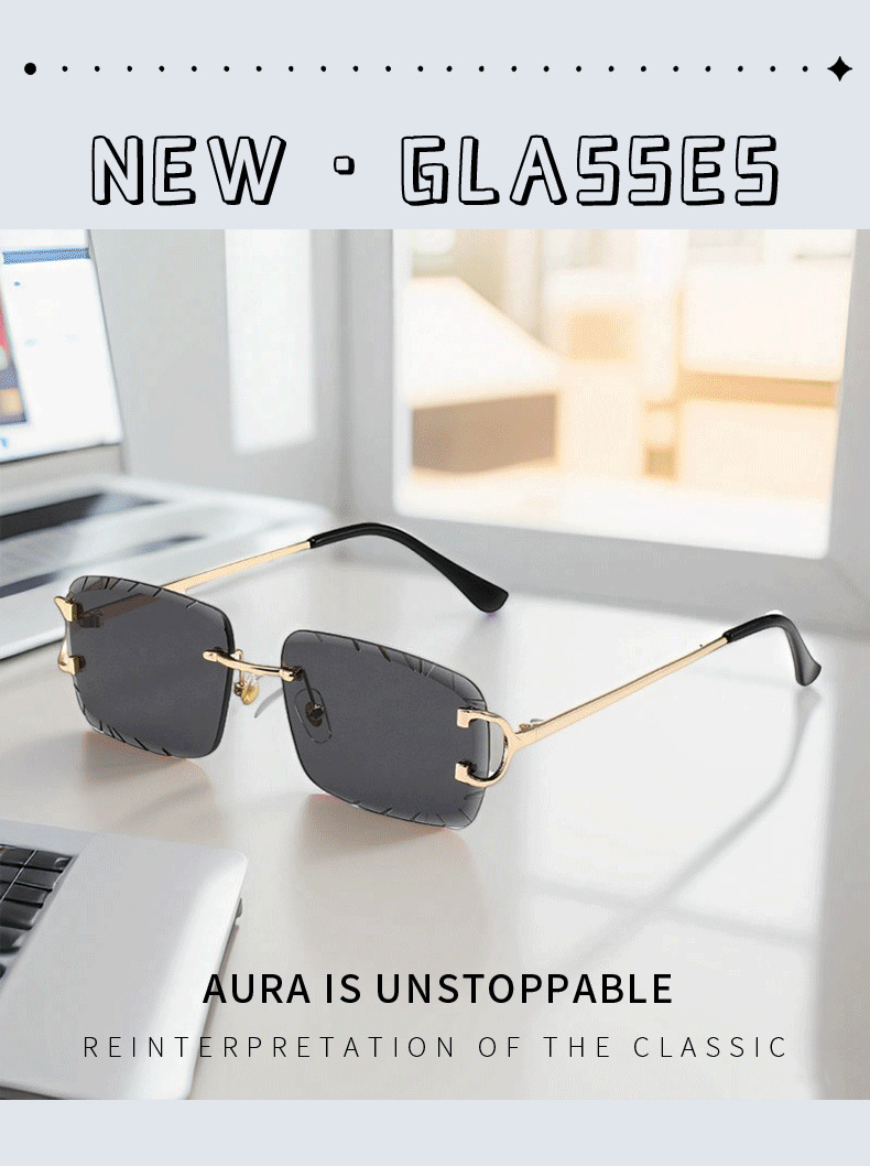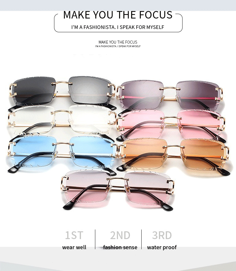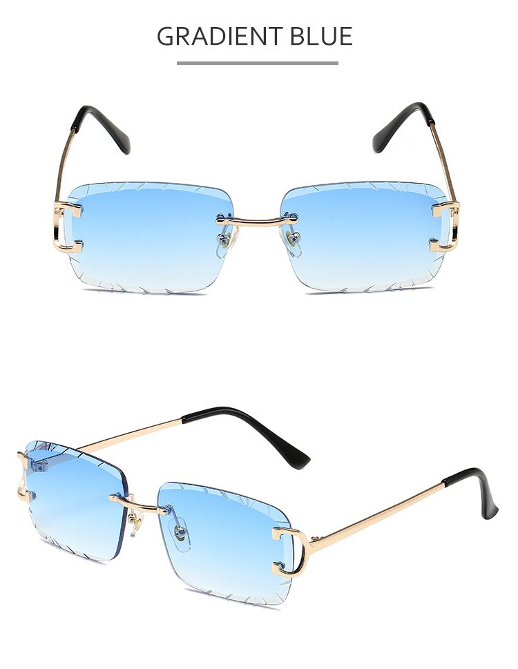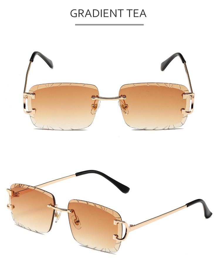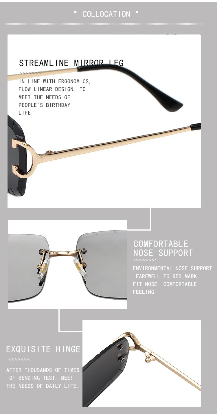 새로운 도착 Rimless 선글라스 여성 작은 상자 사이버 연예인 그라디언트 선글라스 패션 거리 사진 촬영 기관 국경 안경