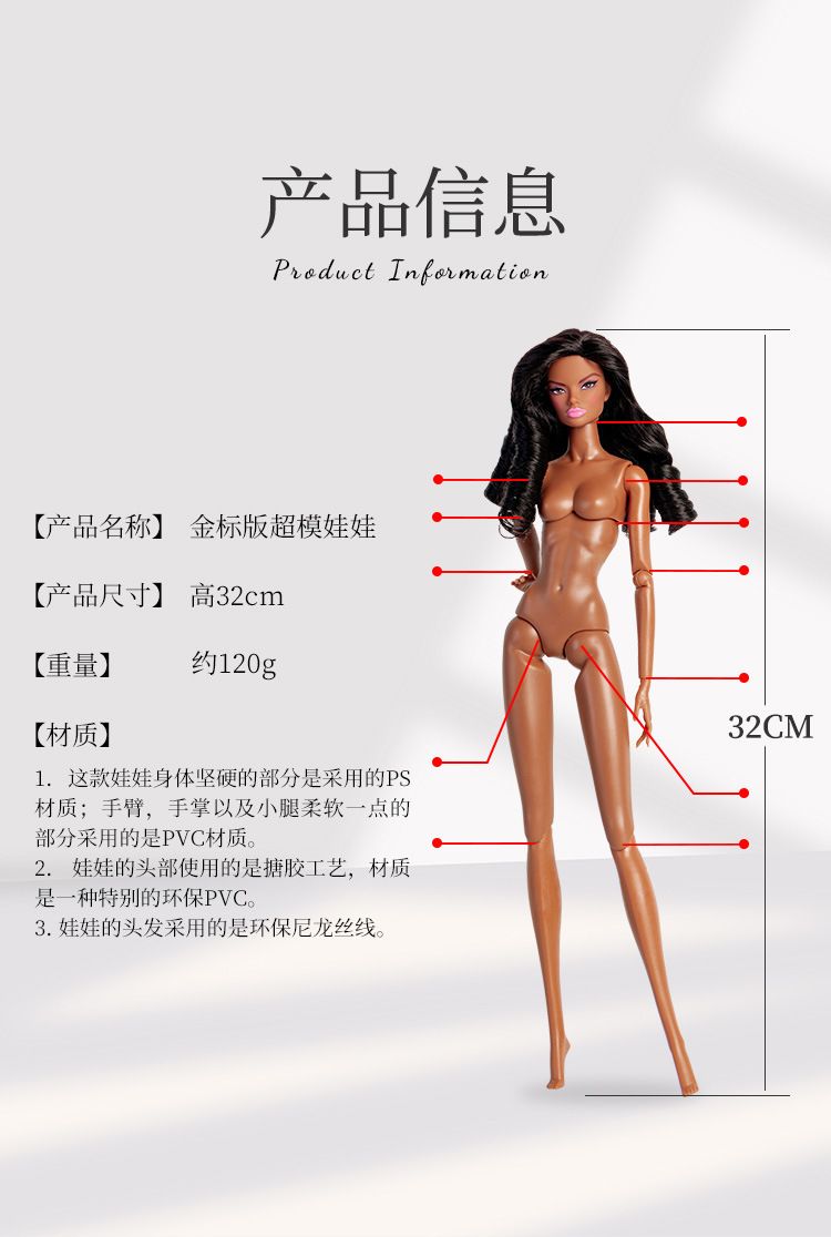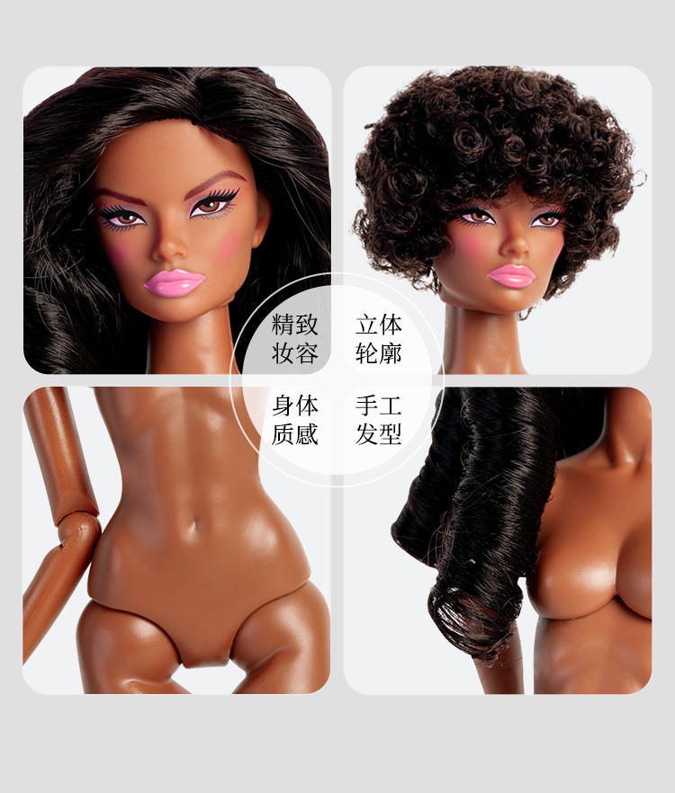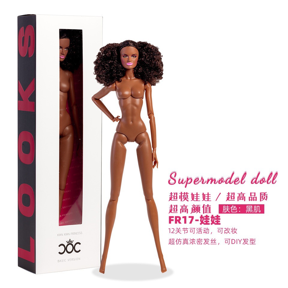 아프리카 블랙 스킨 컬러 슈퍼 모델 bjd 알몸 인형 6 포인트 비닐 인형 트렌디 장난감 멀티 조인트 액션 인형