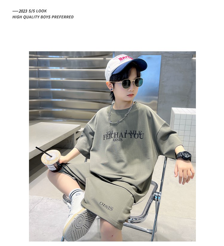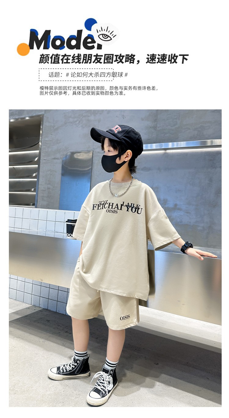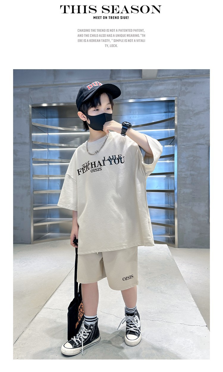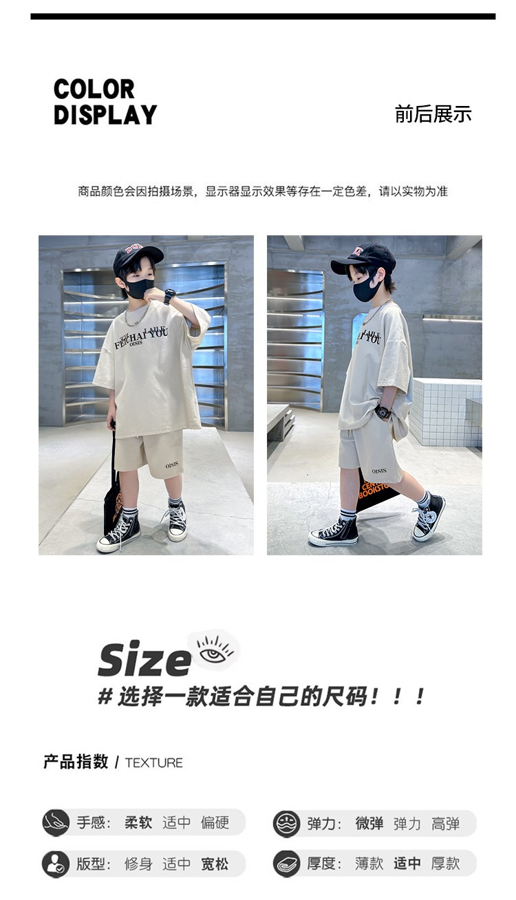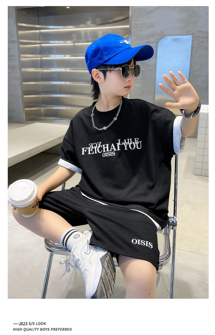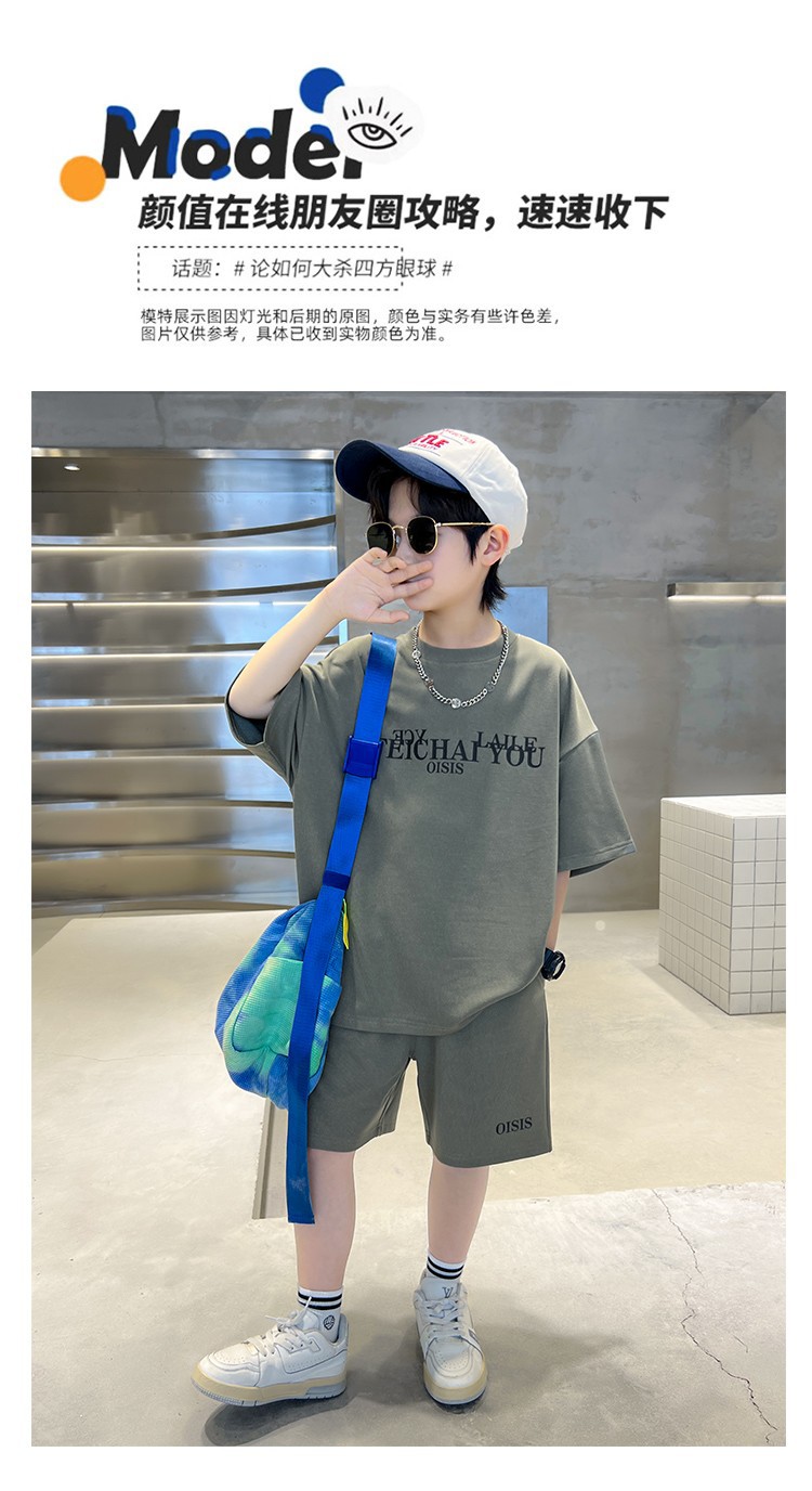 [6535 면 생선 비늘 + 백팩] 남아 여름 정장 2025 신작 아동복 여름 반팔 티셔츠 2장