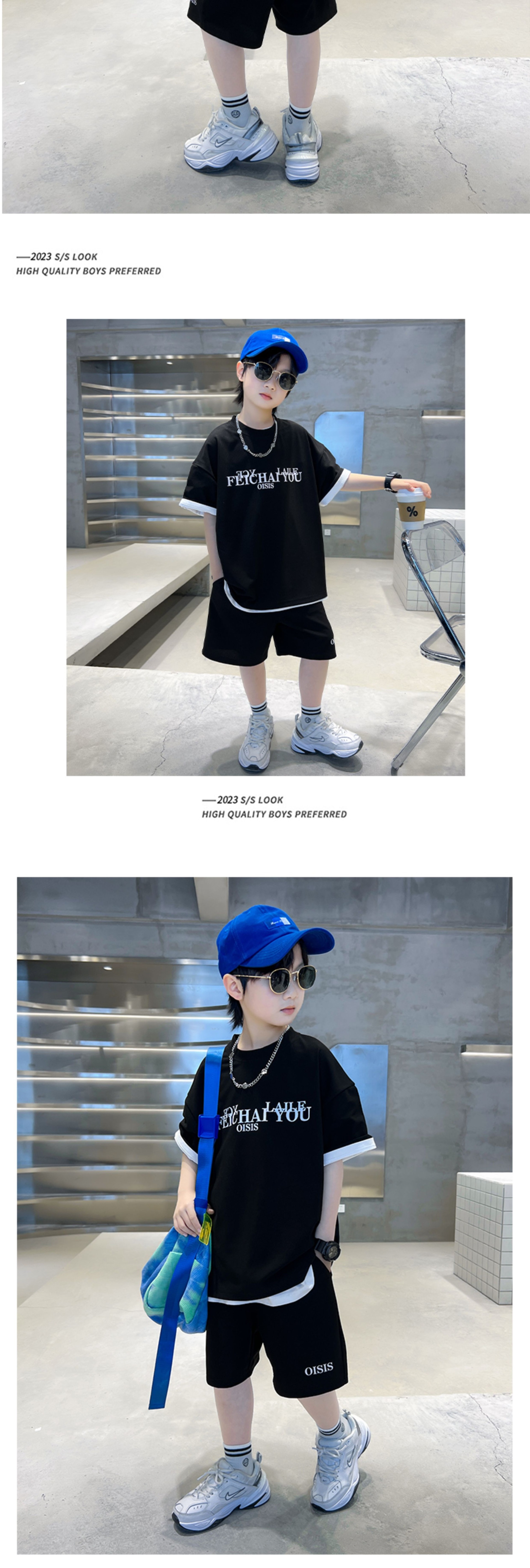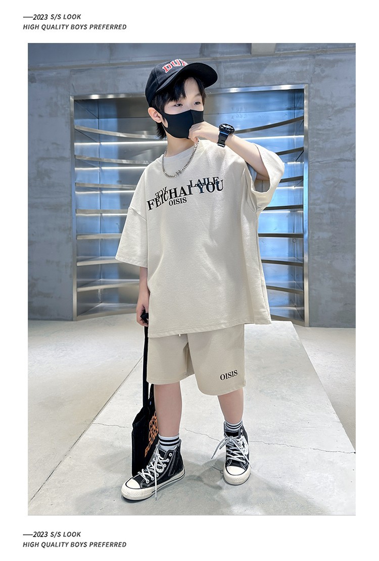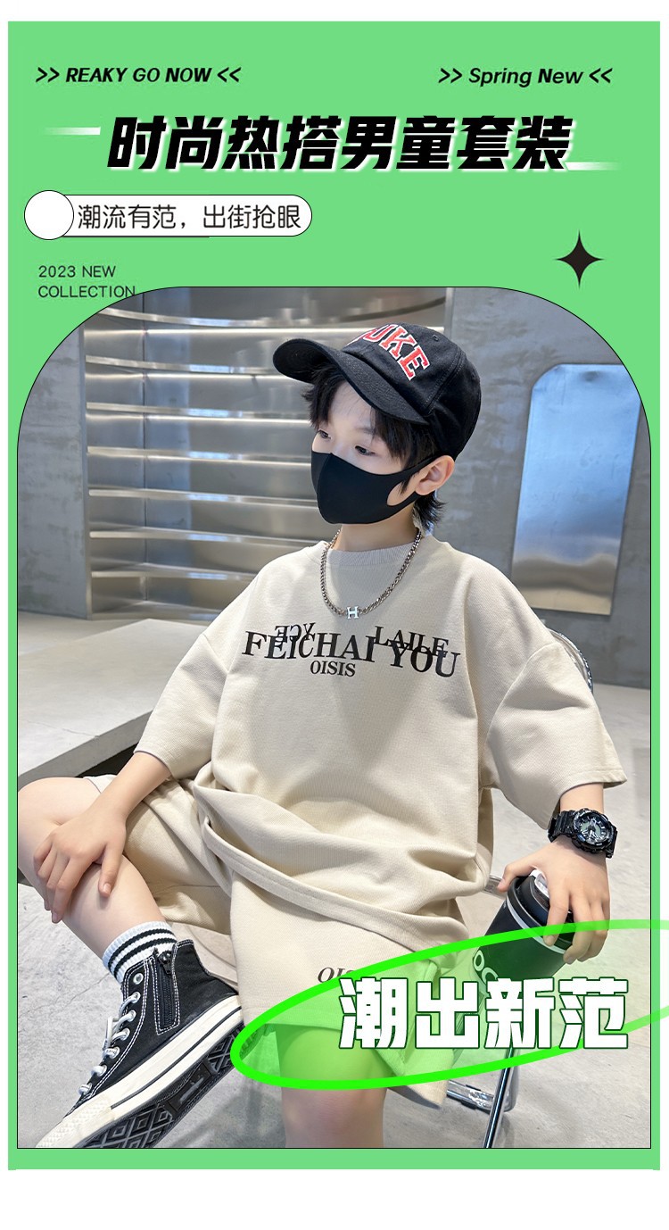 [6535 면 생선 비늘 + 백팩] 남아 여름 정장 2025 신작 아동복 여름 반팔 티셔츠 2장스토어 가기