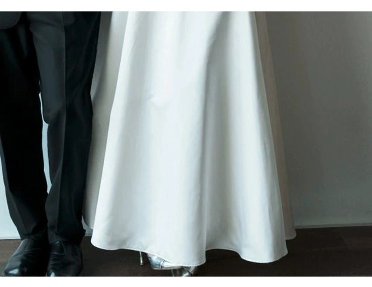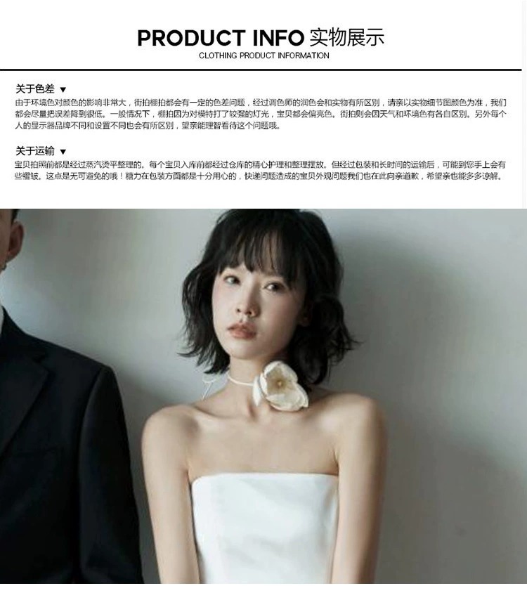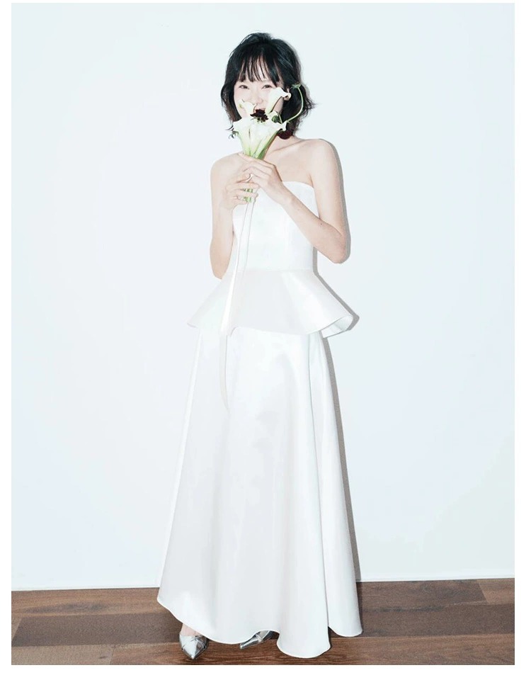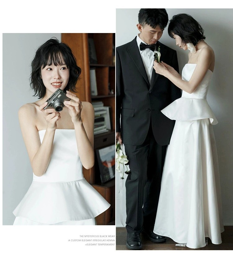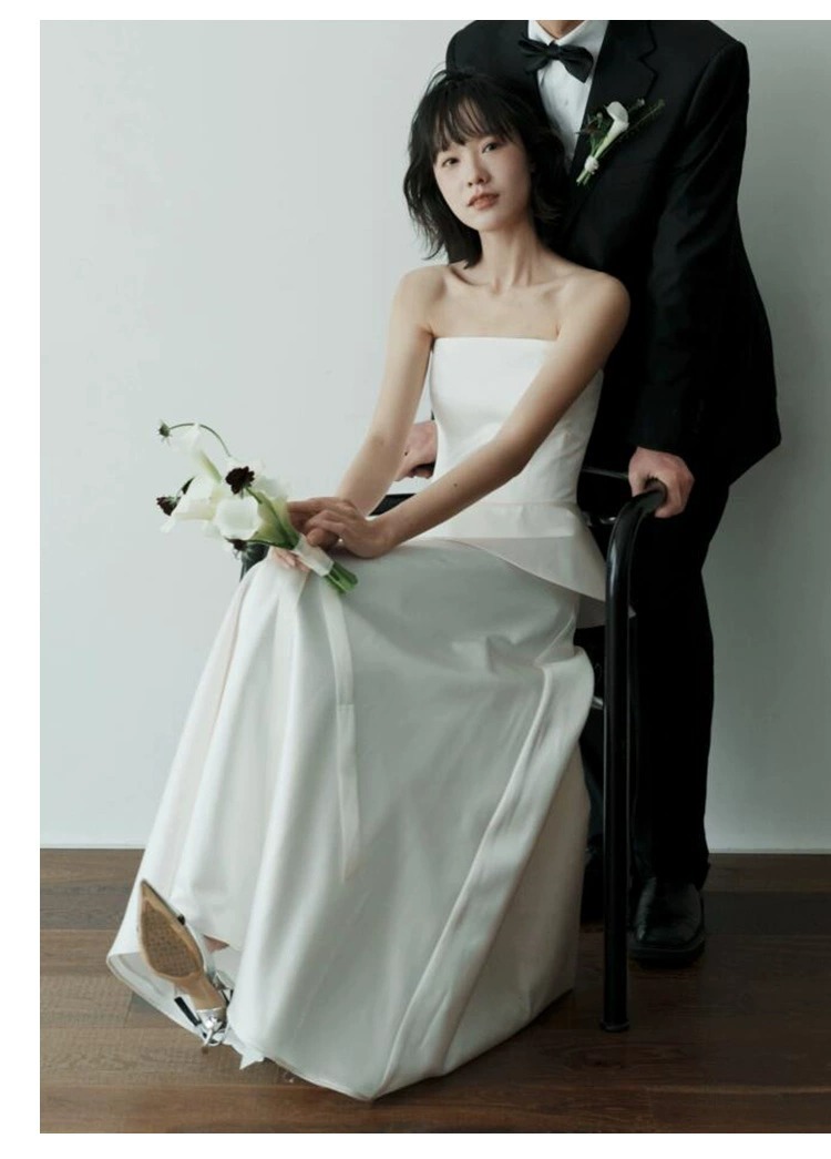프랑스 스타일 스트랩리스 라이트 웨딩 원피스 우아한 간단한 새틴 신부 면허 등록 작은 흰색 원피스 일일 여행 사진 촬영 참여 원피스스토어 가기