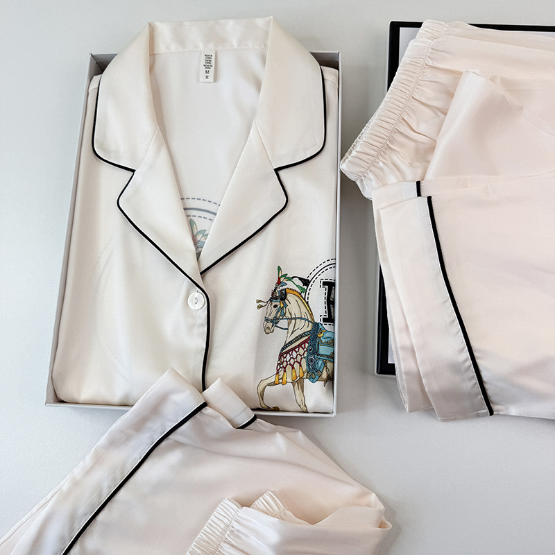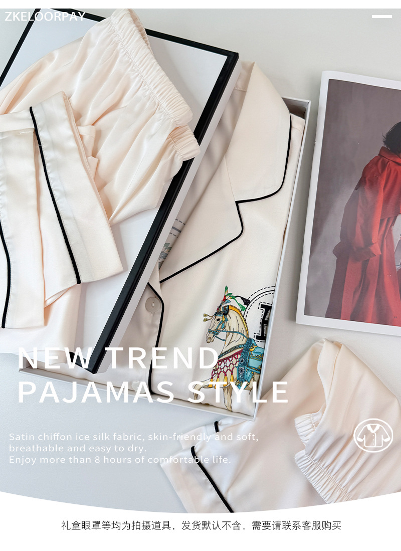 여름 커플 아이스 실크 파자마 3 종 세트 쿨 화이트 하이 엔드 여성 Ins 스타일 홈 의류 남성 봄과 가을