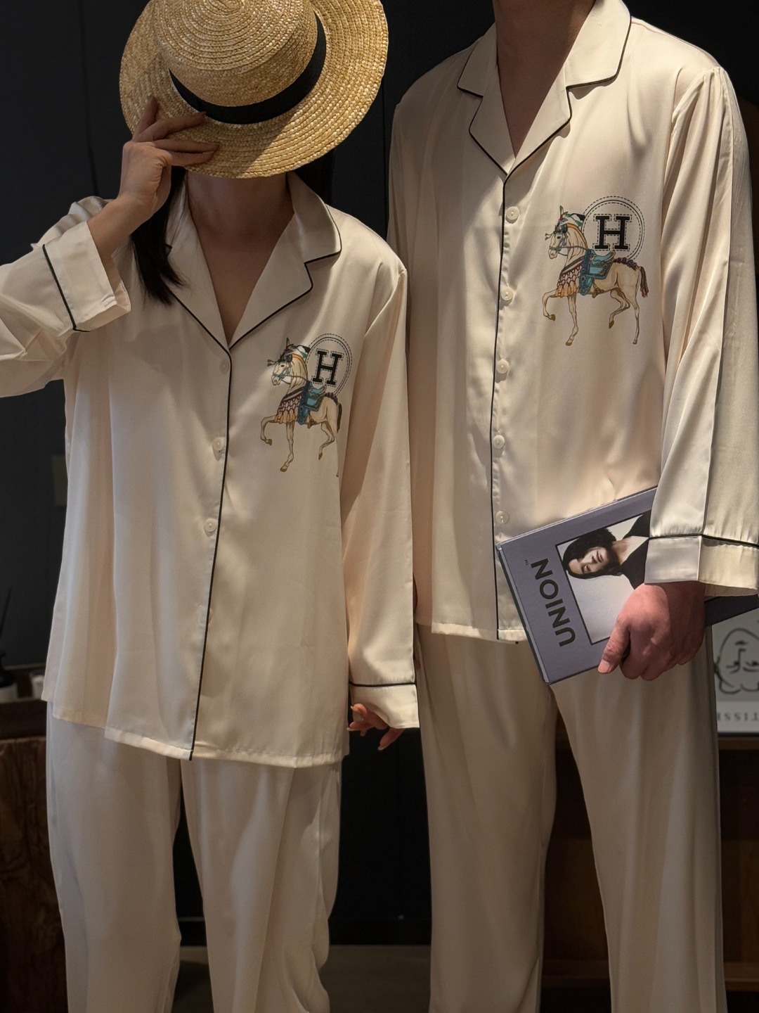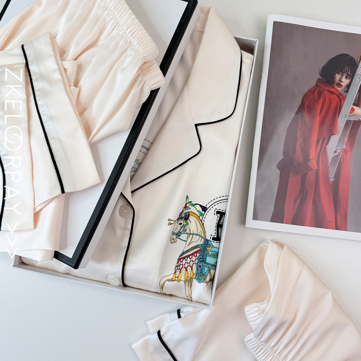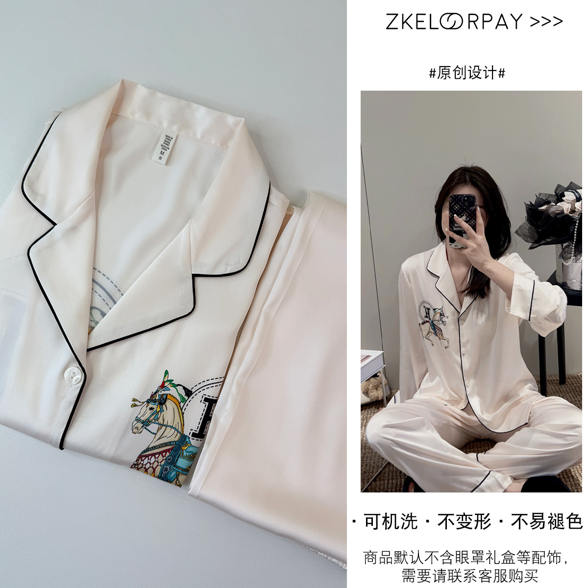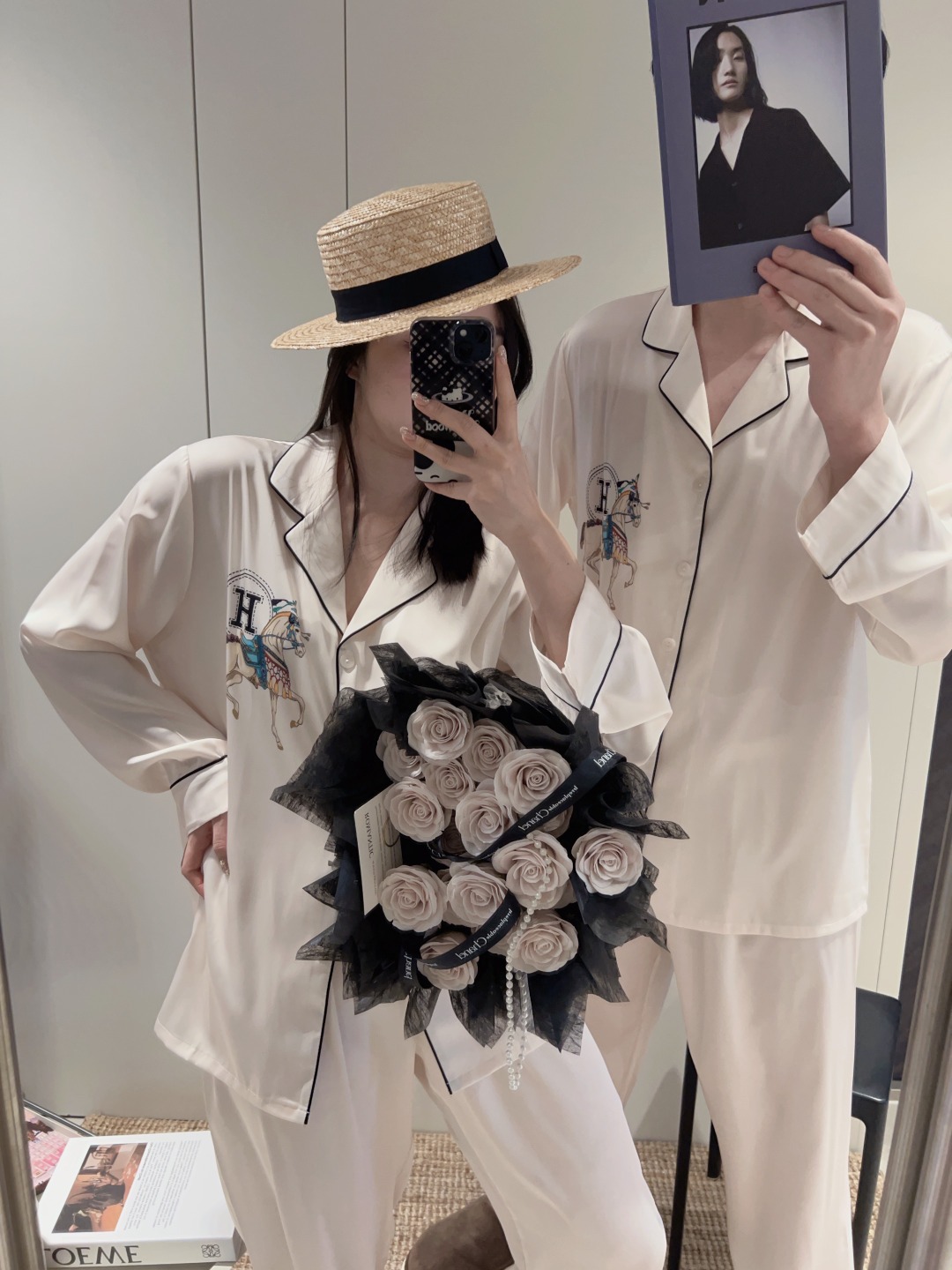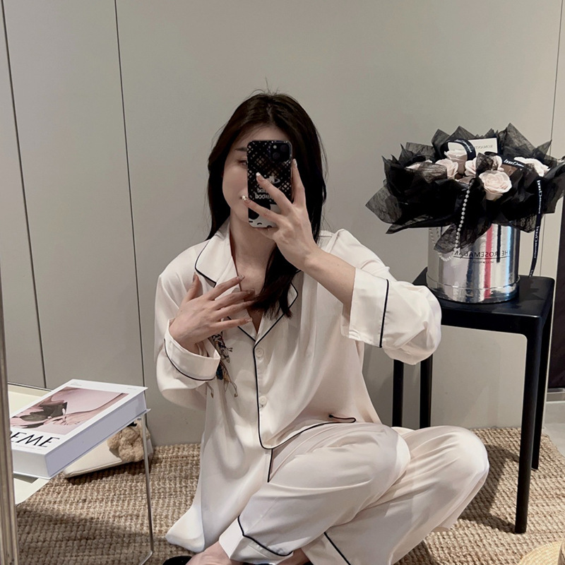 여름 커플 아이스 실크 파자마 3 종 세트 쿨 화이트 하이 엔드 여성 Ins 스타일 홈 의류 남성 봄과 가을스토어 가기