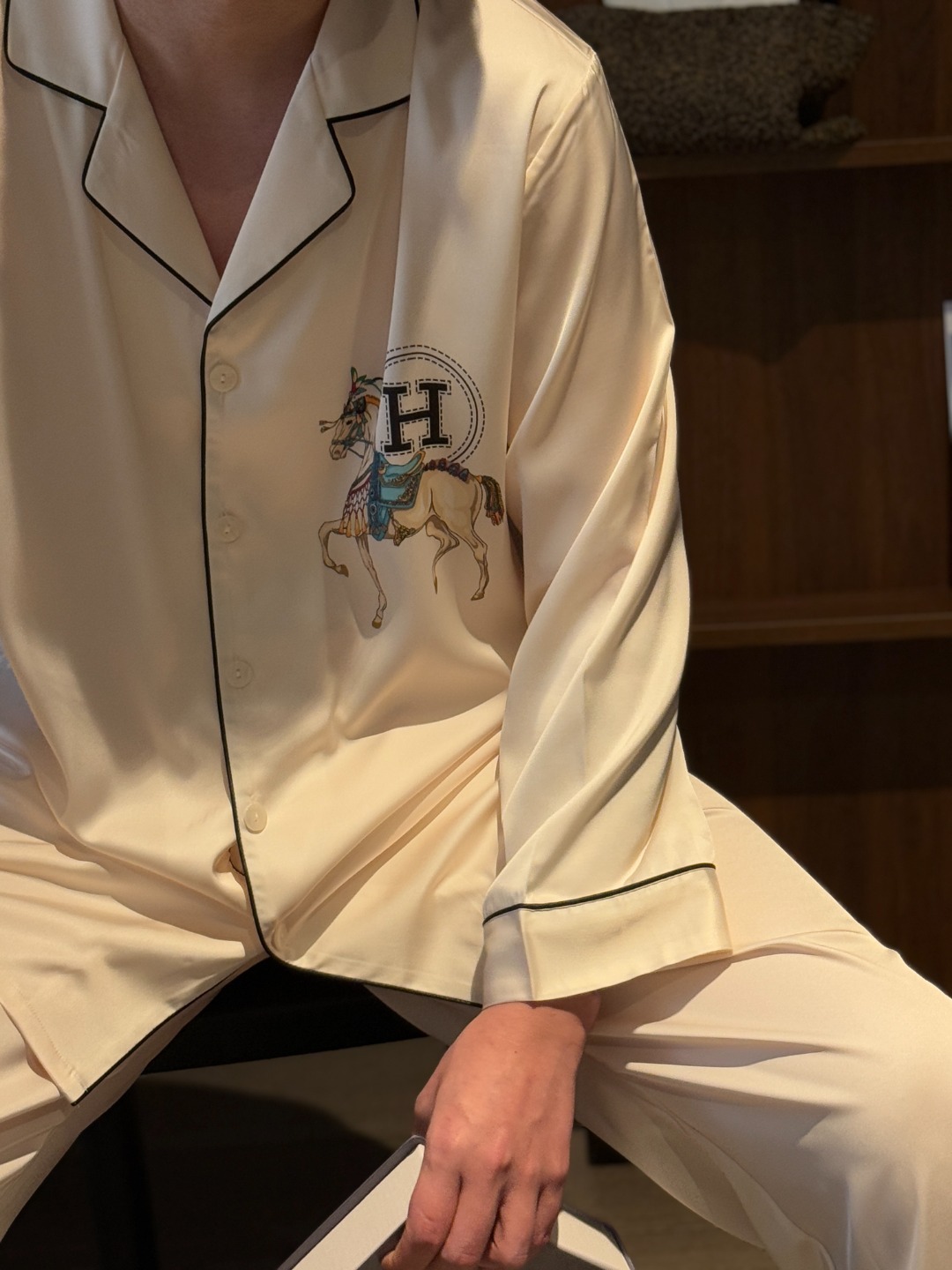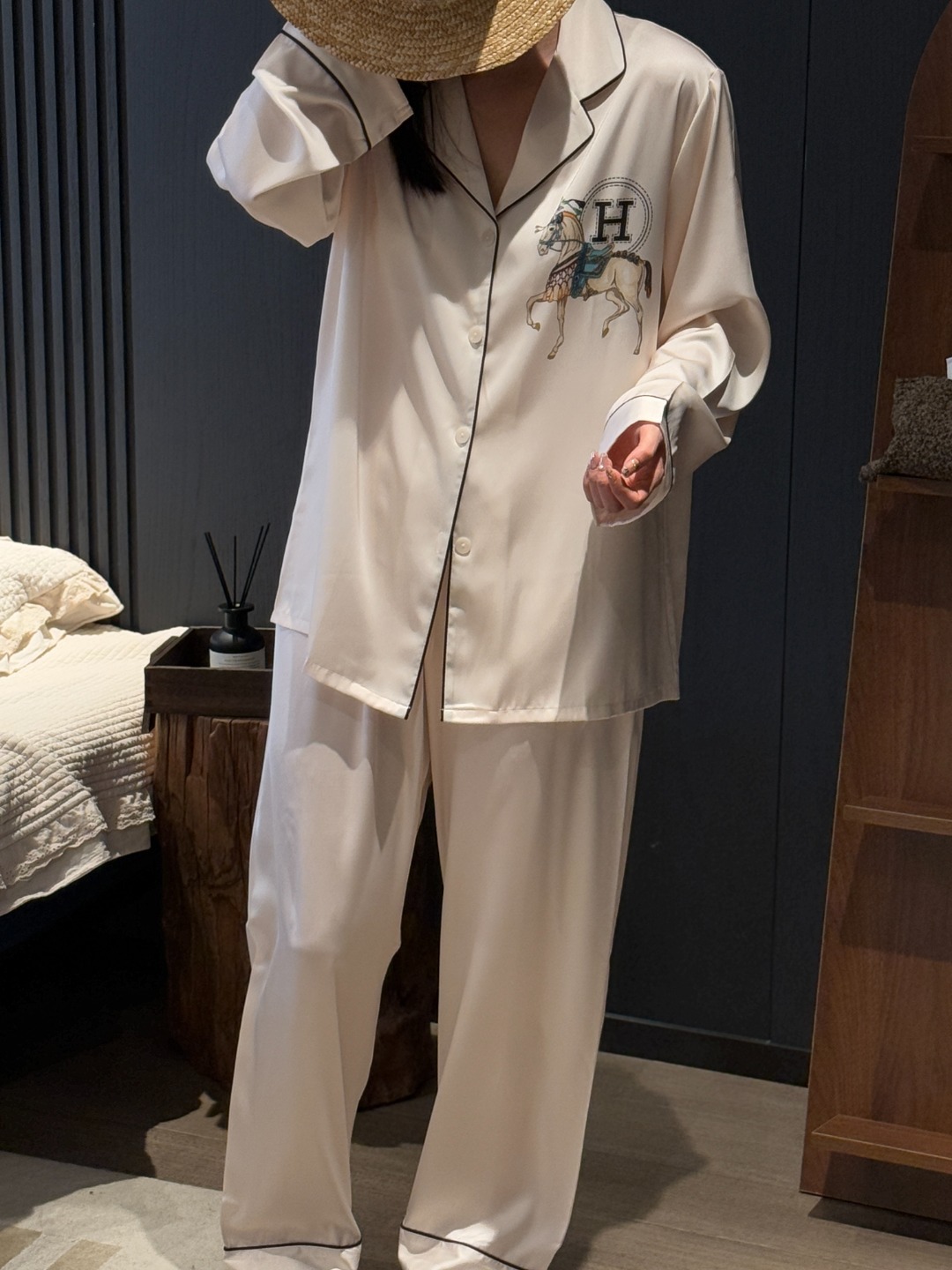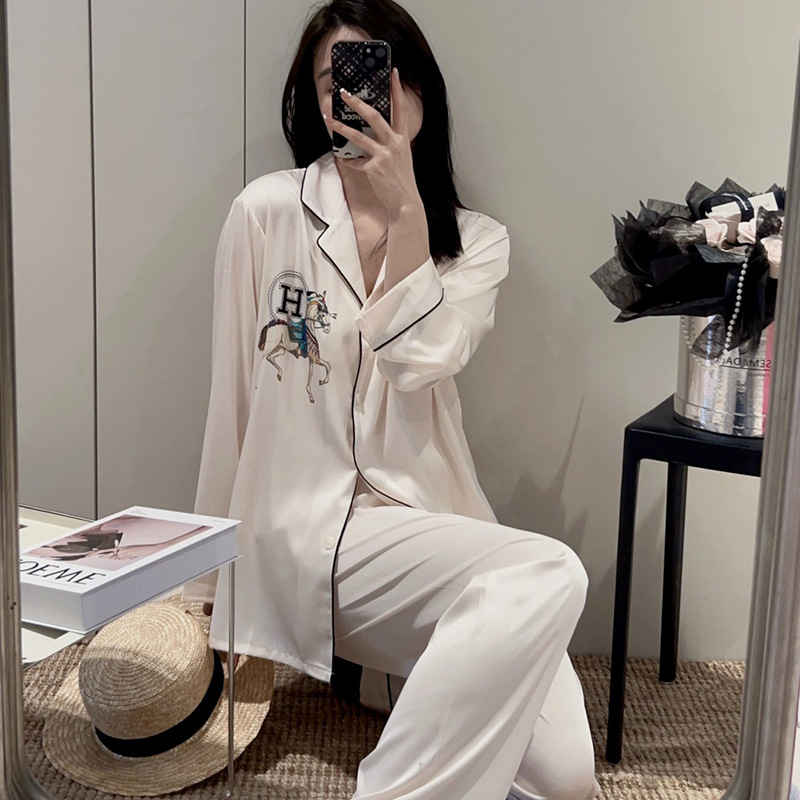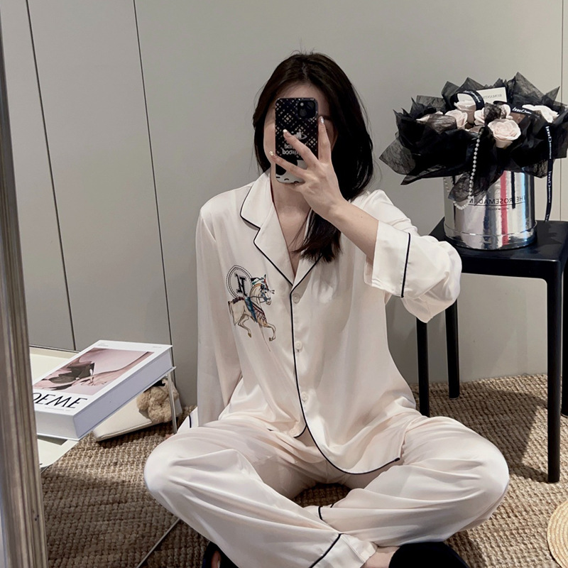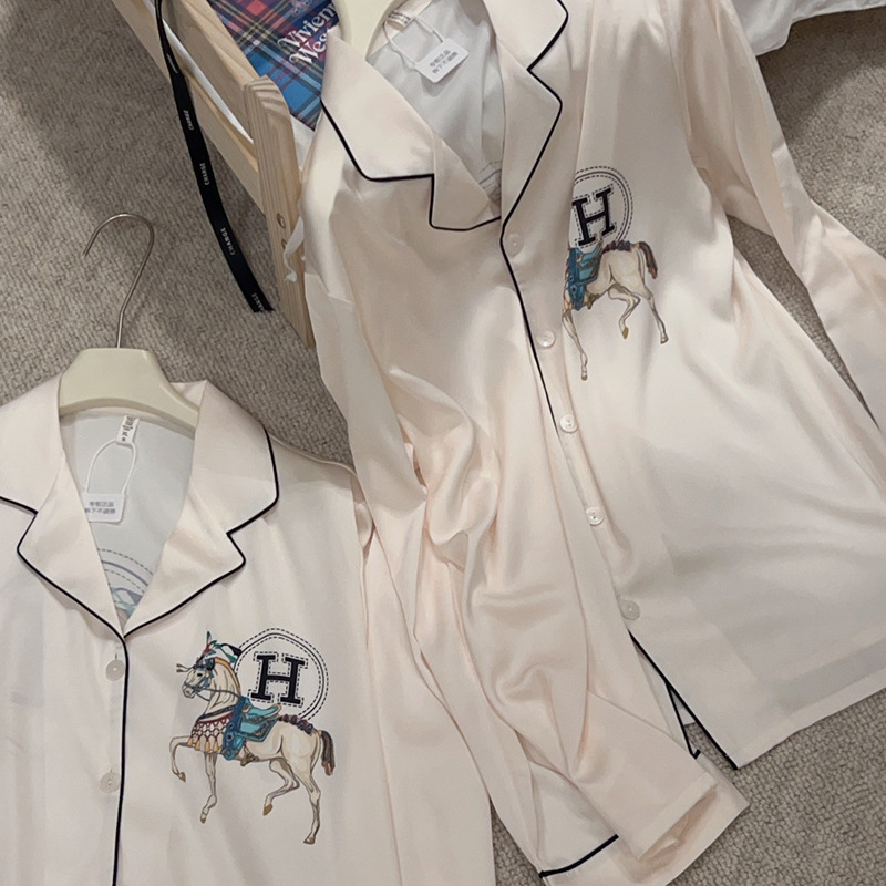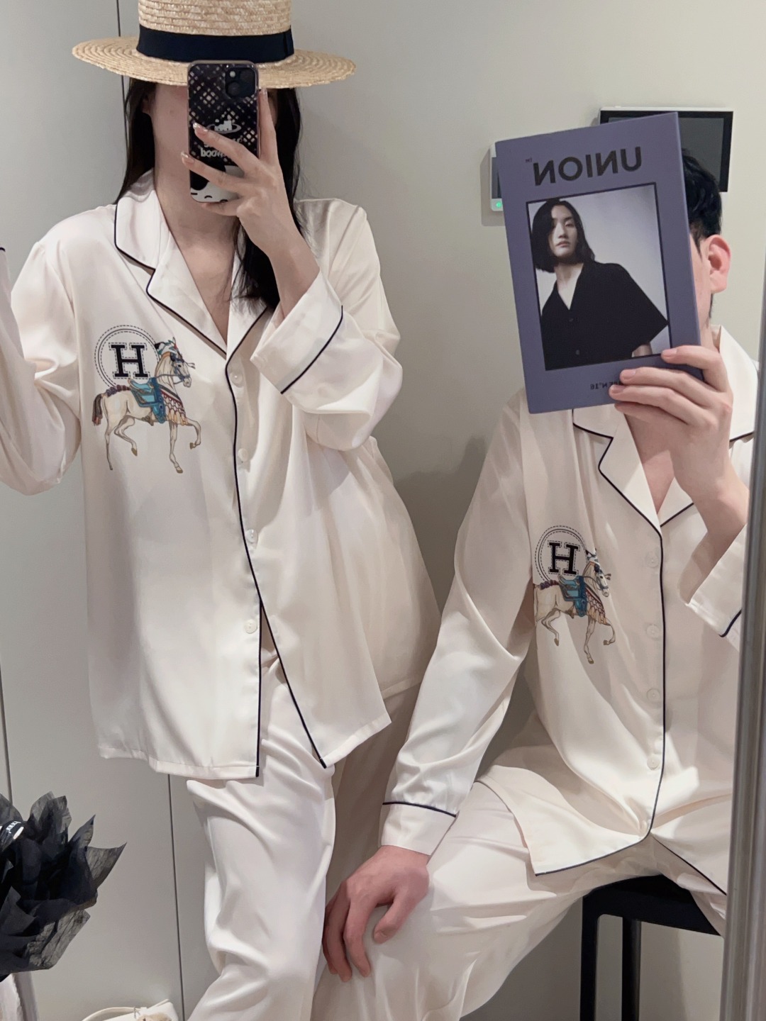 여름 커플 아이스 실크 파자마 3 종 세트 쿨 화이트 하이 엔드 여성 Ins 스타일 홈 의류 남성 봄과 가을스토어 가기