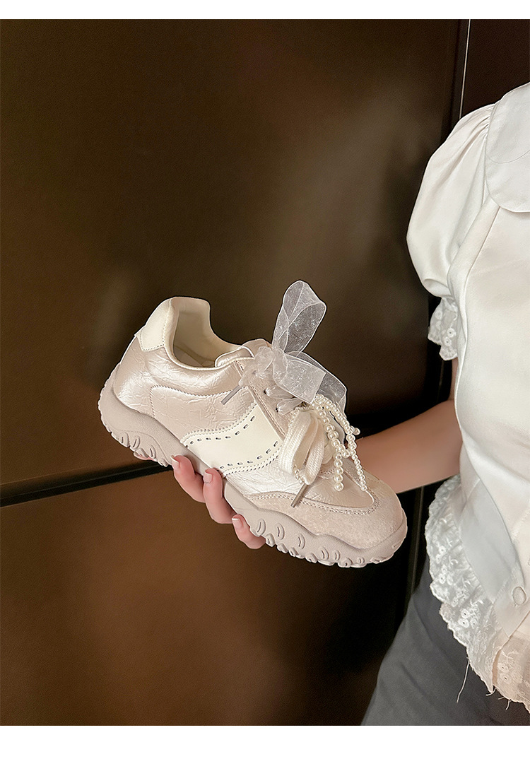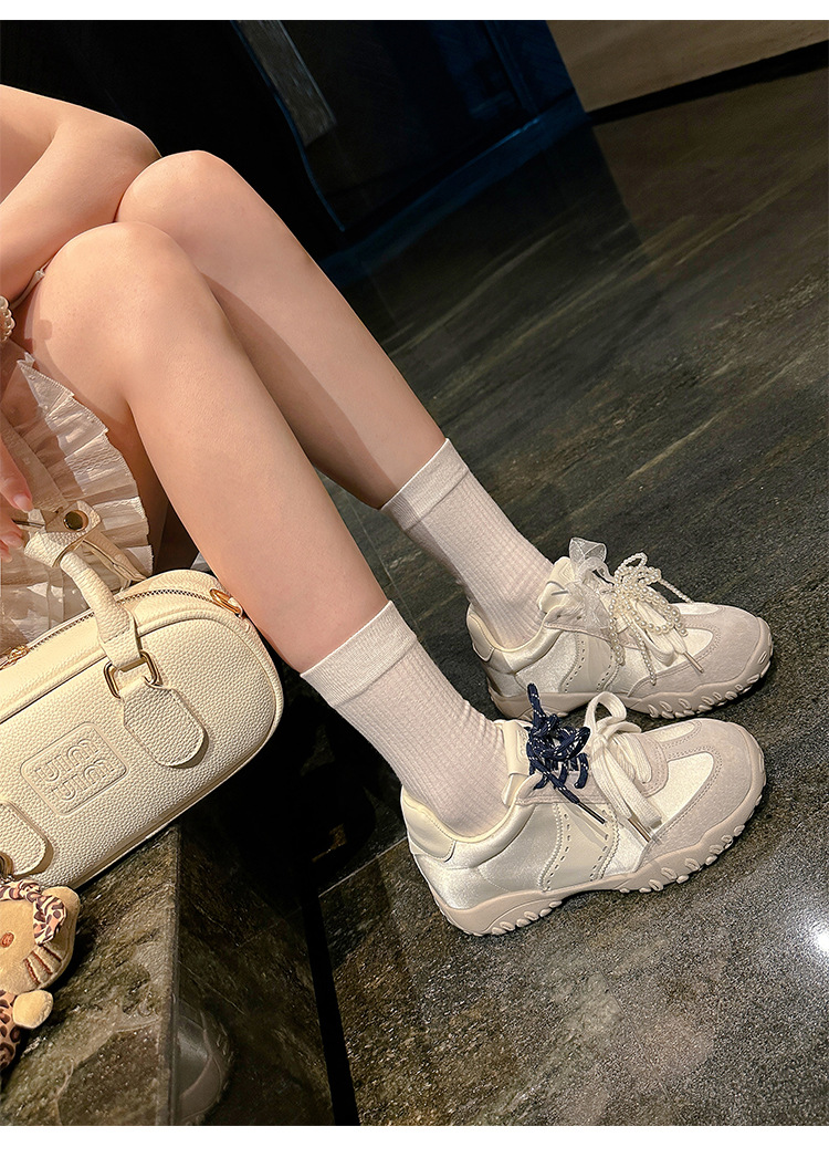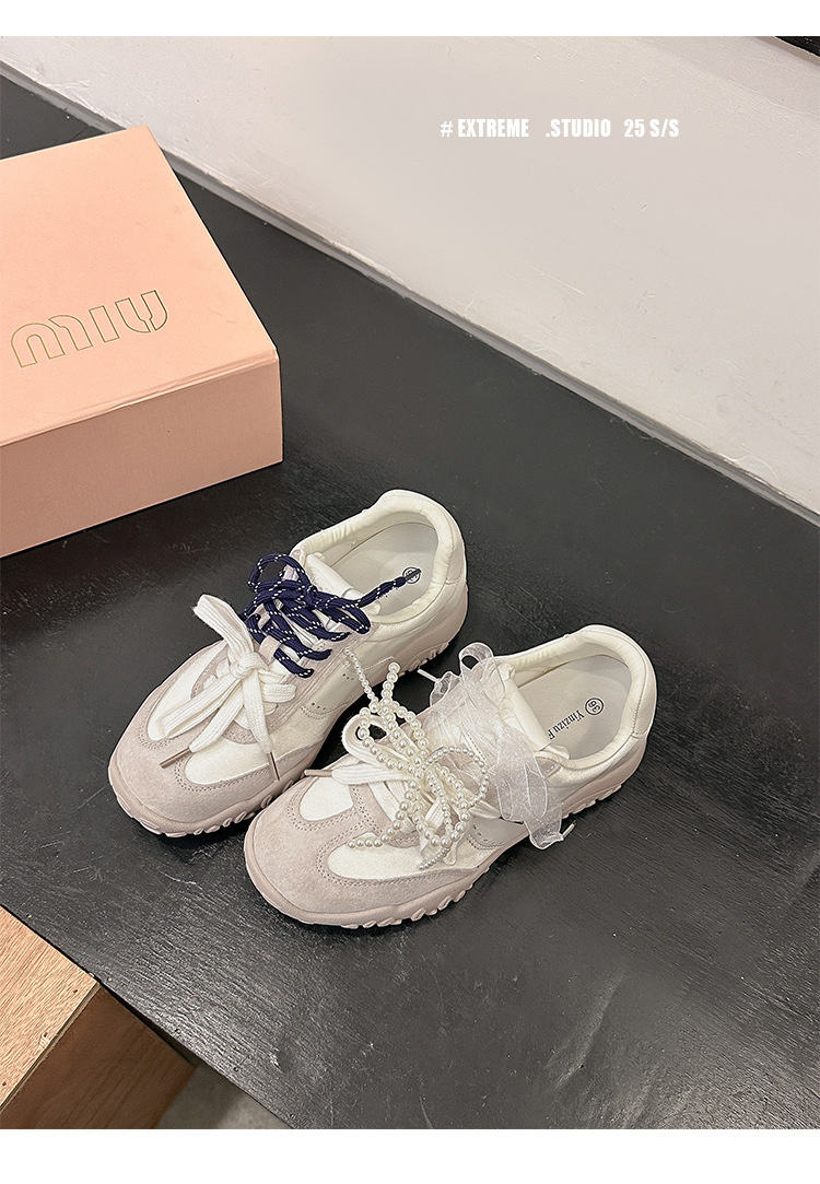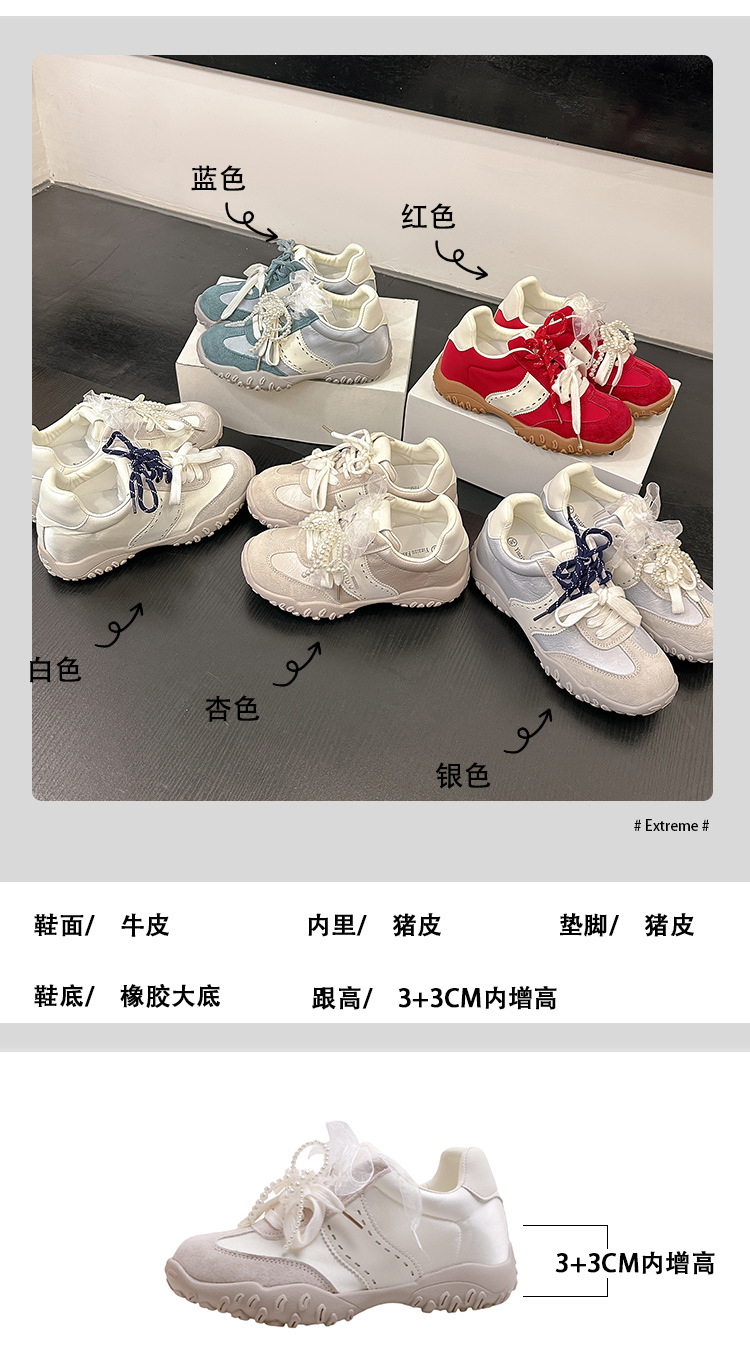 소가죽 버전 내부 높이 8cm 증가 버전~ 실크광택 달빛 진주 레이스 신발끈 통기성 스포츠 캐주얼 신발 여성용 데일리 트레이닝화