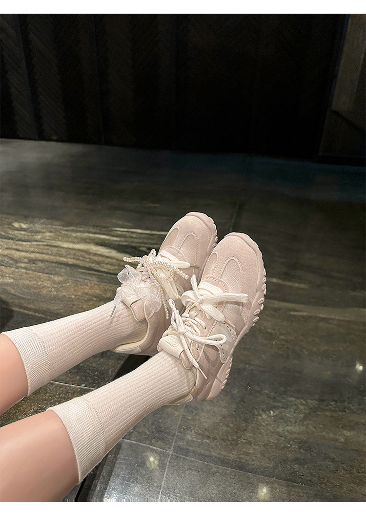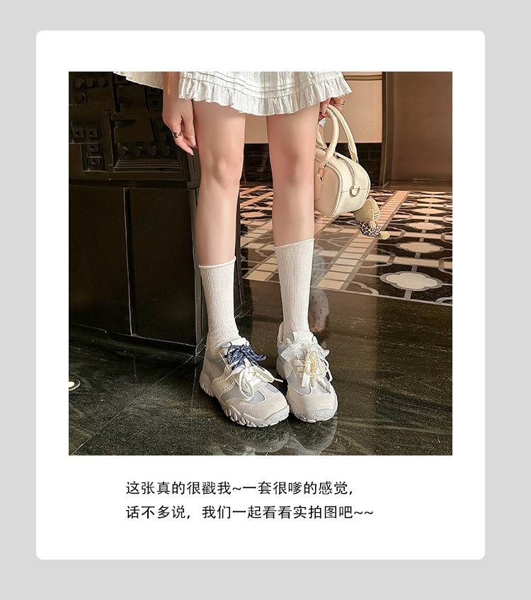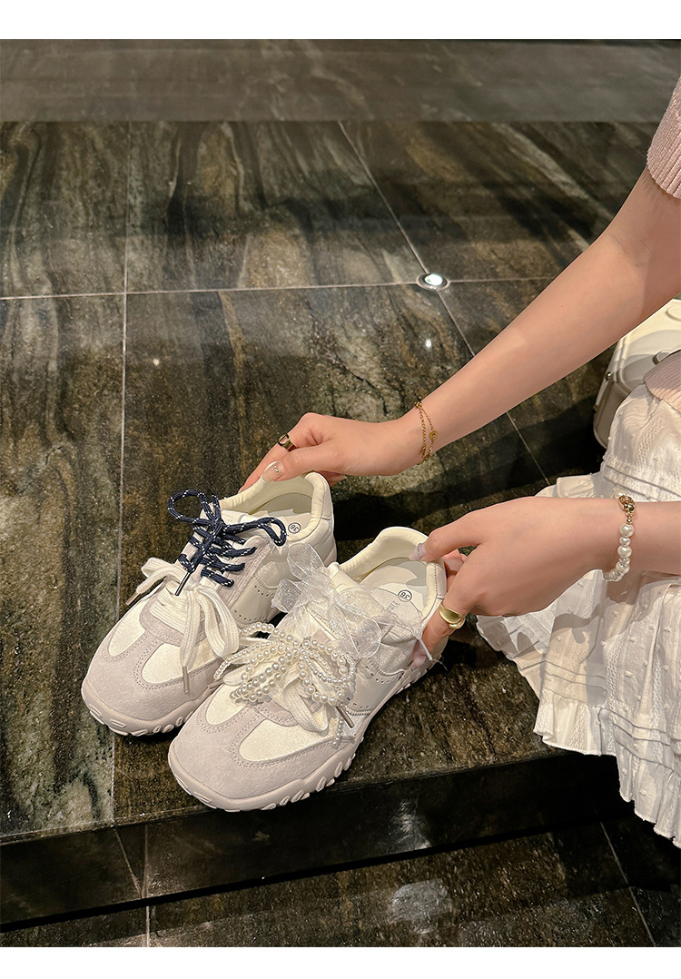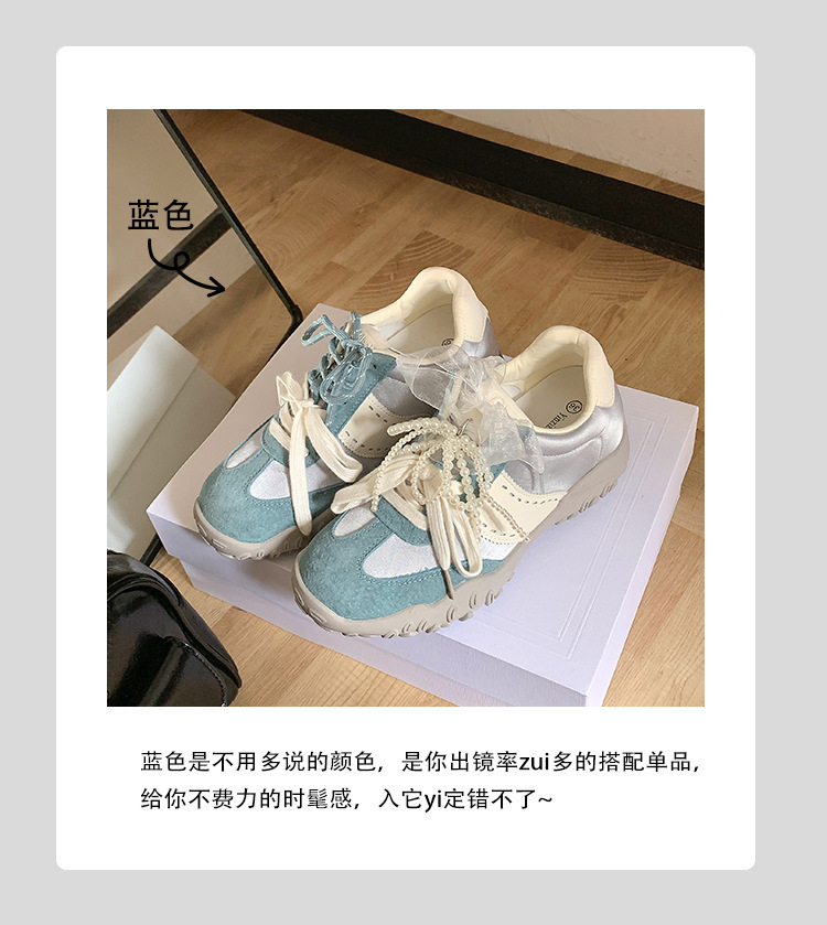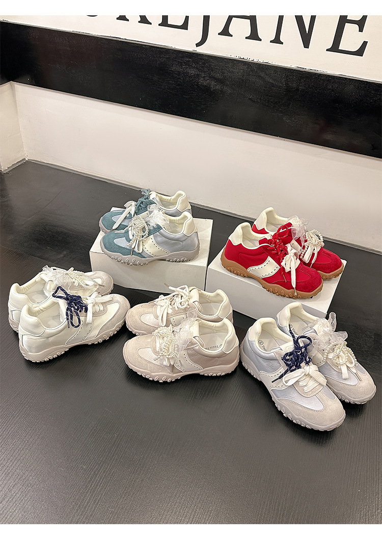 소가죽 버전 내부 높이 8cm 증가 버전~ 실크광택 달빛 진주 레이스 신발끈 통기성 스포츠 캐주얼 신발 여성용 데일리 트레이닝화
