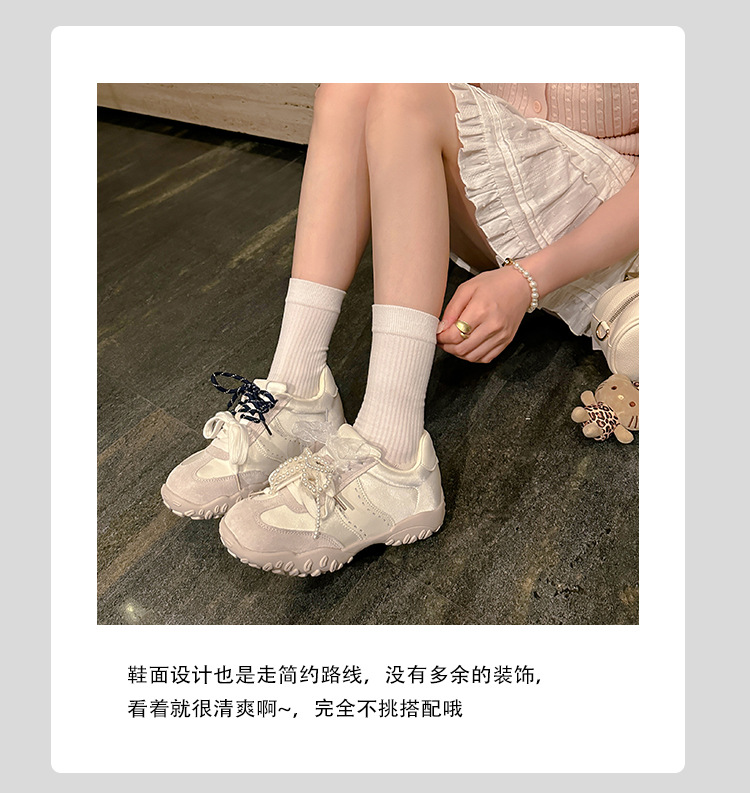 소가죽 버전 내부 높이 8cm 증가 버전~ 실크광택 달빛 진주 레이스 신발끈 통기성 스포츠 캐주얼 신발 여성용 데일리 트레이닝화스토어 가기