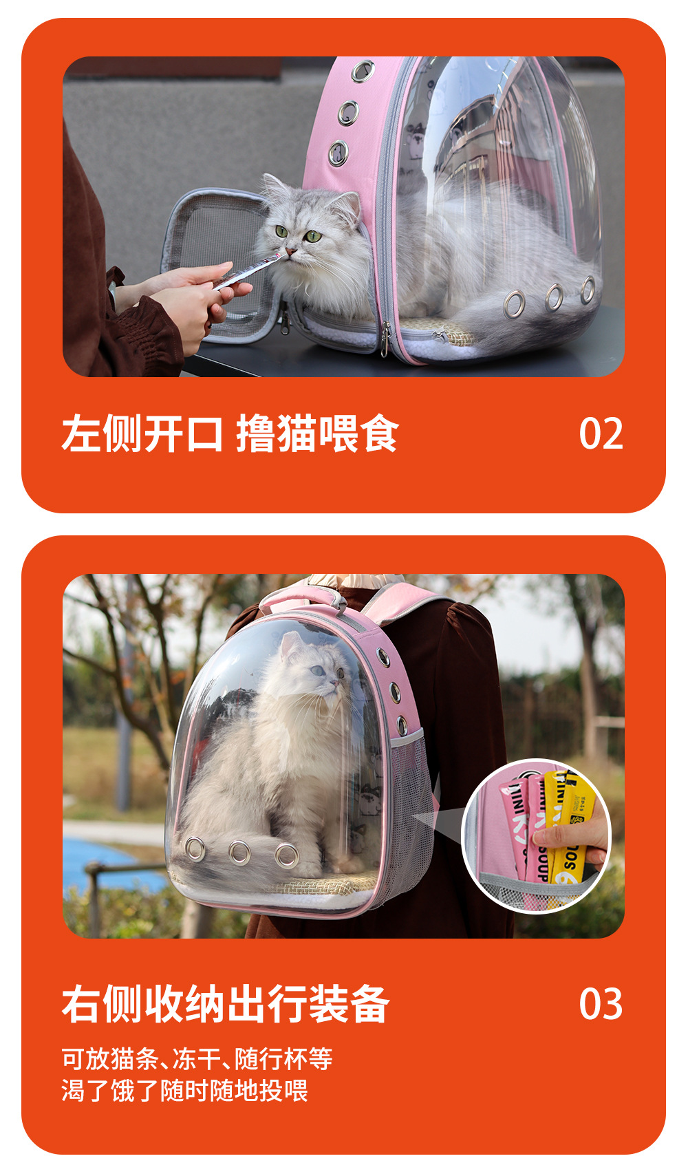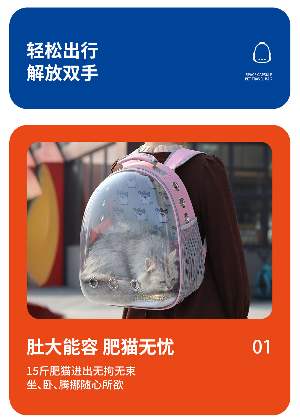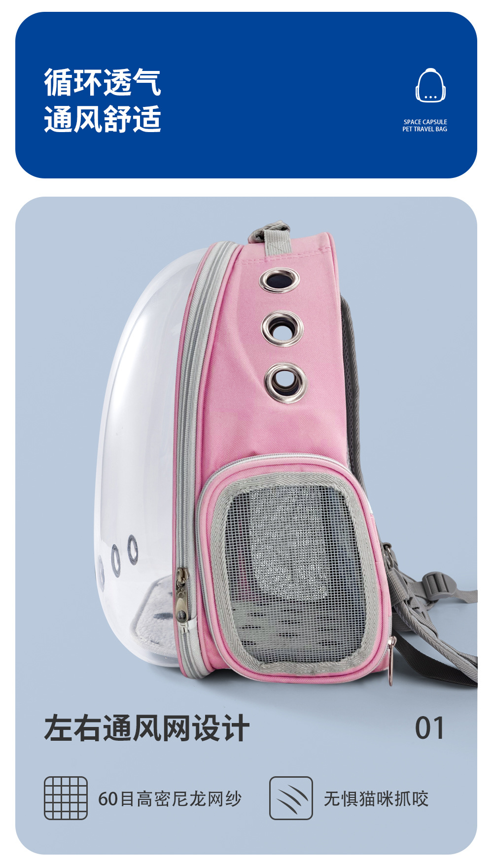 우주 투명 고양이 가방 측면 개방형 채광창 통기성 어깨 애완 동물 가방 야외 휴대용 투명 휴대용 애완 동물 배낭