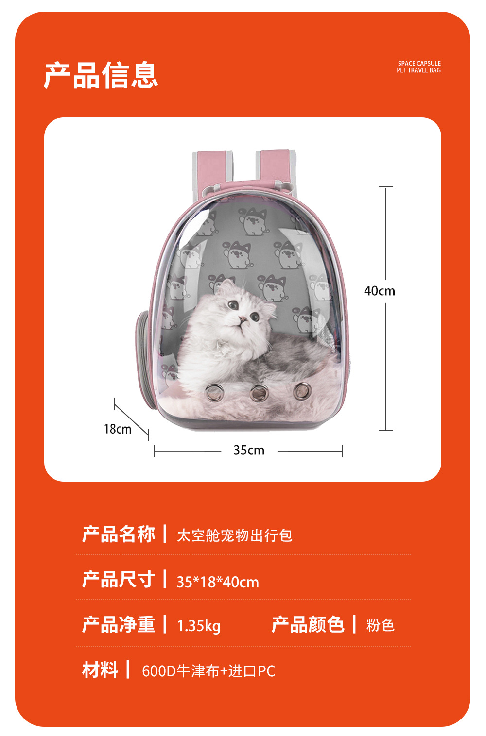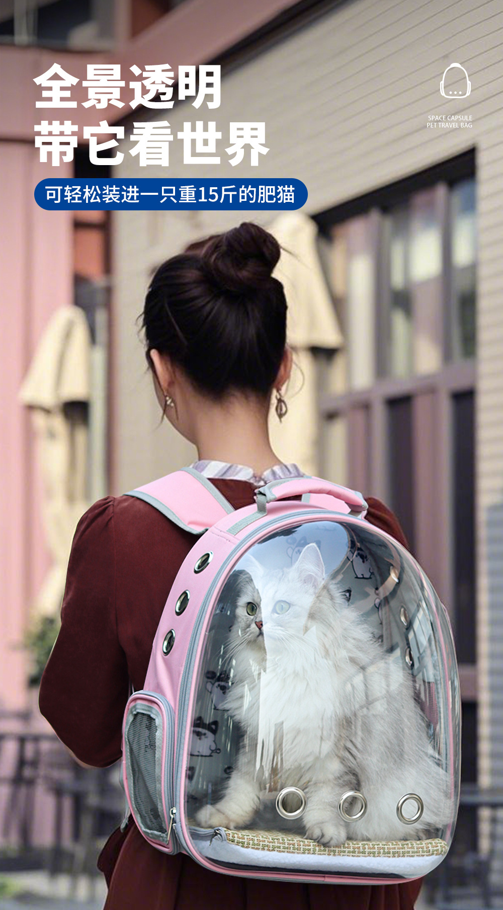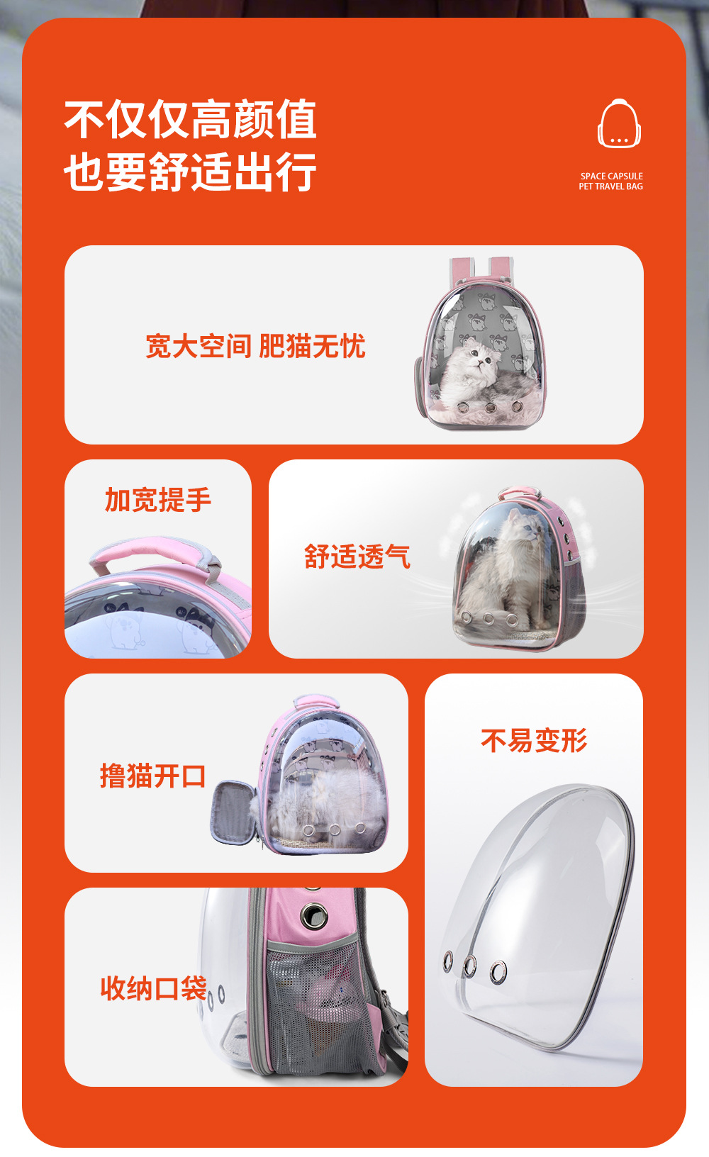 우주 투명 고양이 가방 측면 개방형 채광창 통기성 어깨 애완 동물 가방 야외 휴대용 투명 휴대용 애완 동물 배낭