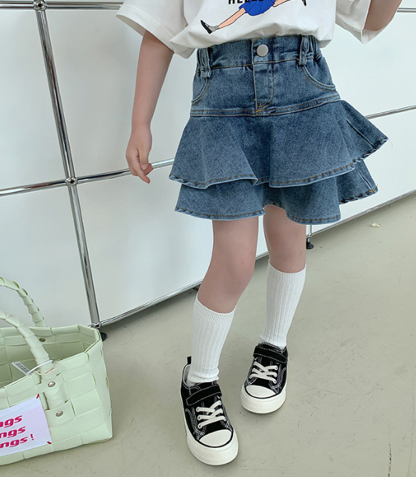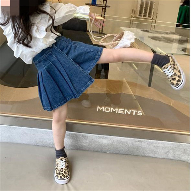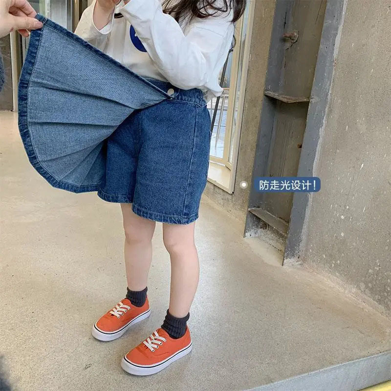 26 여름 여아 데님 스커트 팬츠 한국 스타일 아동 주름 스커트 버튼 다용도 중대형 아동 데님 반바지 핫팬츠스토어 가기