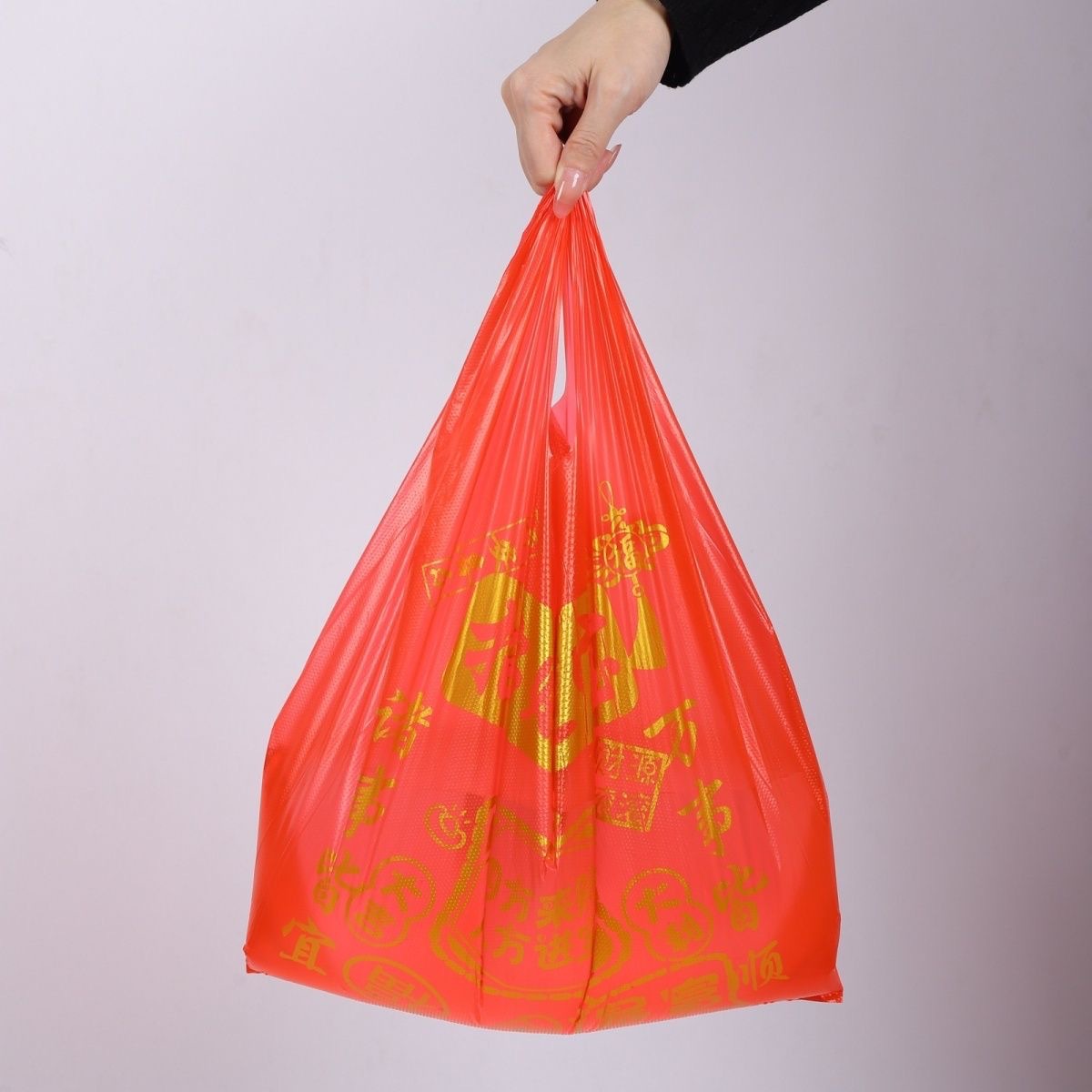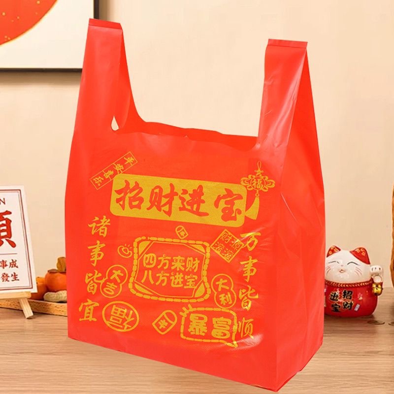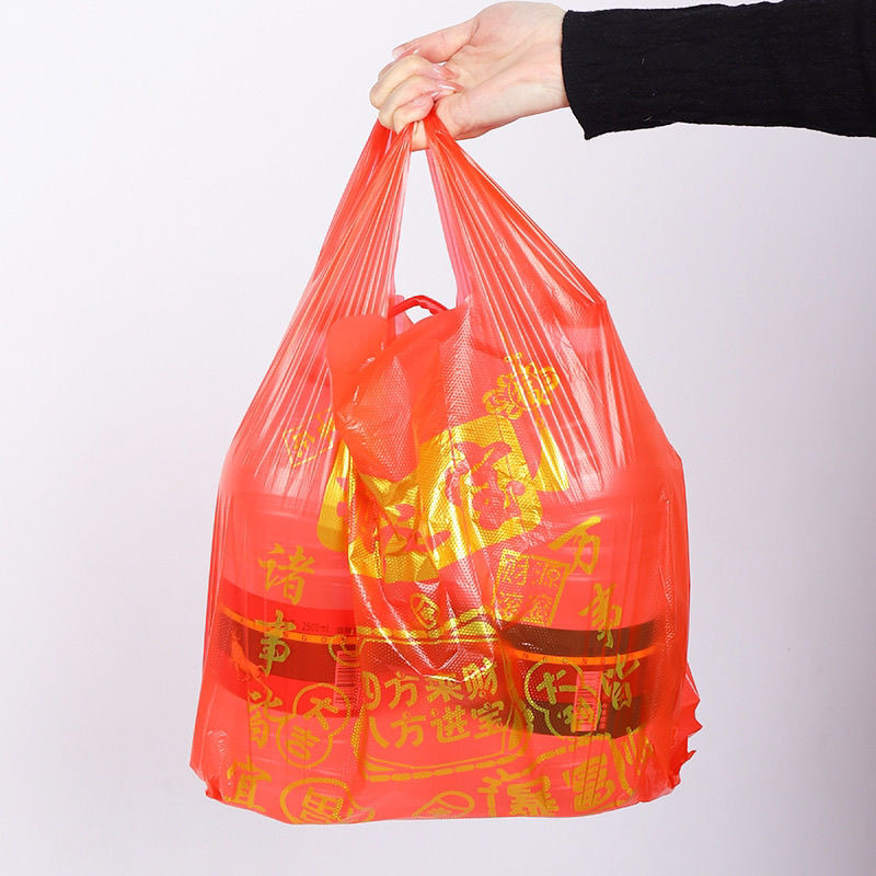 빨간색 조끼 가방 대형 파손 방지 두꺼운 슈퍼마켓 결혼 축하 행운의 선물 가방 테이크 아웃 포장 조끼 가방