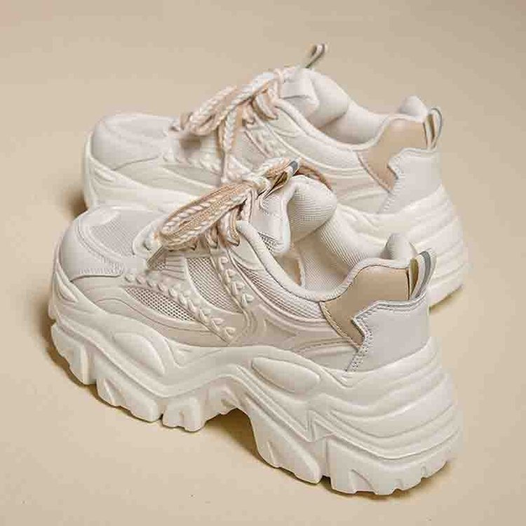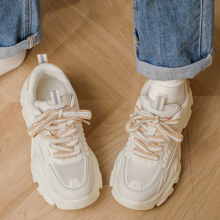 여성을위한 세련된 아빠 신발 2025 여름 새로운 라운드 발가락 두꺼운 밑창 로우 탑 밀 스니커즈 한국 스타일 다목적 캐주얼 신발