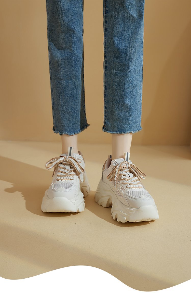 여성을위한 세련된 아빠 신발 2025 여름 새로운 라운드 발가락 두꺼운 밑창 로우 탑 밀 스니커즈 한국 스타일 다목적 캐주얼 신발스토어 가기