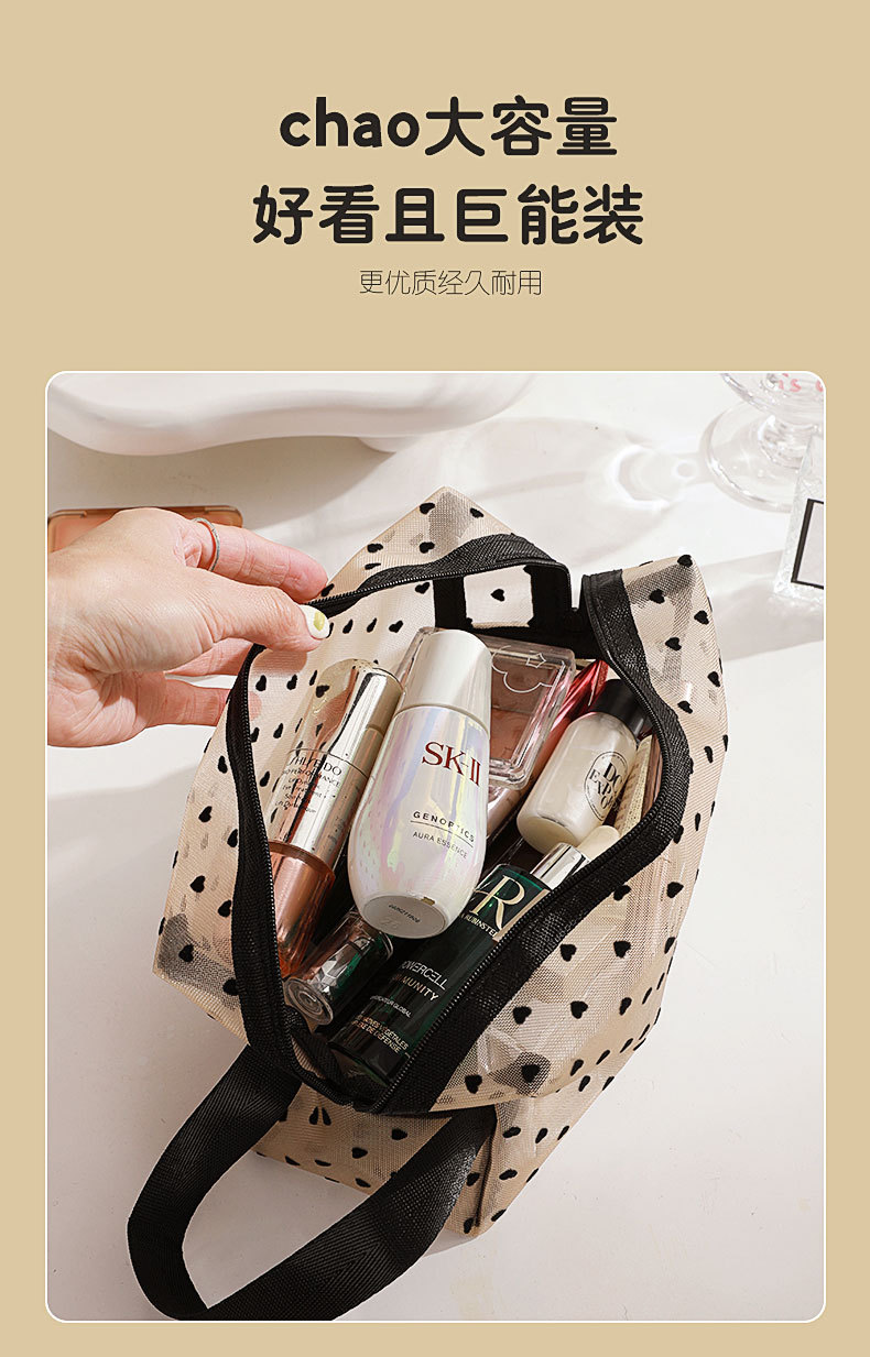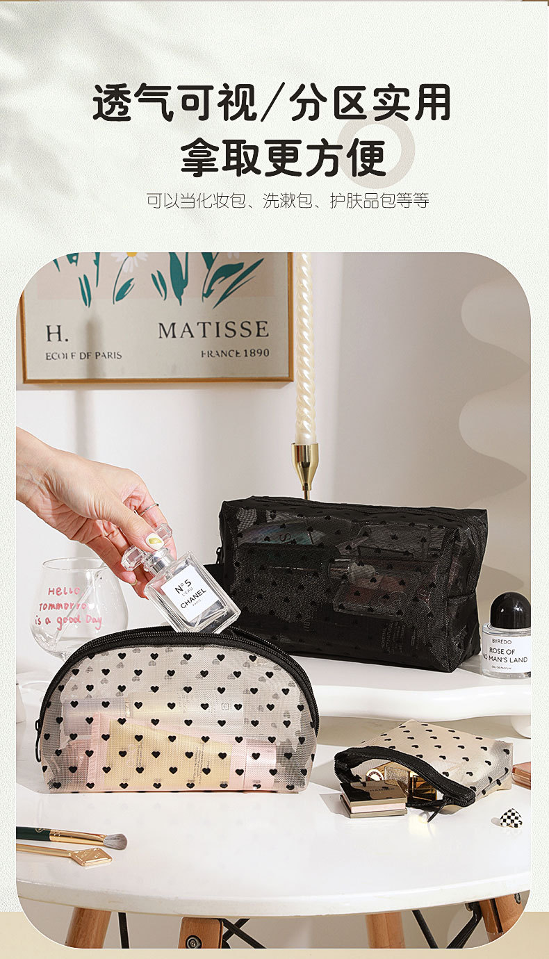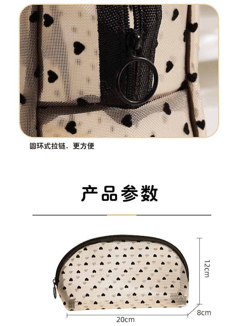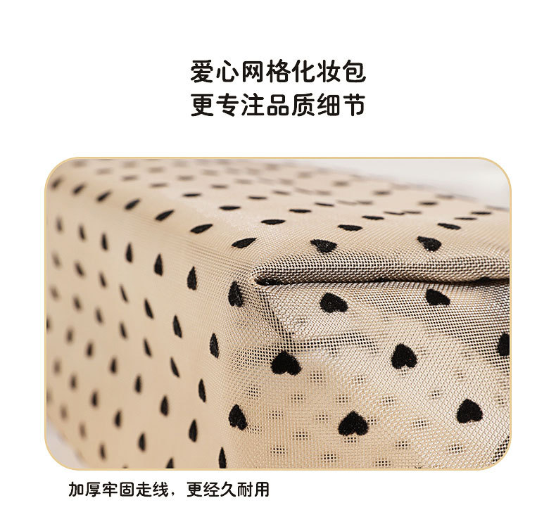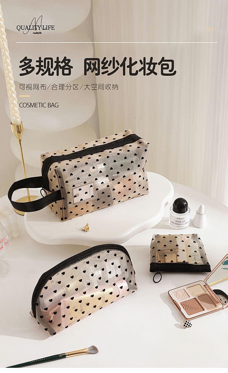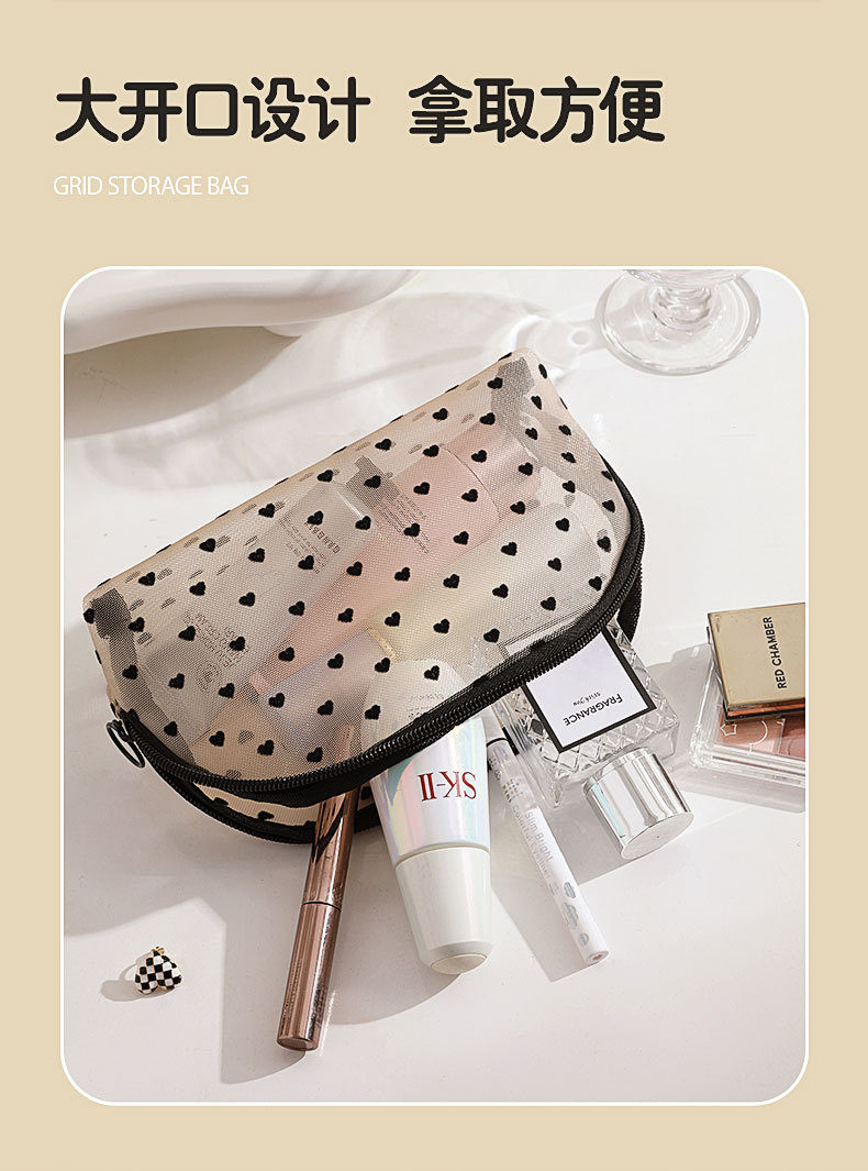 새로운 2025 사랑 잠금 파우더 메쉬 메이크업 가방 소녀의 심장 휴대용 세척 대용량 통기성 립스틱 무역스토어 가기