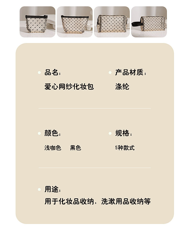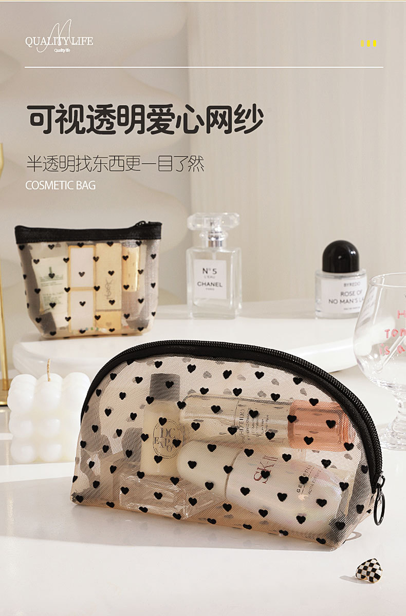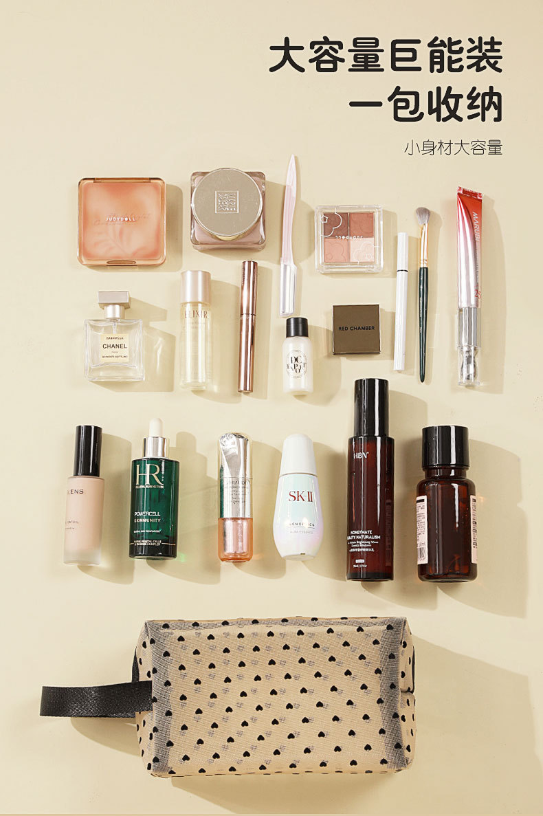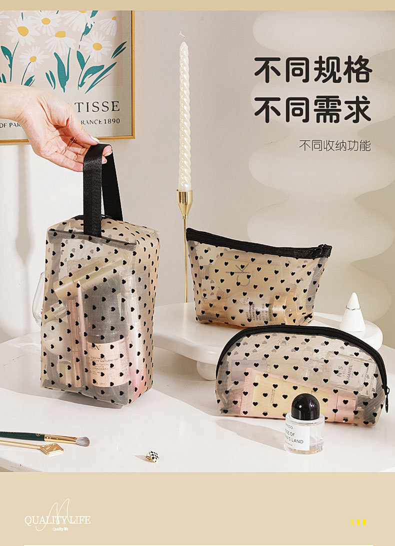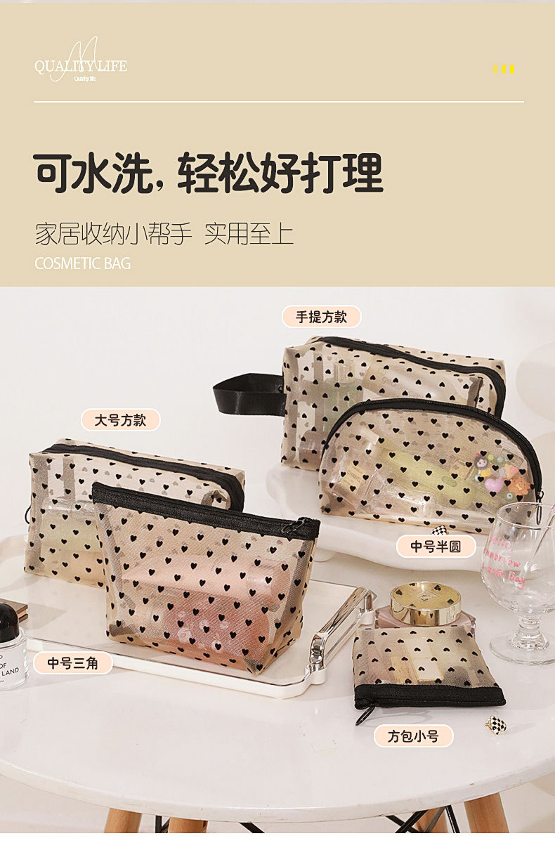 새로운 2025 사랑 잠금 파우더 메쉬 메이크업 가방 소녀의 심장 휴대용 세척 대용량 통기성 립스틱 무역스토어 가기