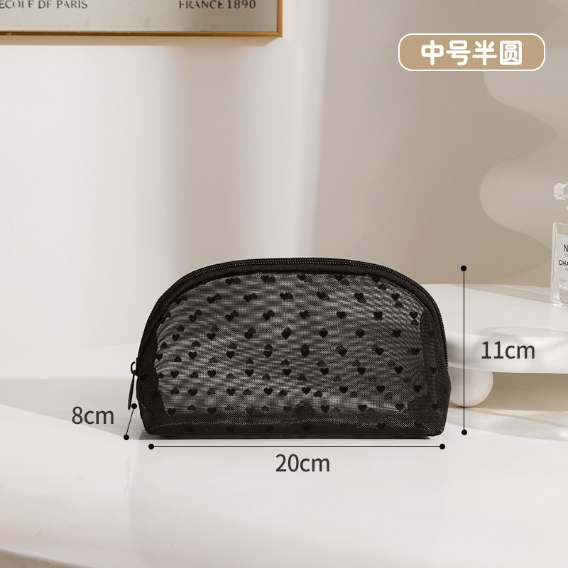 새로운 2025 사랑 잠금 파우더 메쉬 메이크업 가방 소녀의 심장 휴대용 세척 대용량 통기성 립스틱 무역
