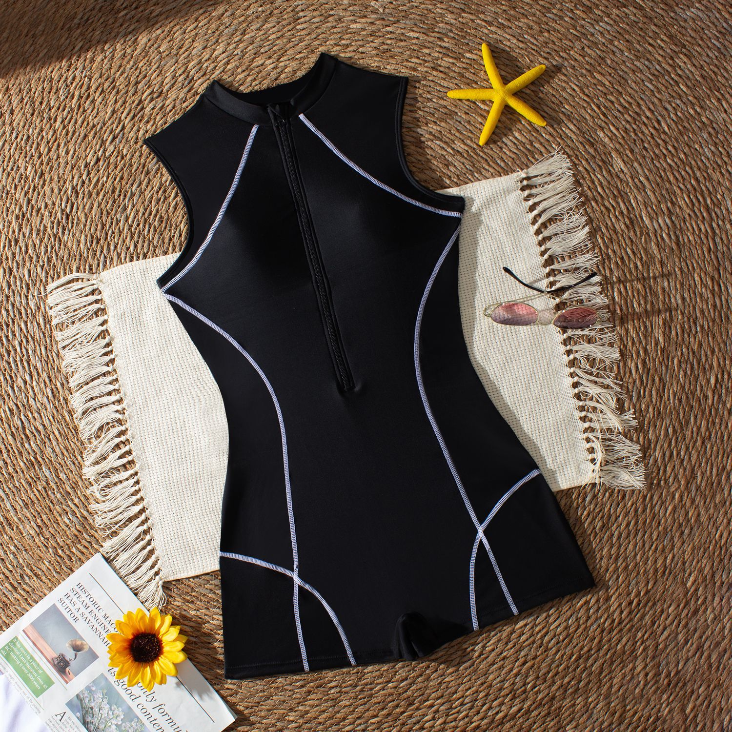 원피스 수영복 유럽과 미국의 국경 간 패션 섹시한 비키니 스포츠 민소매 수영복 잠수복 수영복 2025 새로운 스타일