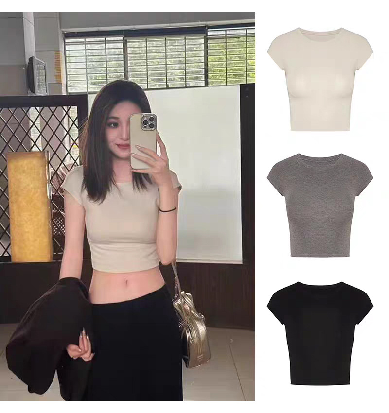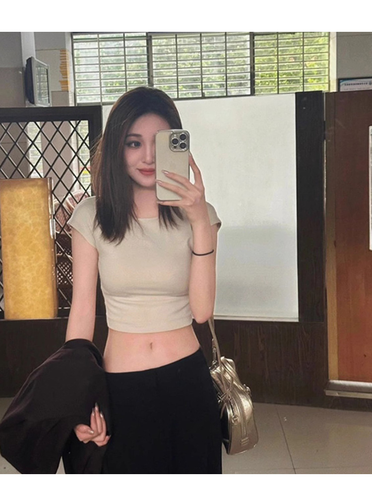 미국 스타일 핫걸 타이트 반팔 티셔츠 여성용 2026 여름 신상 순수하고 섹시한 스윗 앤 스파이시 숄더탑 인스타그램 도매스토어 가기