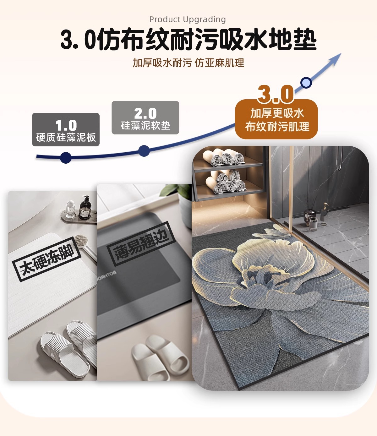 욕실 바닥 매트, 욕실 흡수성 세면대, 전체 규조토 진흙 미끄럼 방지 대형 매트, 집 화장실 문 매트스토어 가기