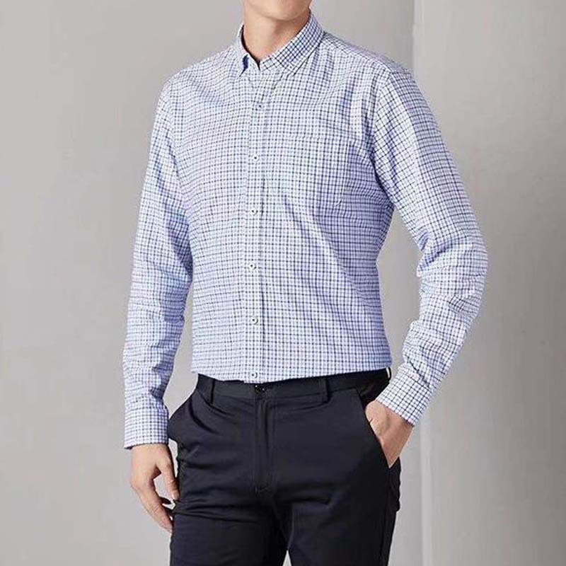 중년 및 노년 남성용 중간 두께의 면 셔츠, 봄 가을용 아빠 셔츠, 남성용 긴팔 작업복, 짙은 색상의 체크무늬 셔츠스토어 가기