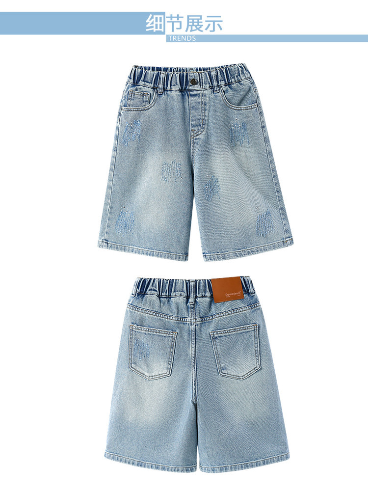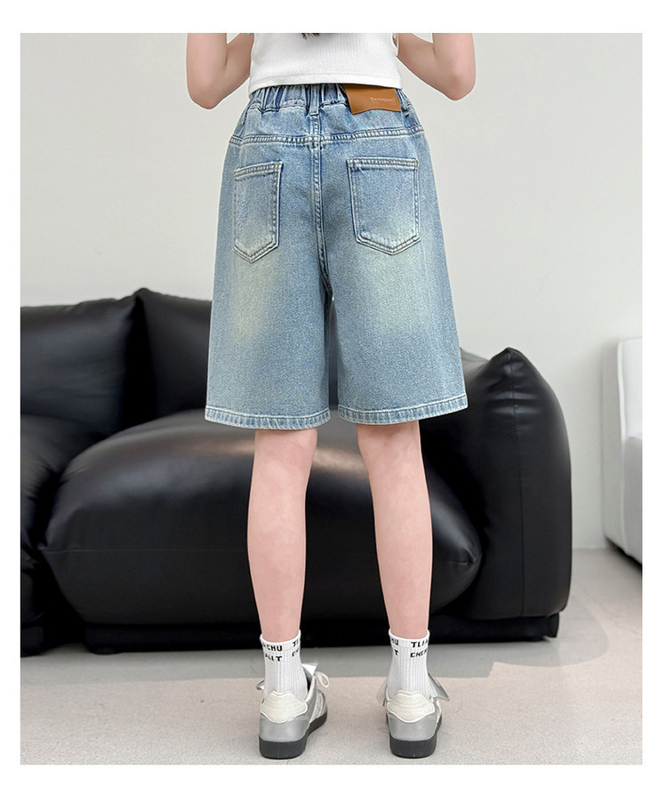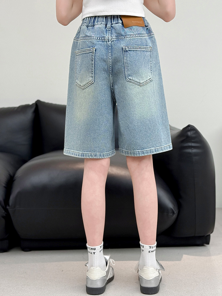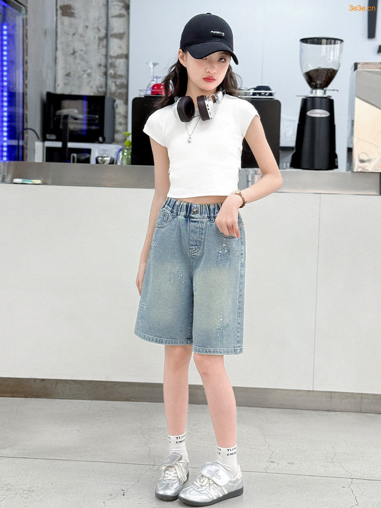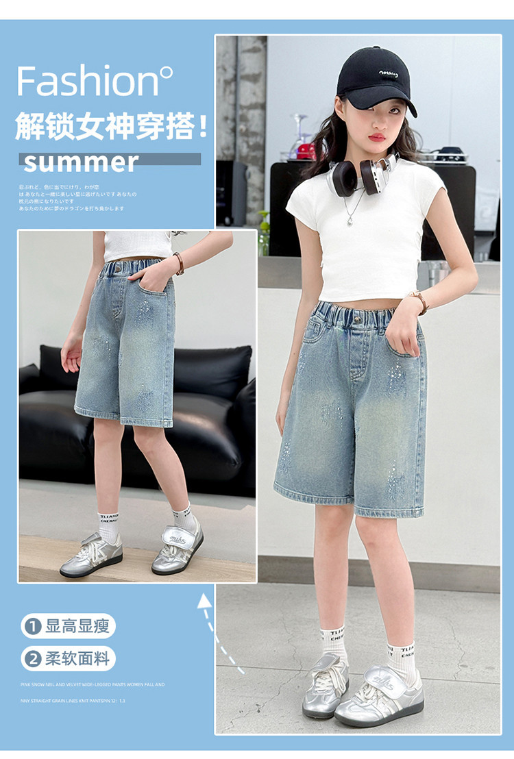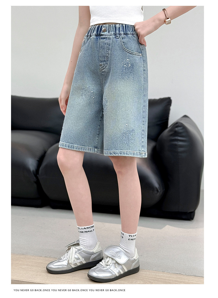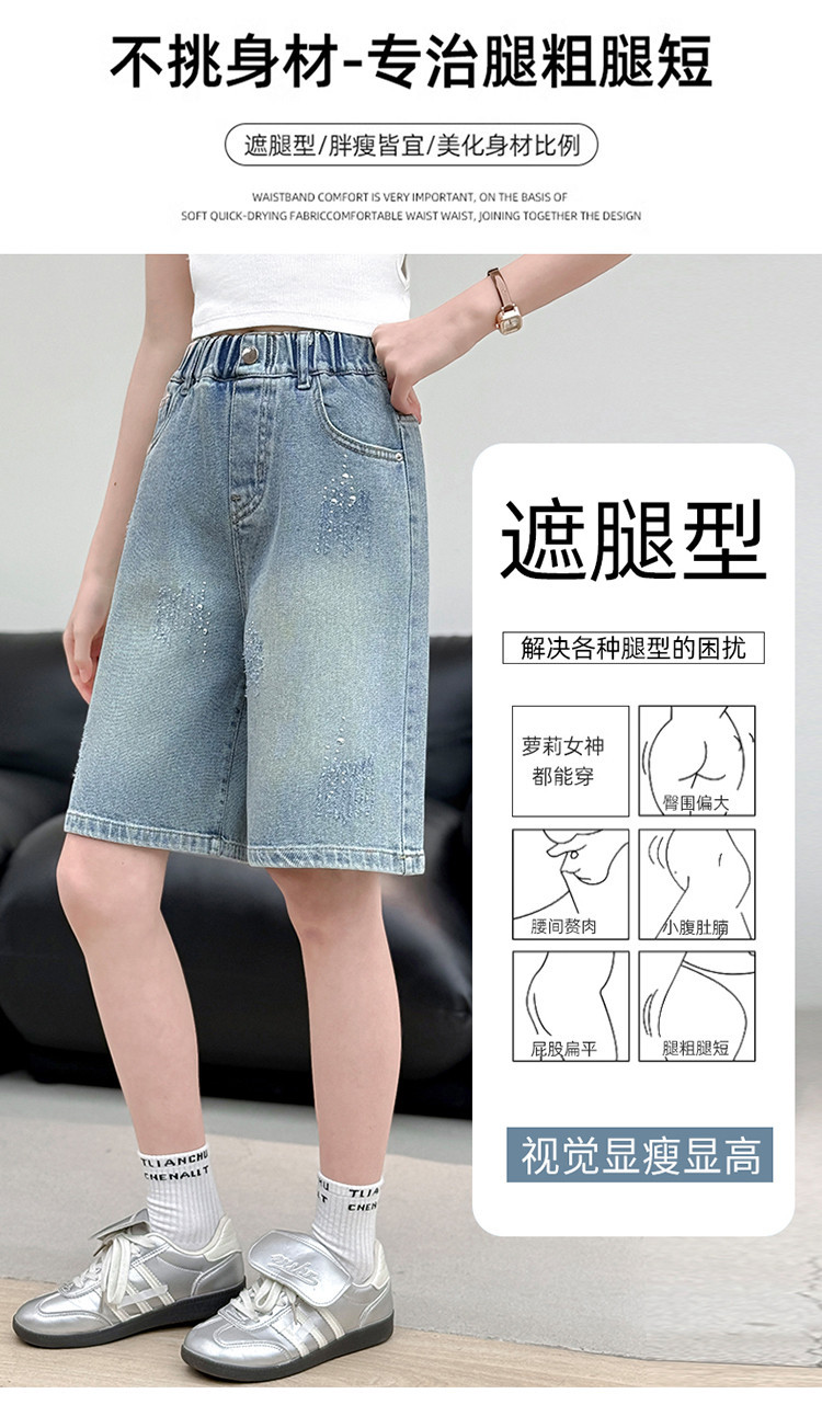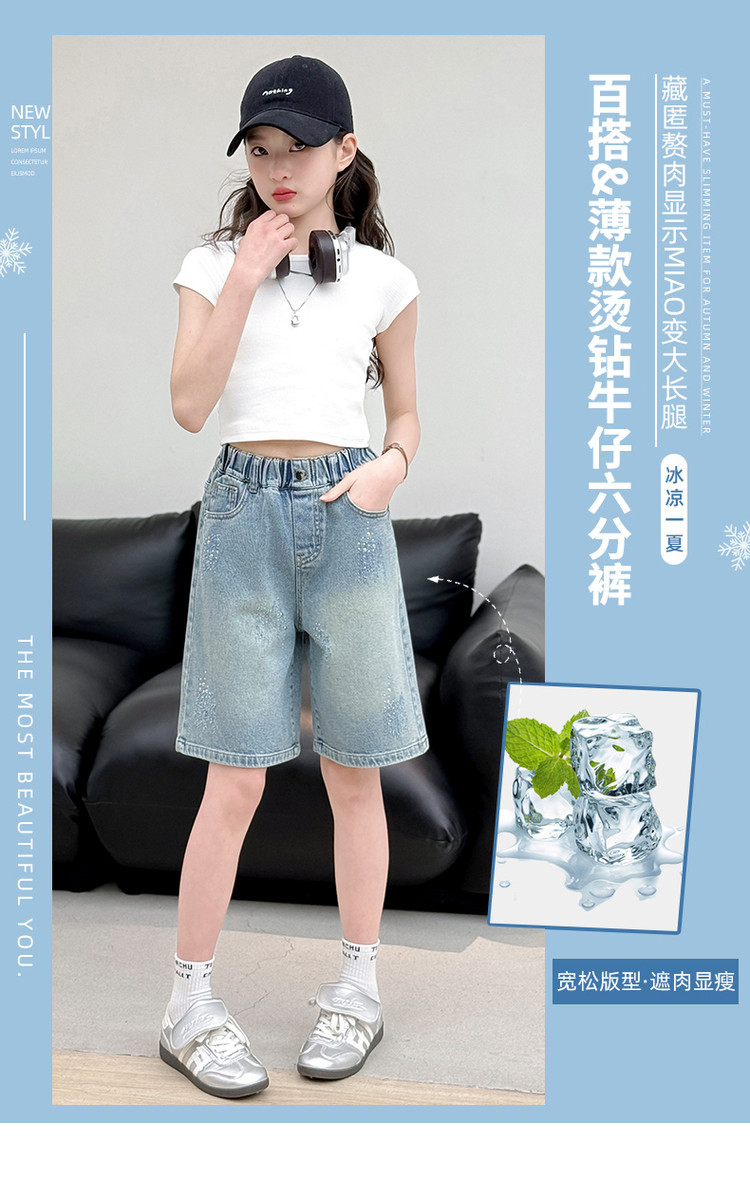 크로스보더 여아 여름 스타일 핸드메이드 다이아몬드 장식 데님 6부 바지 2026년 신상 한국 스타일 캐주얼 중대형 아동 패션 반바지스토어 가기