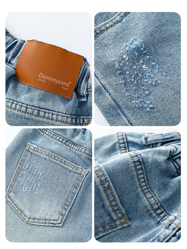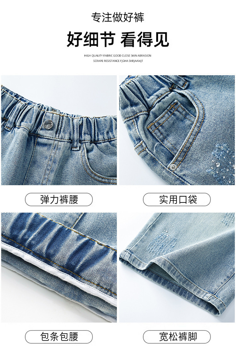 크로스보더 여아 여름 스타일 핸드메이드 다이아몬드 장식 데님 6부 바지 2026년 신상 한국 스타일 캐주얼 중대형 아동 패션 반바지