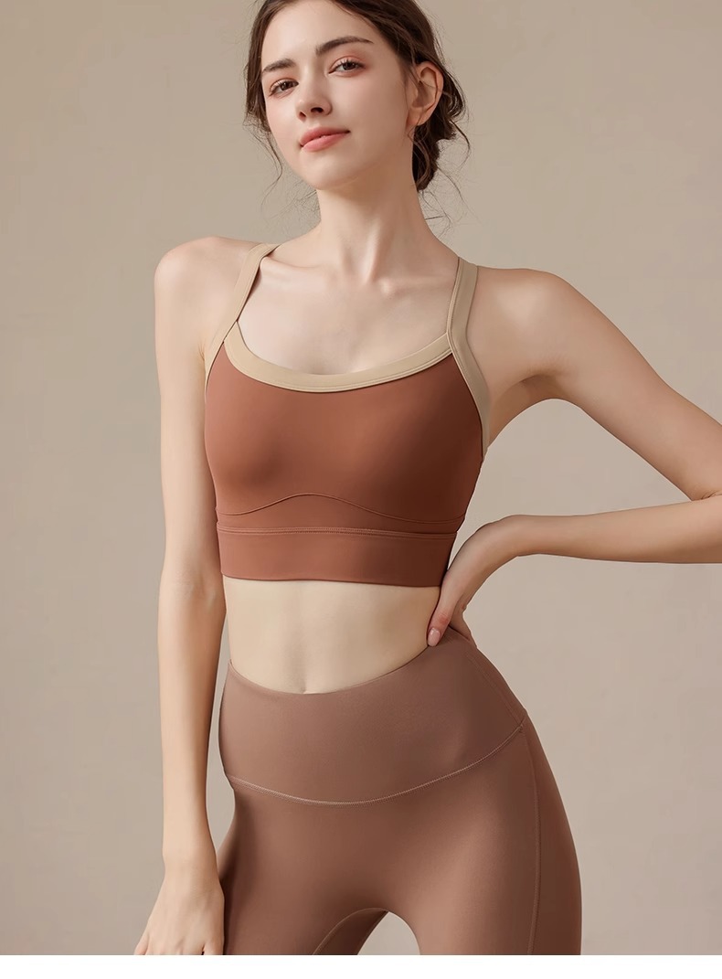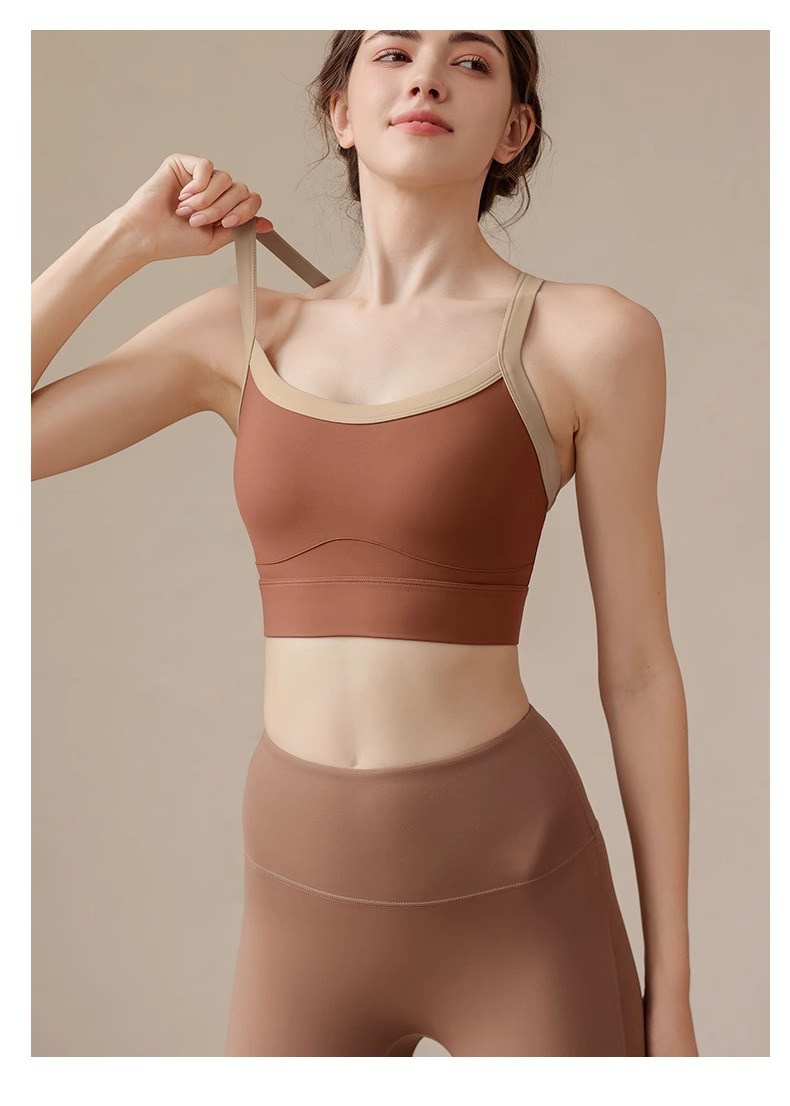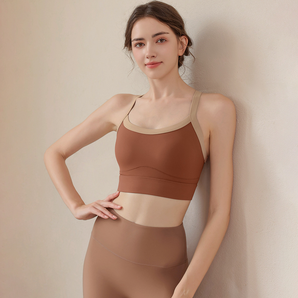 고강도 대비 색상 접합 대형 스포츠 브라 충격 방지 넓은 어깨 끈 요가웨어 피트니스 트레이닝 브라 조끼 여성용
