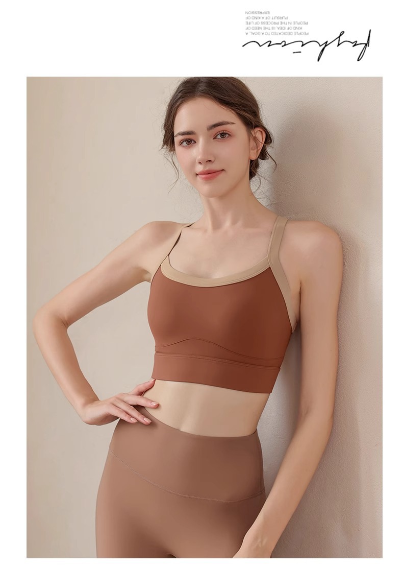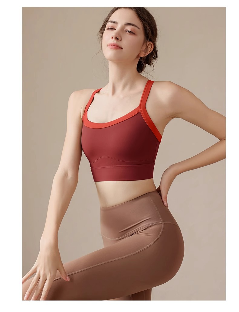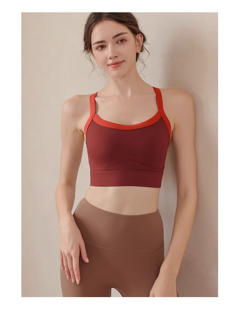 고강도 대비 색상 접합 대형 스포츠 브라 충격 방지 넓은 어깨 끈 요가웨어 피트니스 트레이닝 브라 조끼 여성용스토어 가기