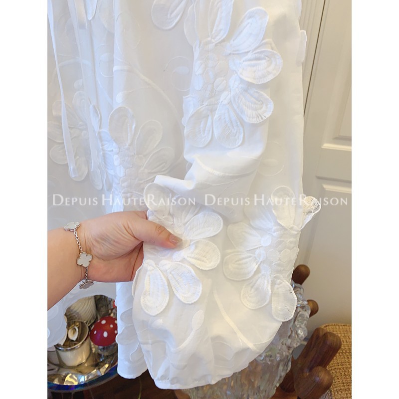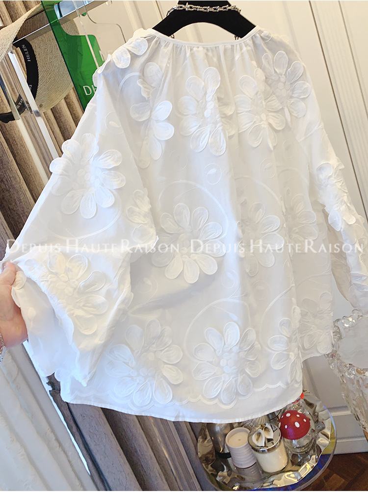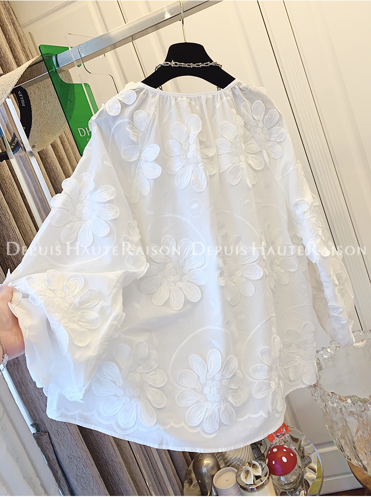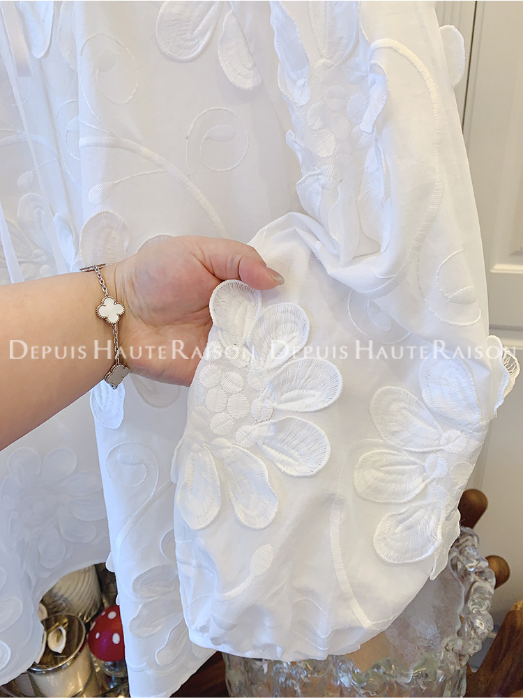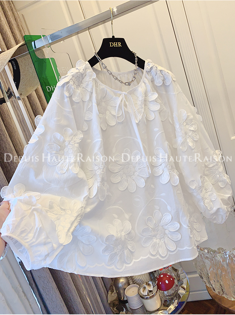 DHR 프리미엄 센스 슈퍼 잘 생긴 프랑스 자수 레이스 플라워 화이트 인형 셔츠 루즈 코튼 탑 여성 의류스토어 가기