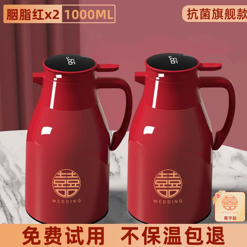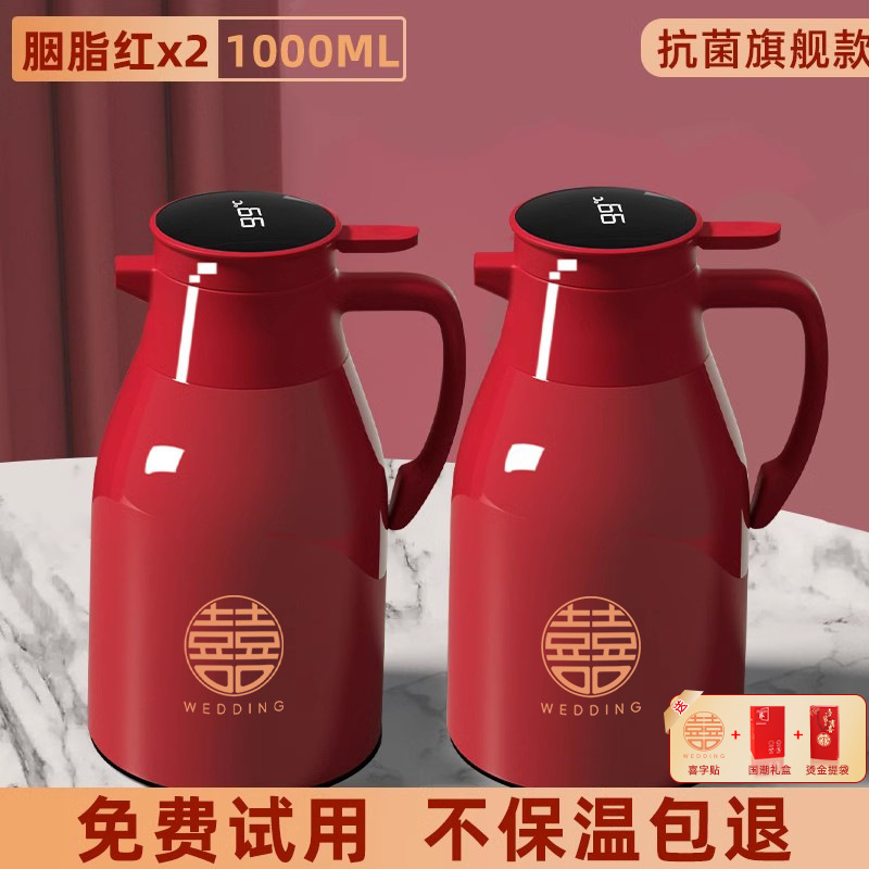 • 22_항균 플래그십 모델 [카민 레드] 1.0리터 쌍(행복한 단어 2개 + 두꺼운 은주머니 + 지능형 온도 표시, 배터리 수명 3년)