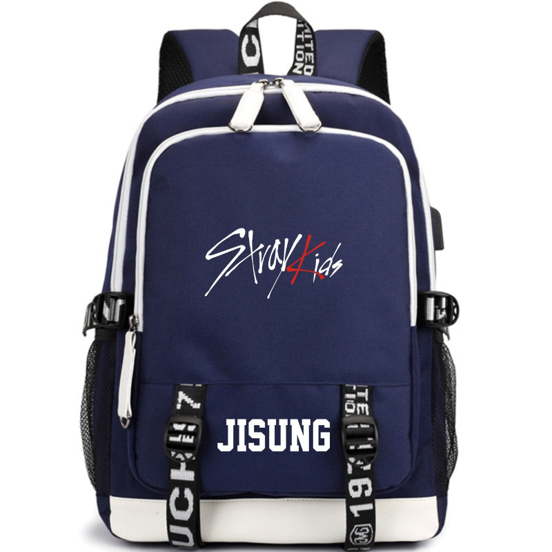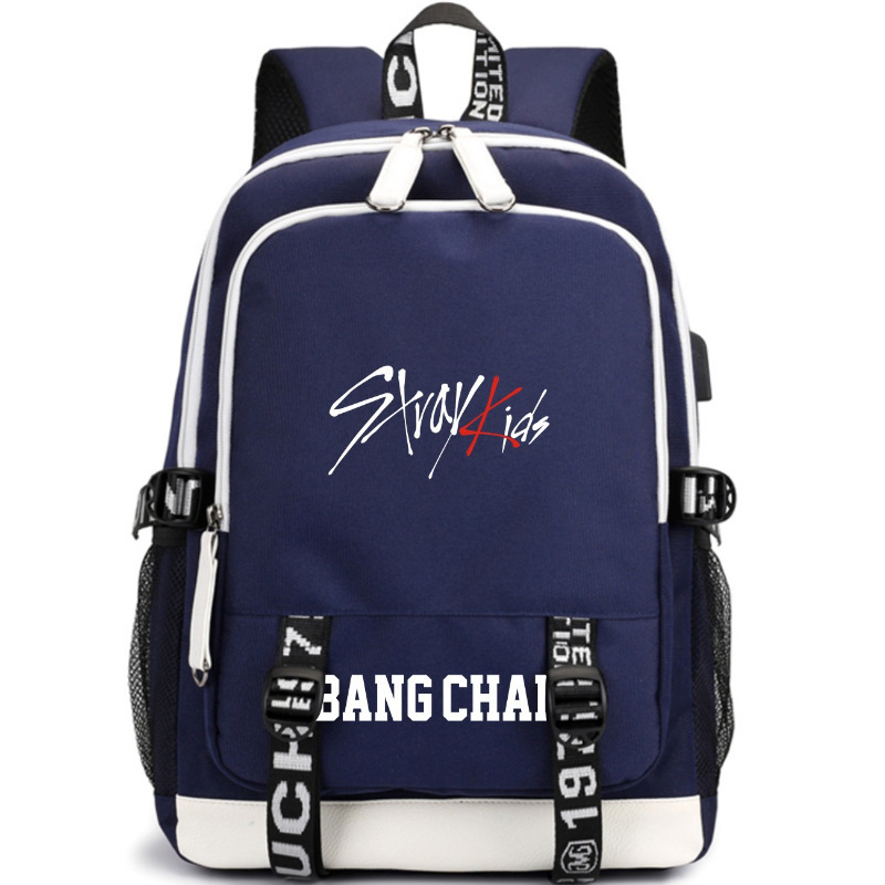 Stray Kids 새로운 배낭 중학생 학교 가방 여성 대용량 USB 충전 여행 가방 컴퓨터 가방스토어 가기