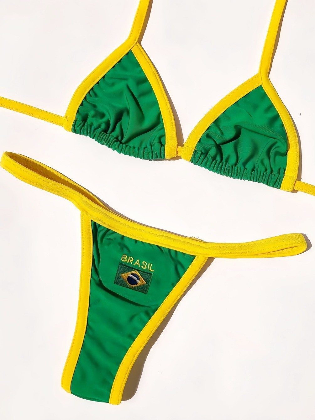 브라질 국기 자수 새로운 비키니 Aliexpress 편지 자수 수영복 비치 섹시한 숙녀 수영복