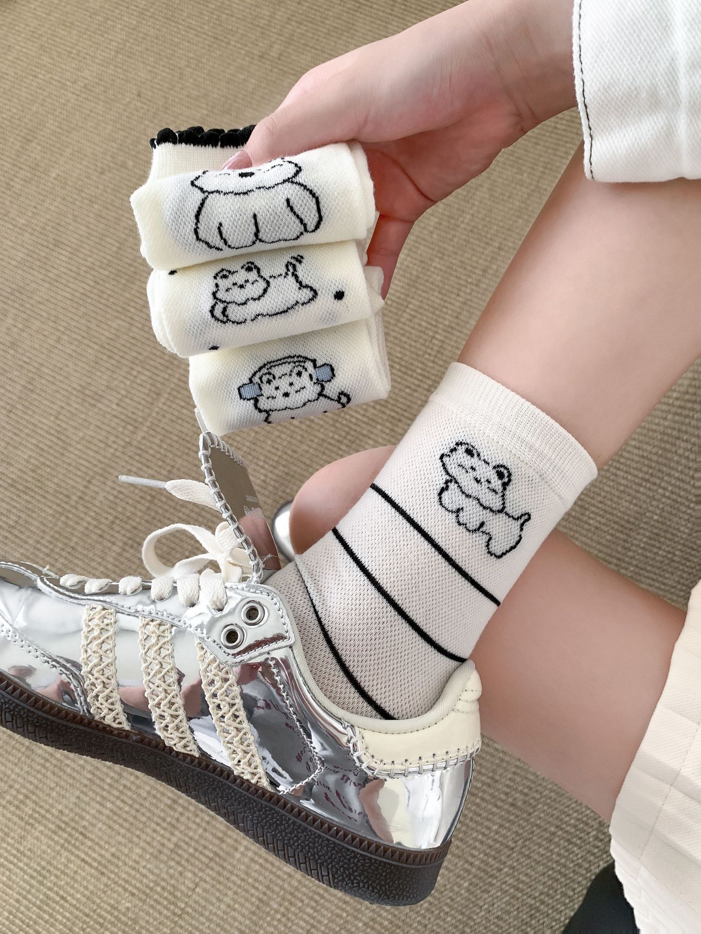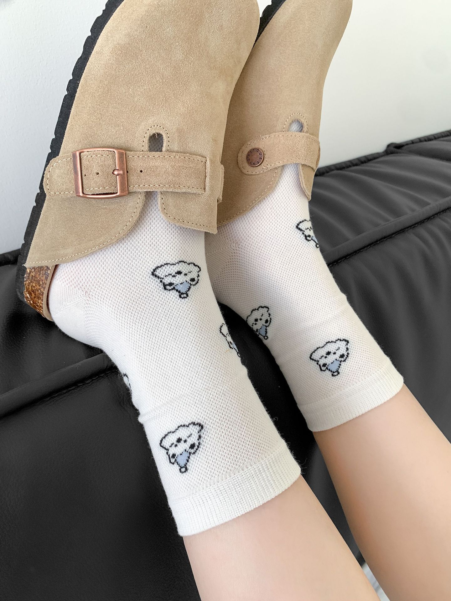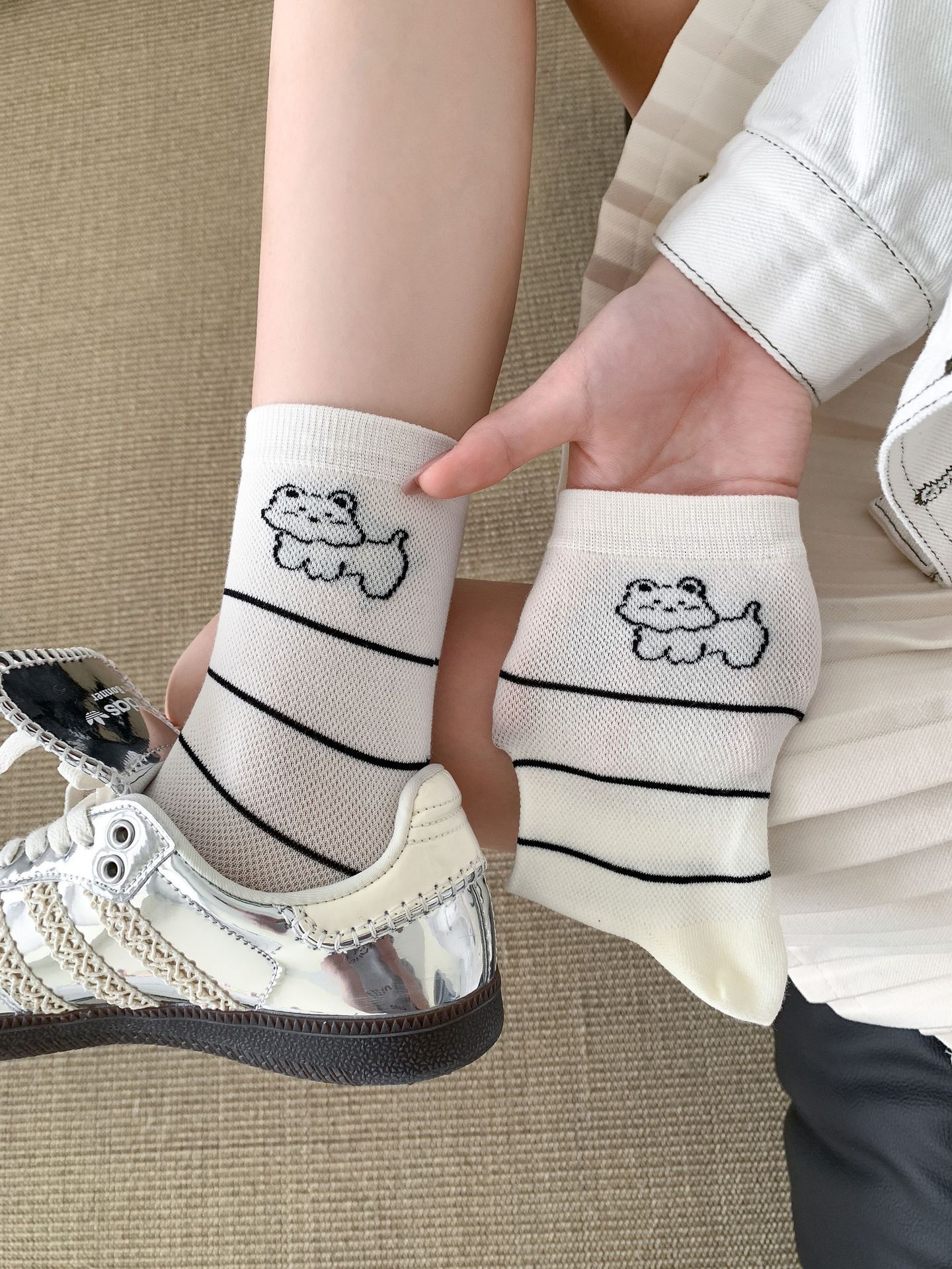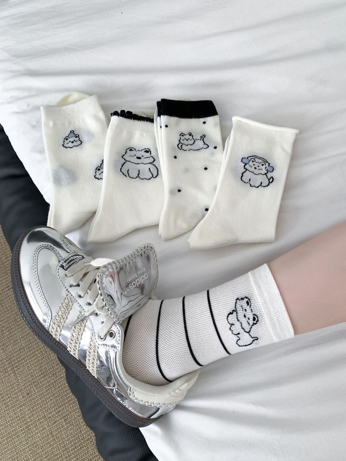 양말 여성 메쉬 개 일본 스타일 컬 중간 튜브 땀 흡수 통기성 간단한 귀여운 줄무늬 웨이브 도트 화이트 미드 튜브 양말스토어 가기