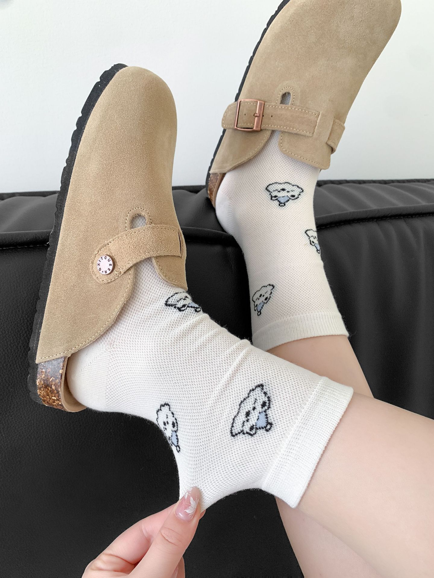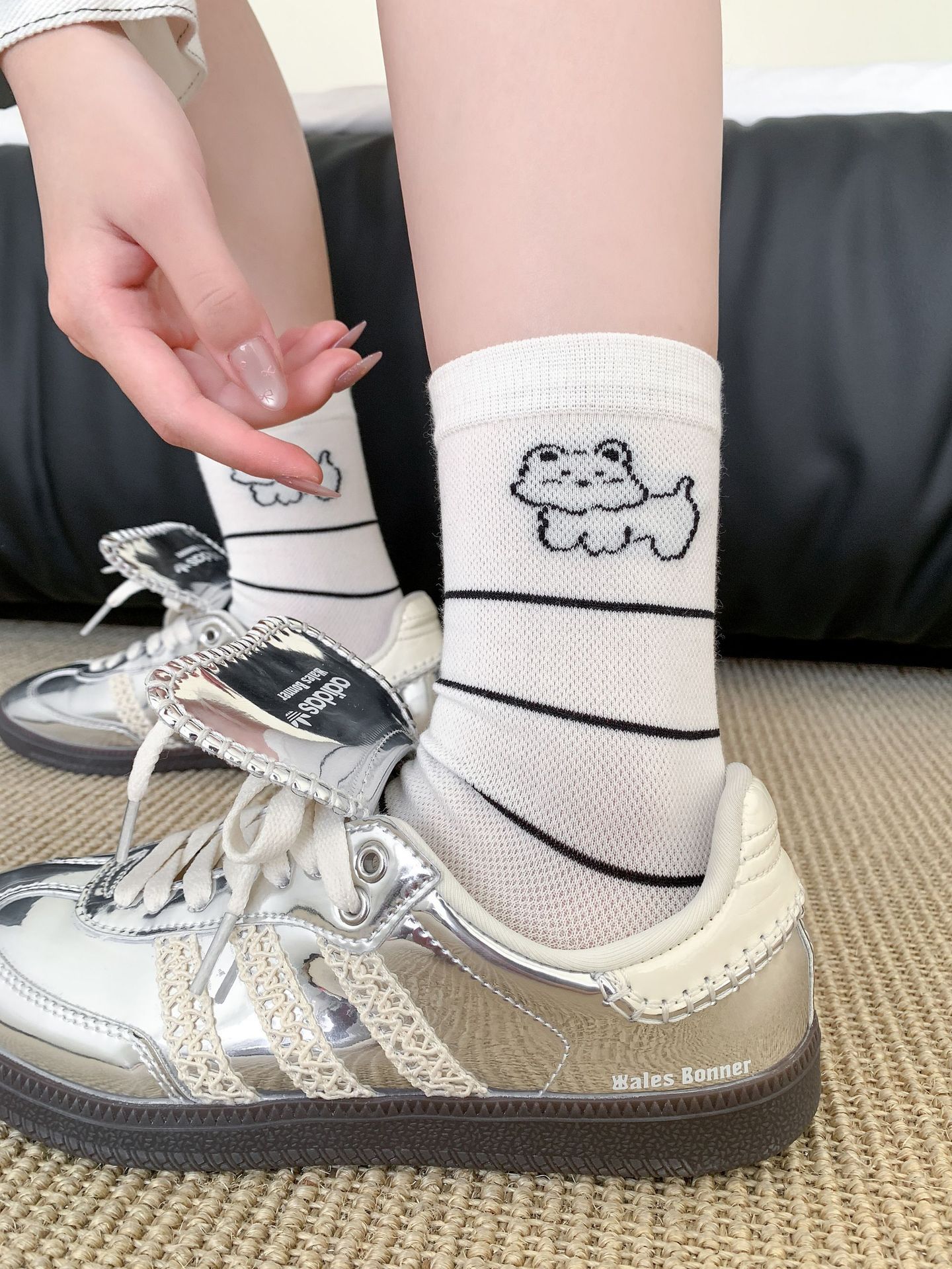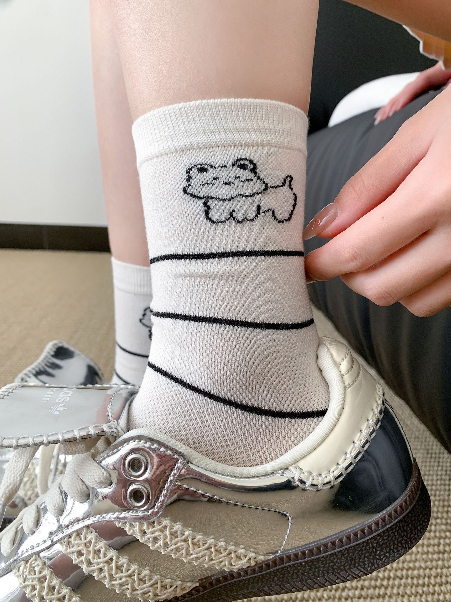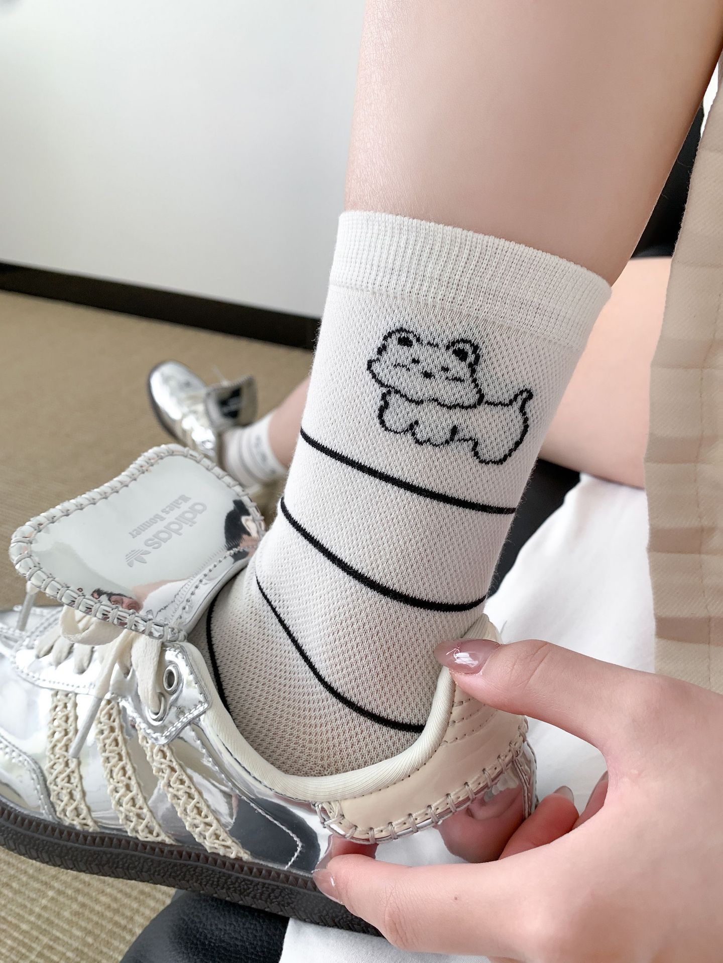 양말 여성 메쉬 개 일본 스타일 컬 중간 튜브 땀 흡수 통기성 간단한 귀여운 줄무늬 웨이브 도트 화이트 미드 튜브 양말스토어 가기