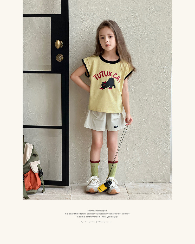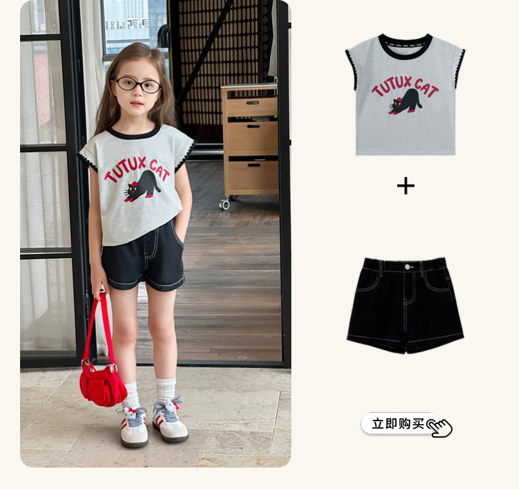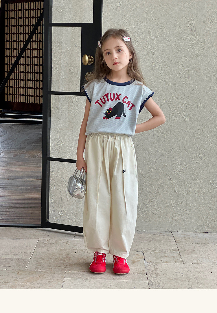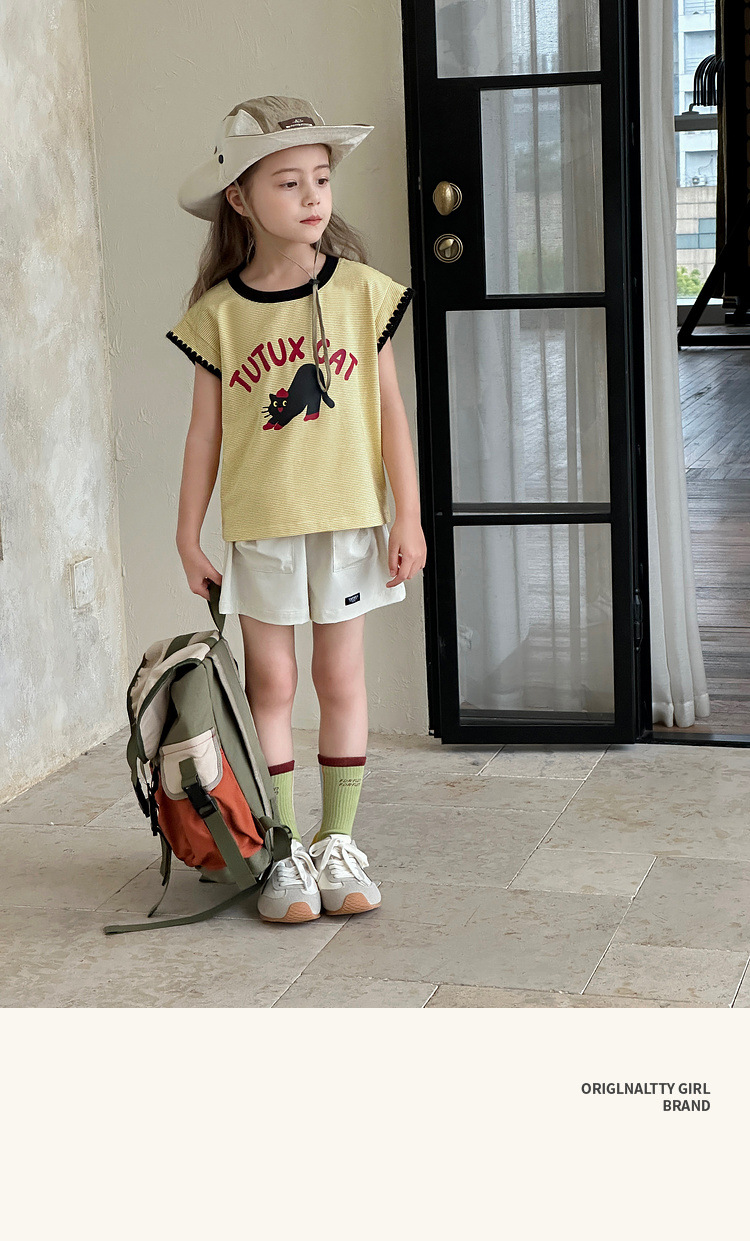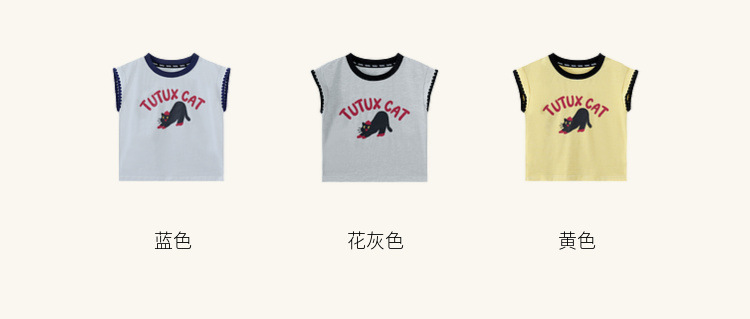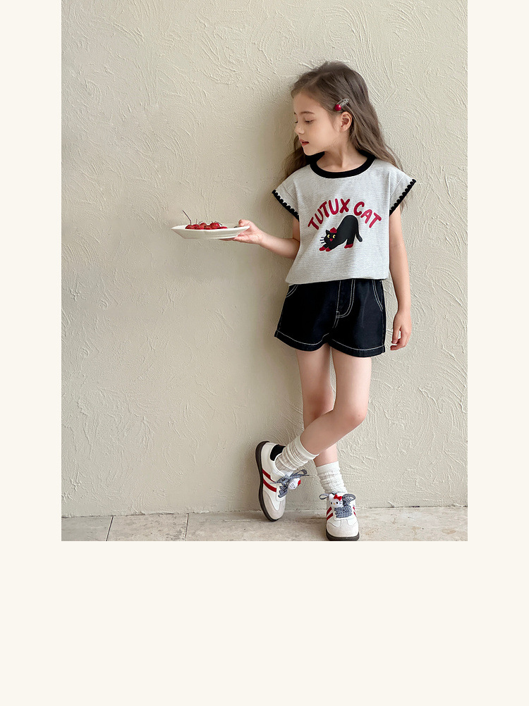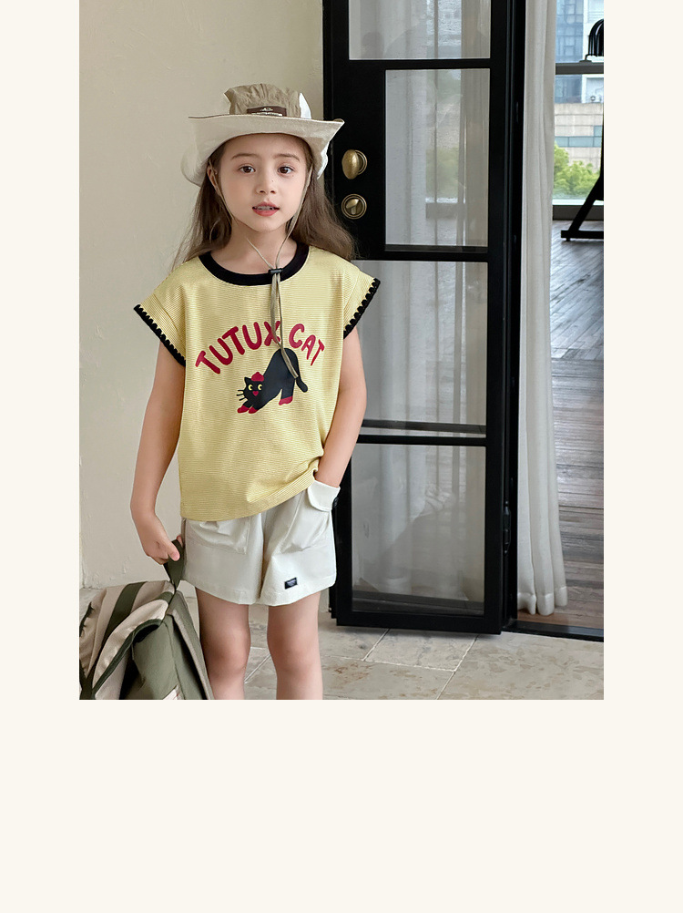 투투 코끼리 소녀의 티셔츠 2025 여름 새로운 어린이 비행 슬리브 스트라이프 조끼 캐주얼 짧은 소매 어린이 탑스토어 가기