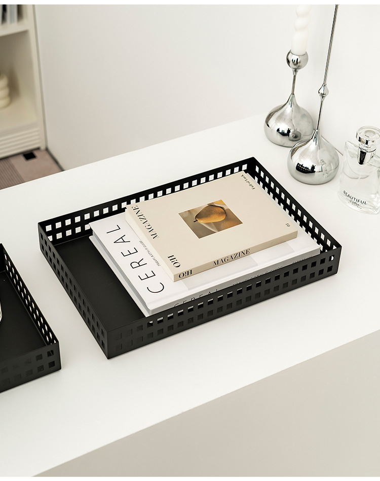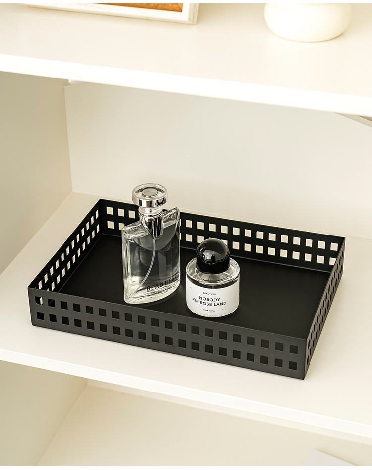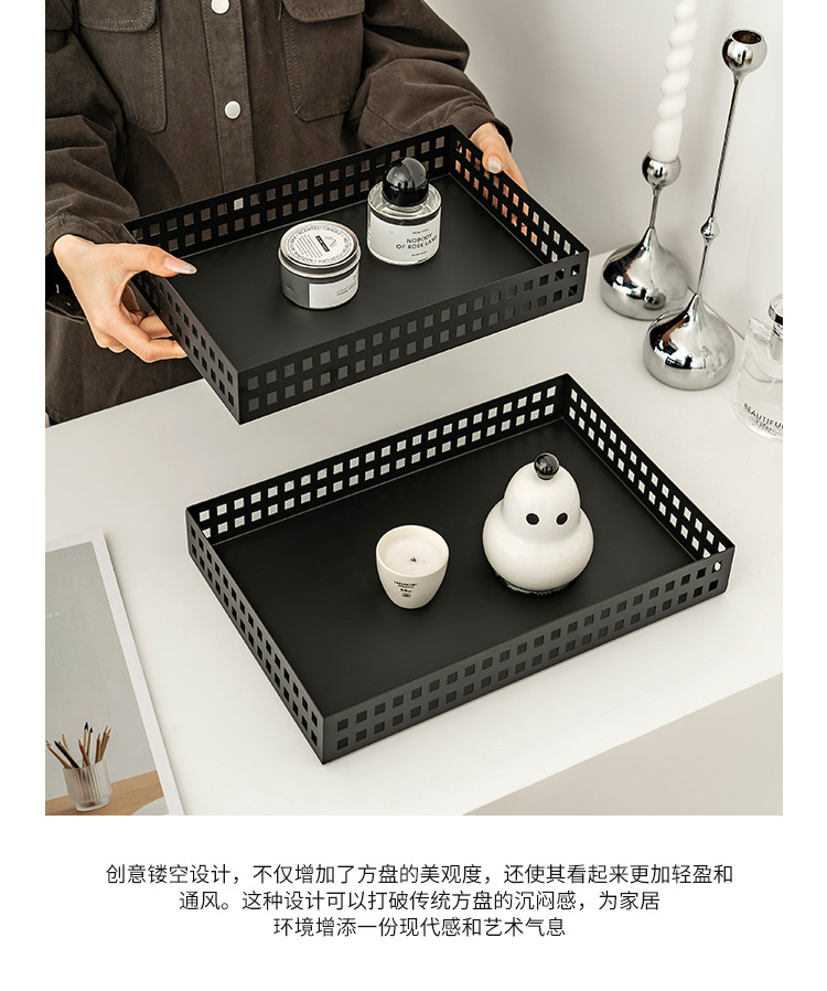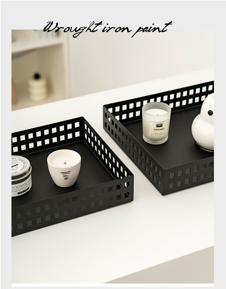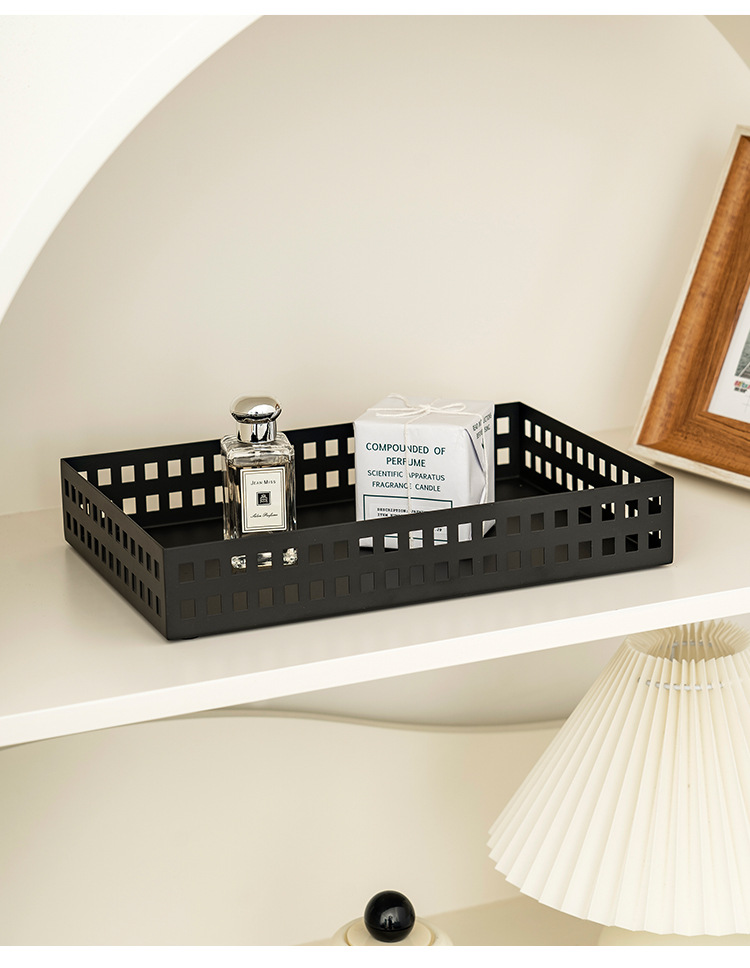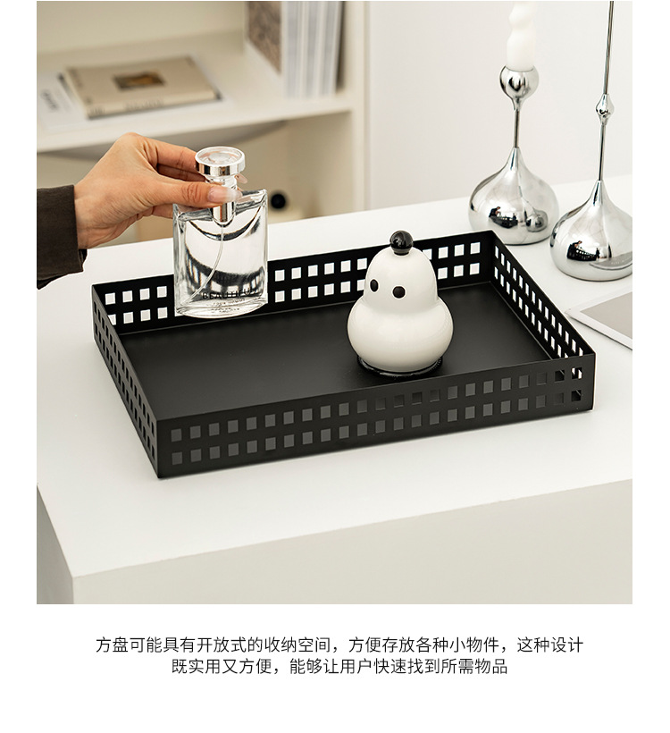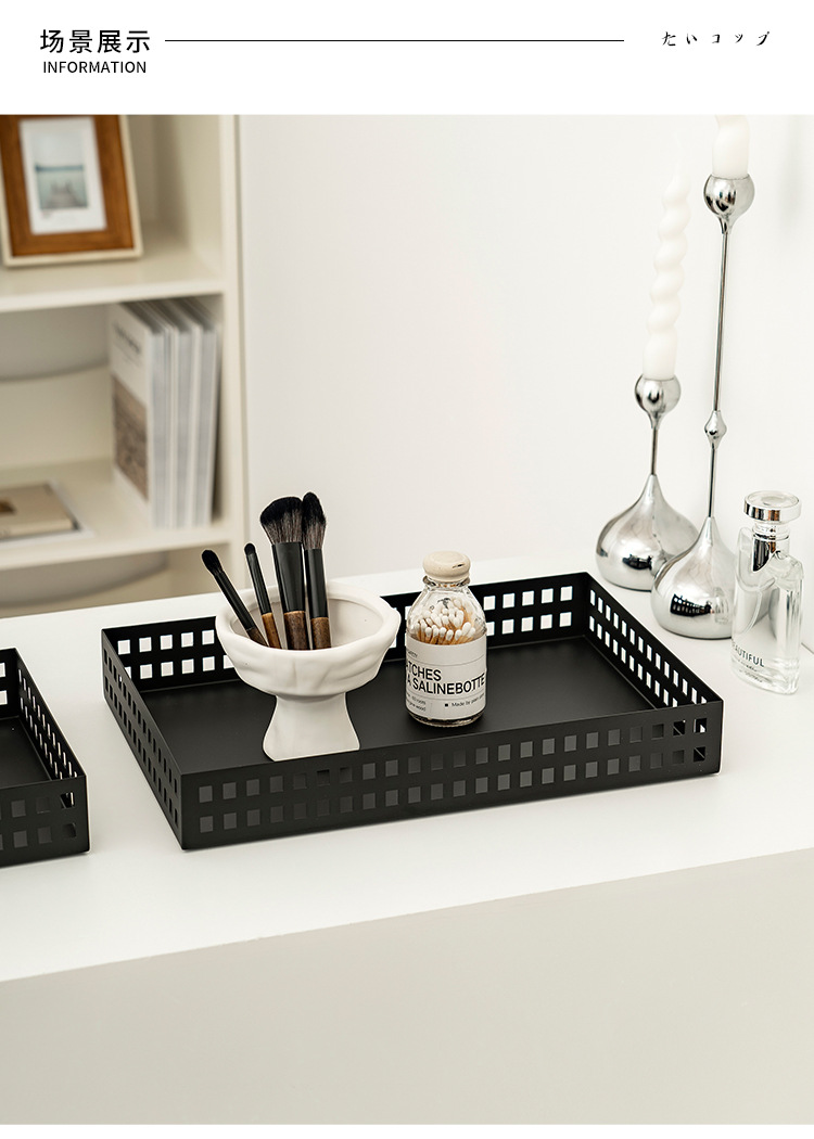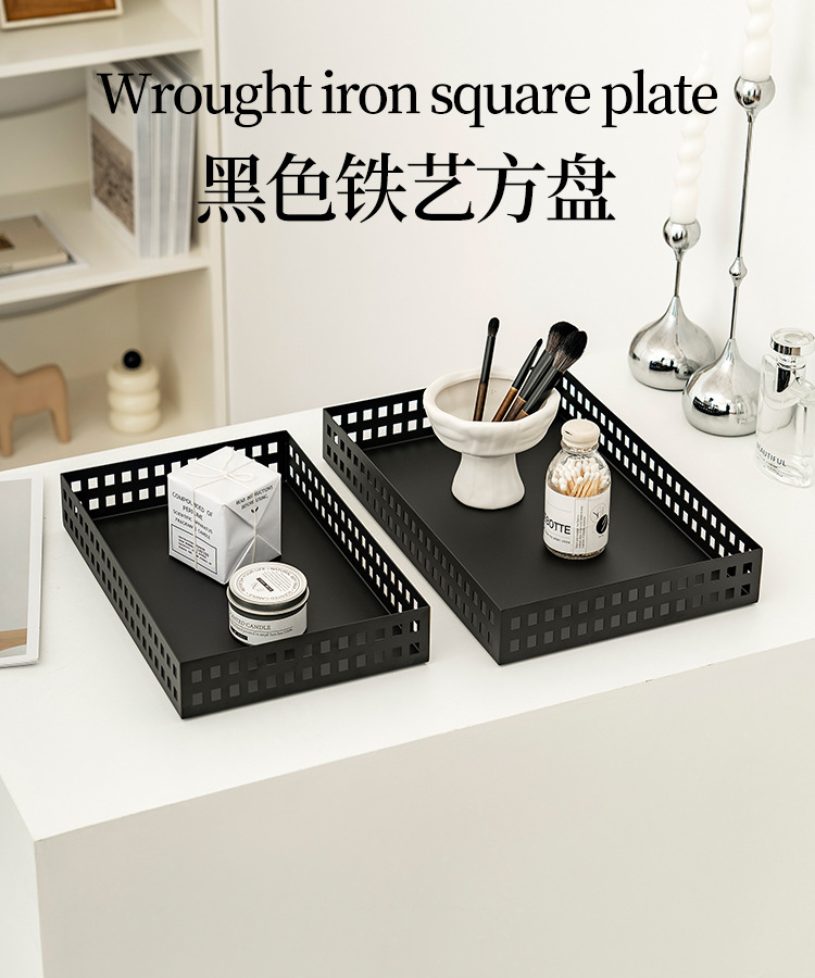 새로운 직사각형 아로마 테라피 쥬얼리 트레이 입구 장식품 보관함 데스크탑 철제 검은 화장품 보관함스토어 가기