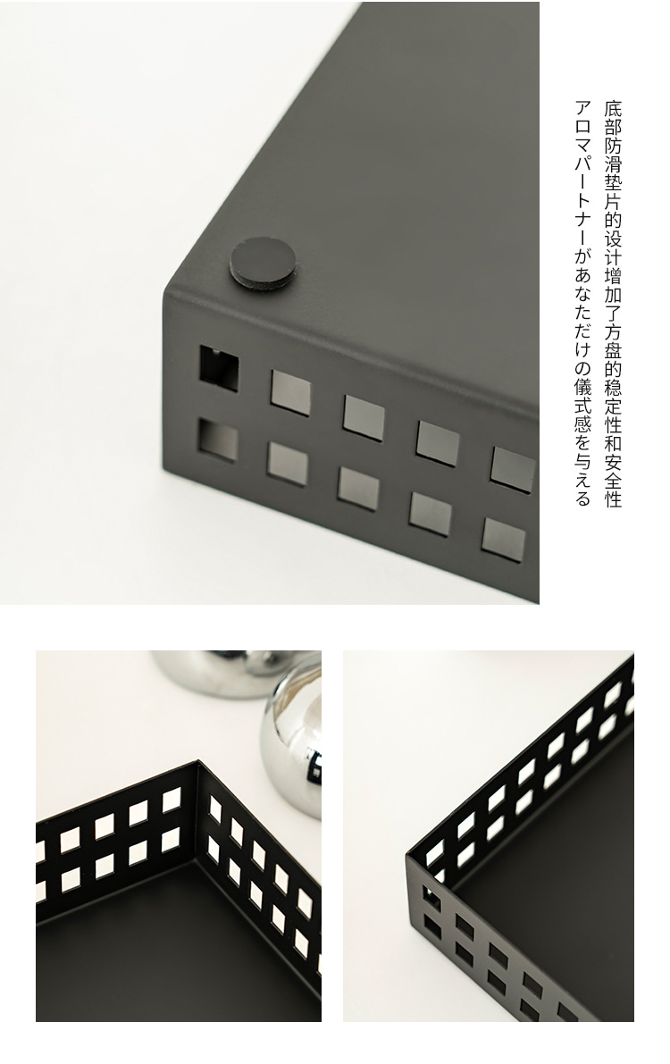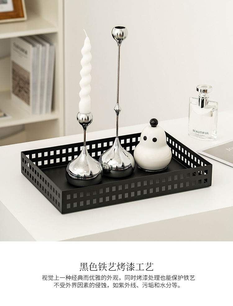 새로운 직사각형 아로마 테라피 쥬얼리 트레이 입구 장식품 보관함 데스크탑 철제 검은 화장품 보관함