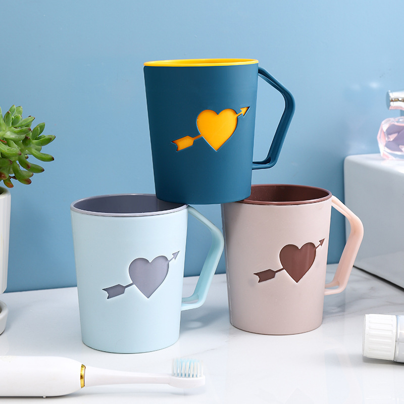 창의적인 커플 구강 세정제 컵, 칫솔 컵, 세척 컵, 학생 치과 컵, 환경 친화적인 이중층 간이 물컵, 하트 모양 구강 세정제 컵스토어 가기