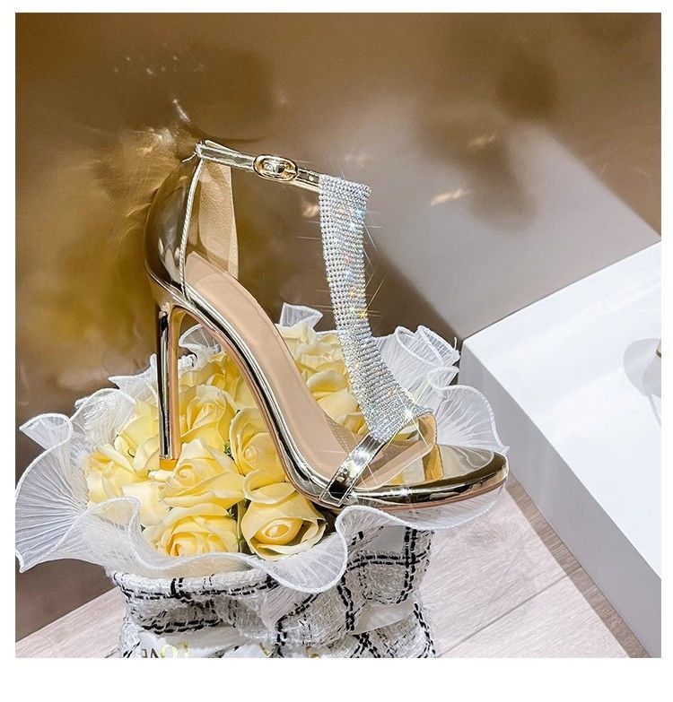 여름 새로운 오픈 발가락 라인스톤 T-스트랩 인터넷 인기있는 하이 엔드 하이힐 2024 웨스턴 스타일 8.5cm 여성용 얇은 힐 샌들스토어 가기