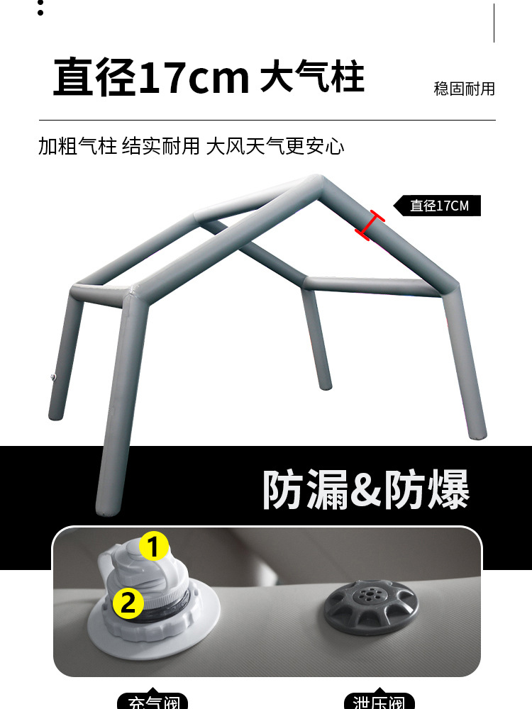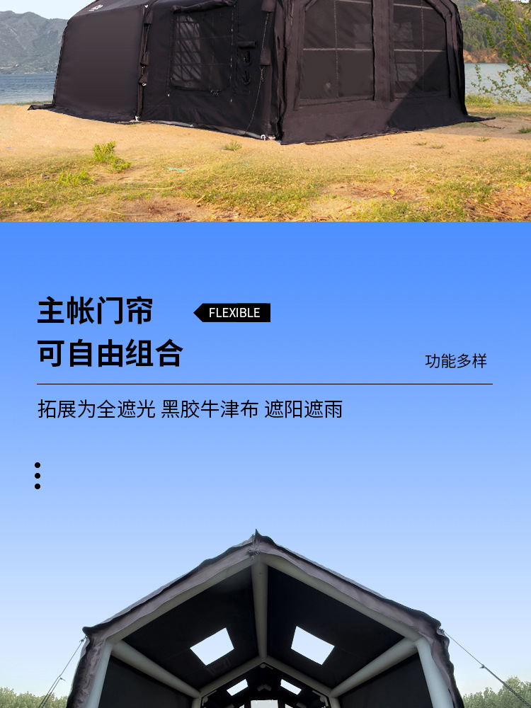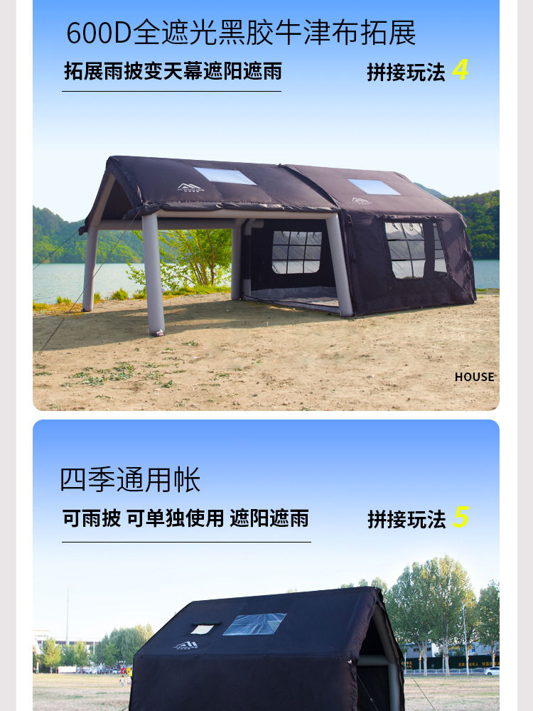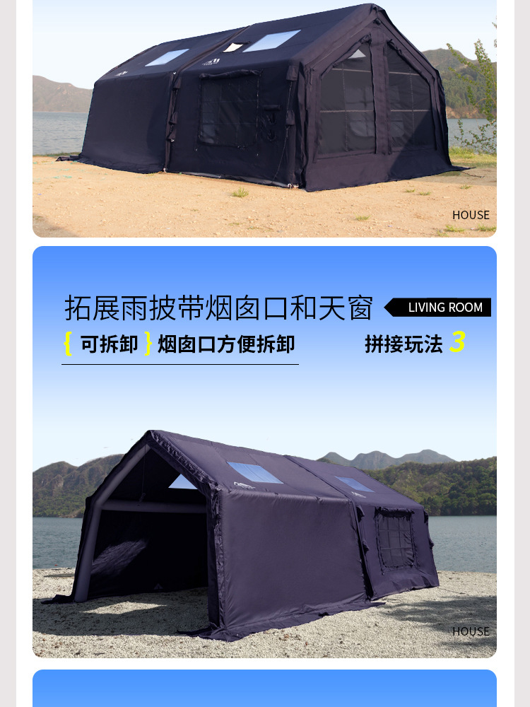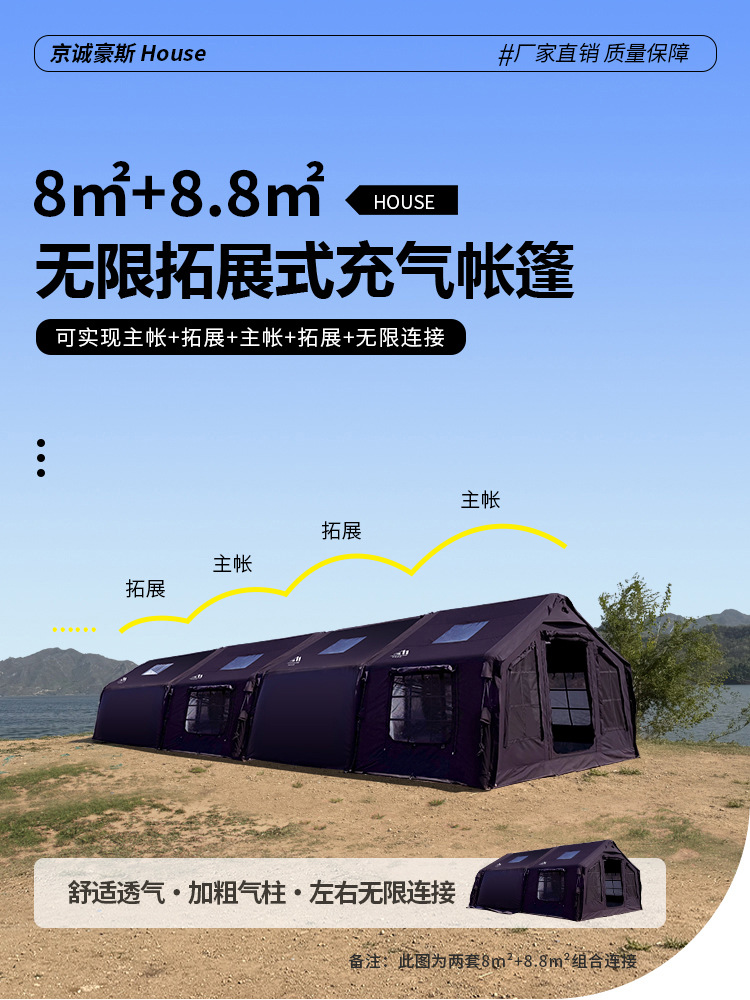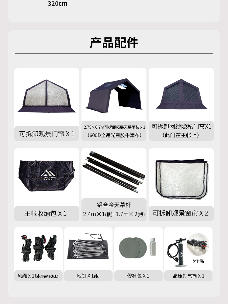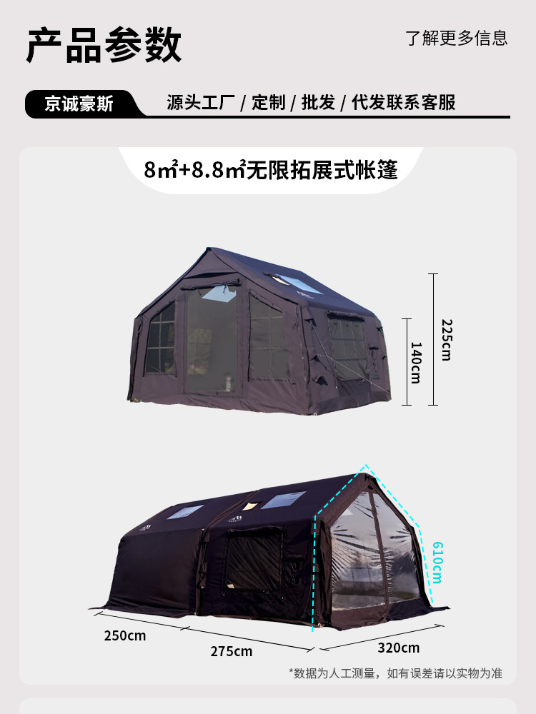 • 블랙 8+8.8㎡(확장 공기 기둥 + 메인 텐트 + 확장 + 탈착식 TPU 커튼 + 캐노피 폴 3개 전체 세트)