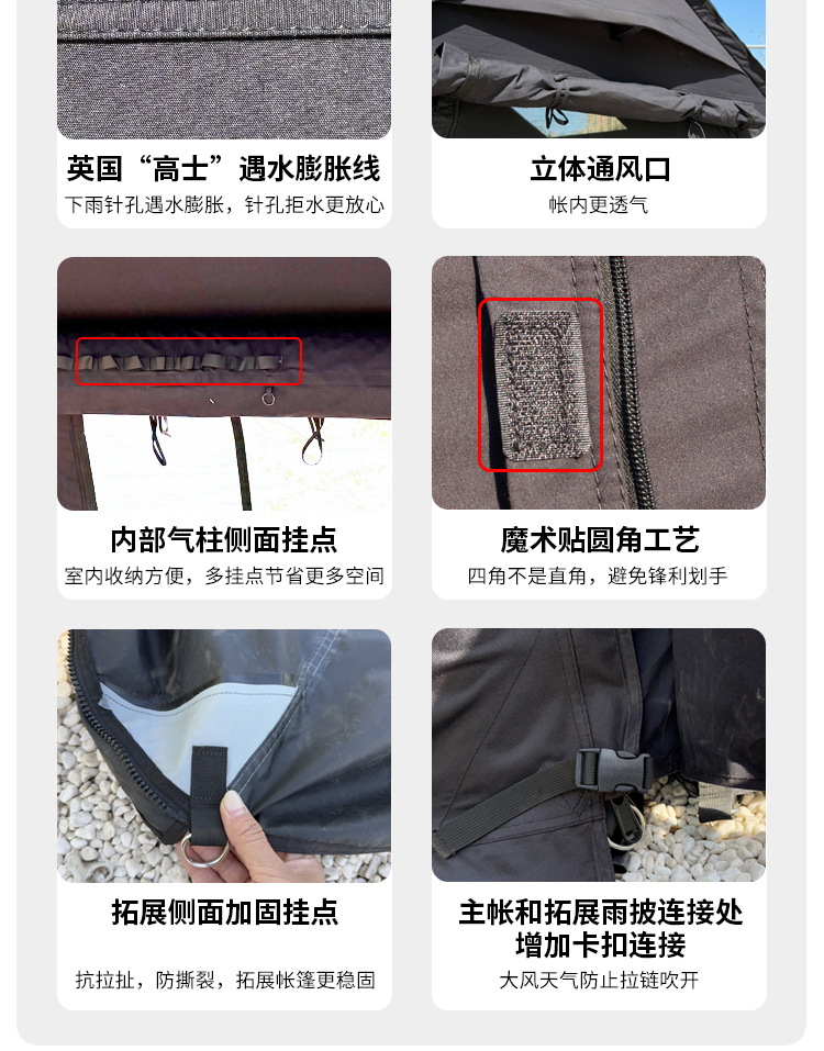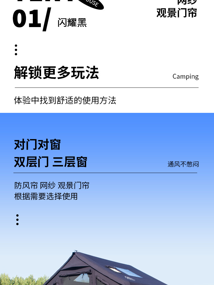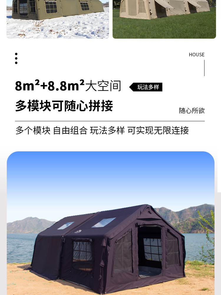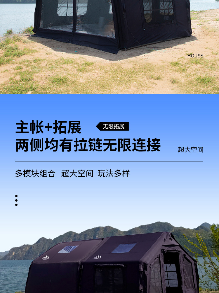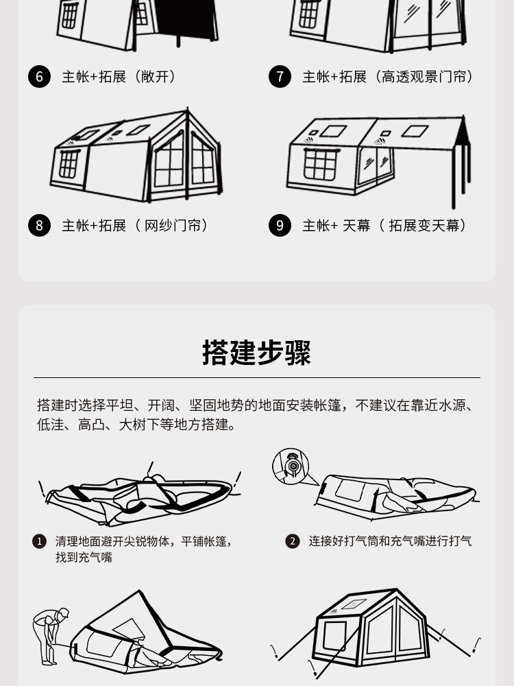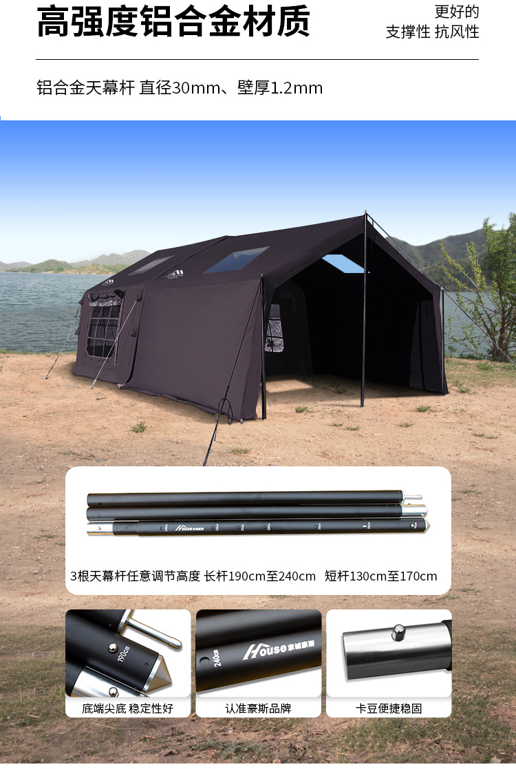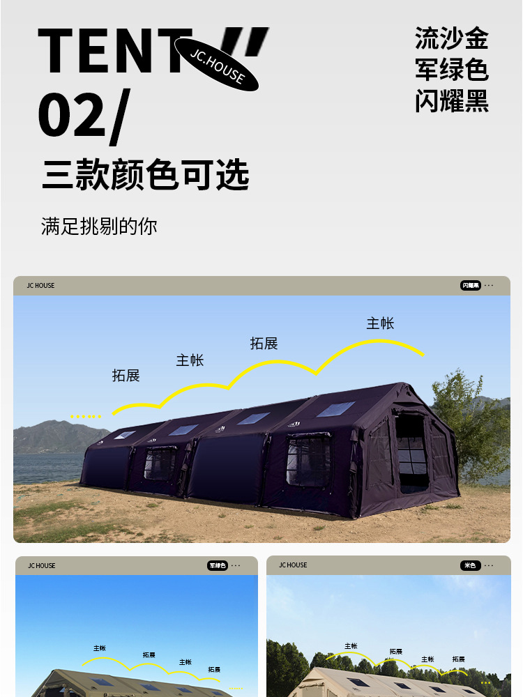 • 블랙 8+8.8㎡(확장 공기 기둥 + 메인 텐트 + 확장 + 탈착식 TPU 커튼 + 캐노피 폴 3개 전체 세트)