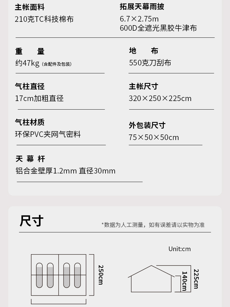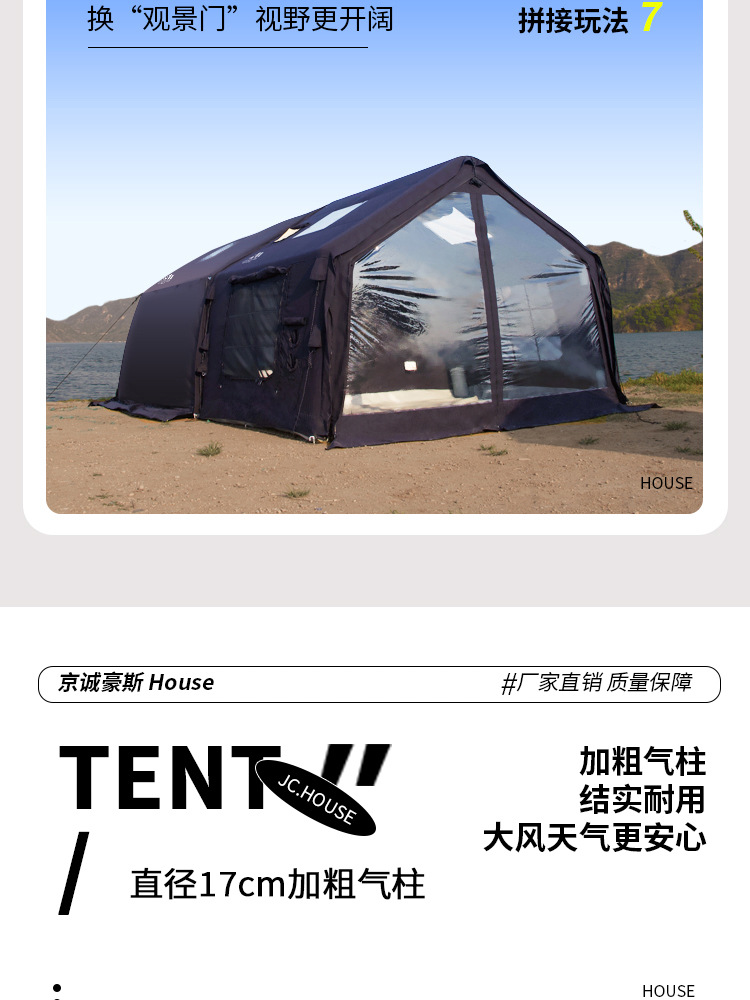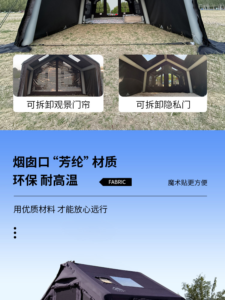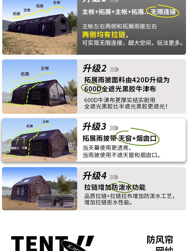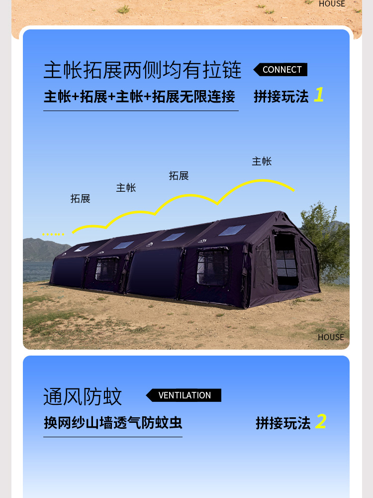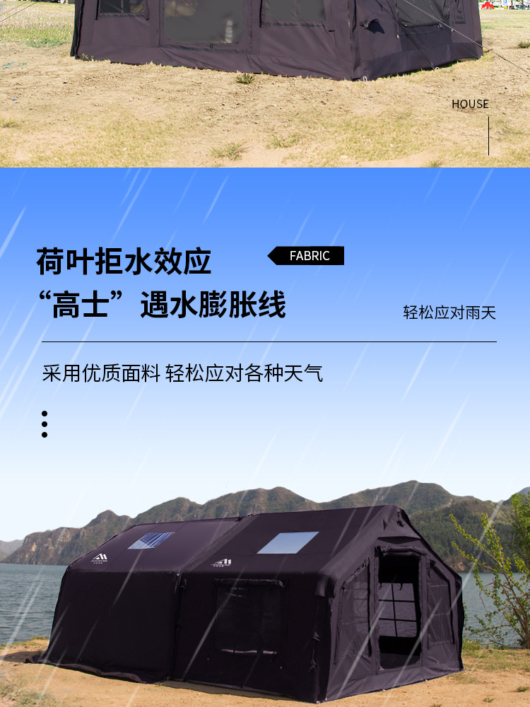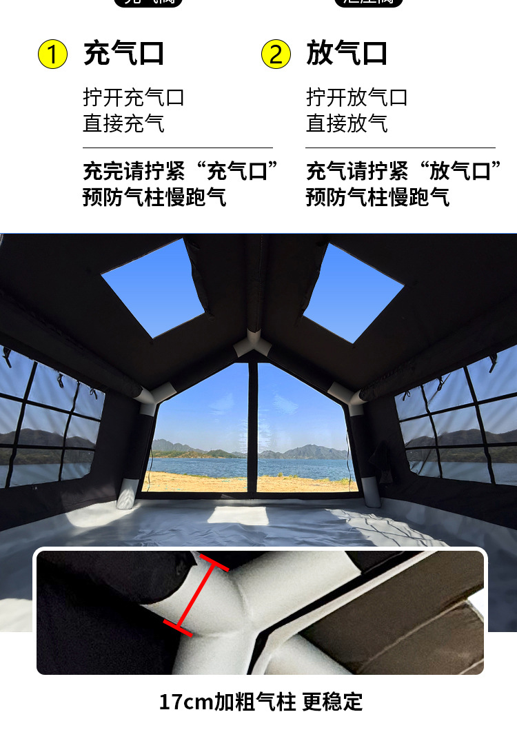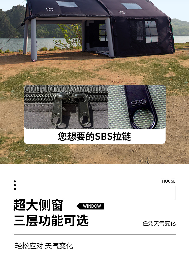 • 블랙 8+8.8㎡(확장 공기 기둥 + 메인 텐트 + 확장 + 탈착식 TPU 커튼 + 캐노피 폴 3개 전체 세트)