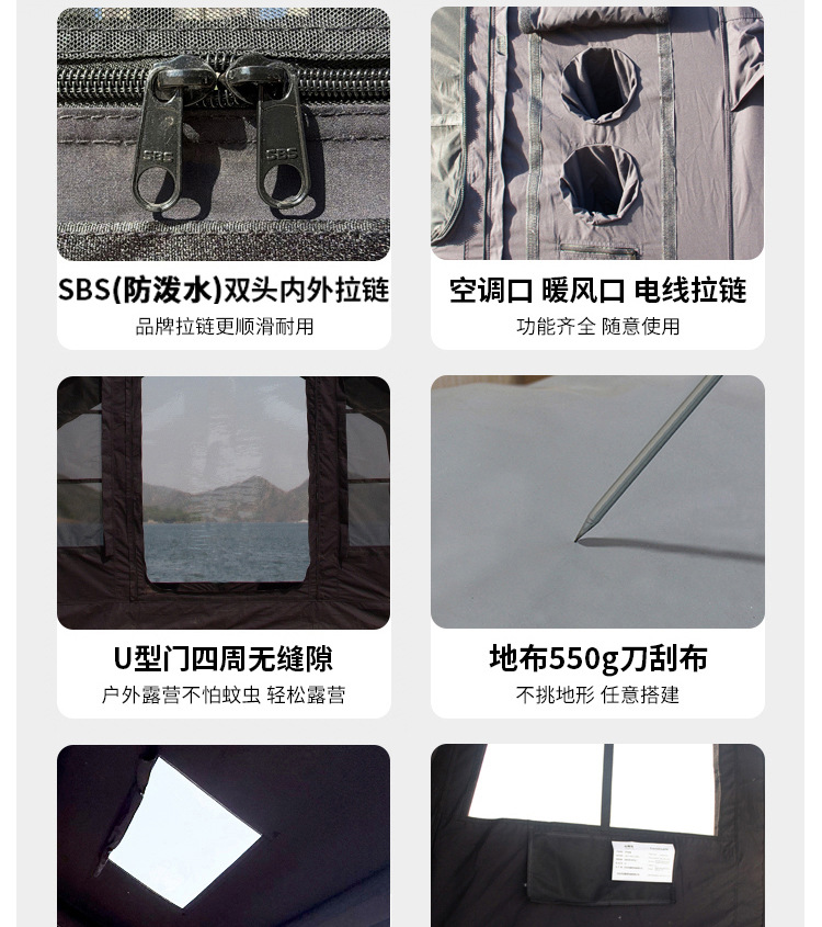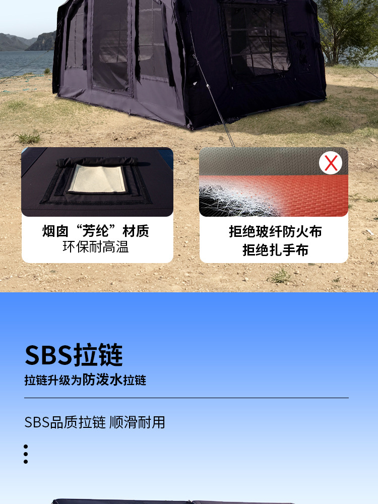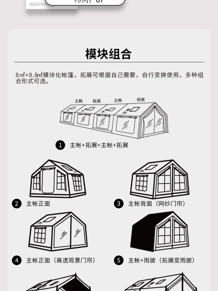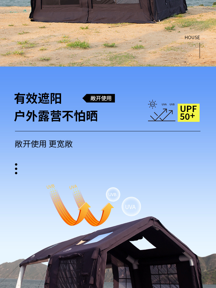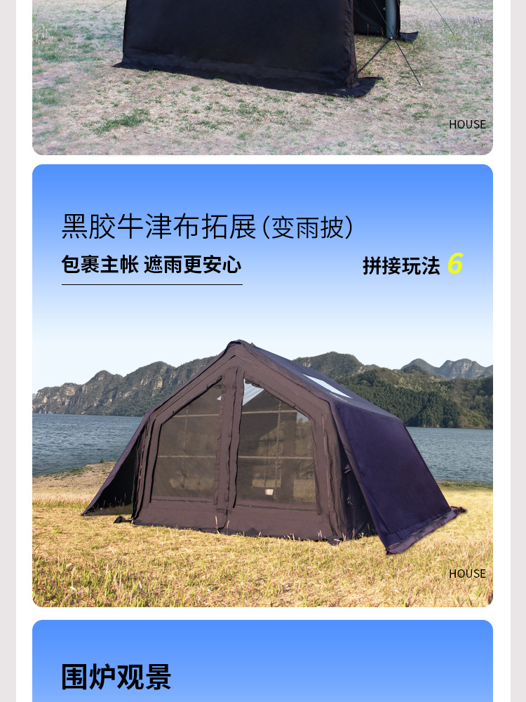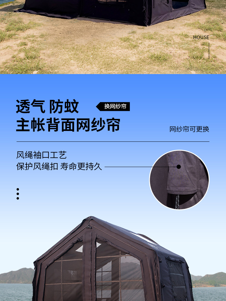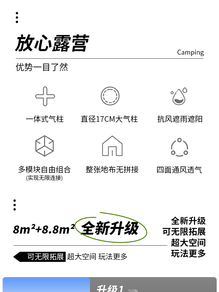 • 블랙 8+8.8㎡(확장 공기 기둥 + 메인 텐트 + 확장 + 탈착식 TPU 커튼 + 캐노피 폴 3개 전체 세트)