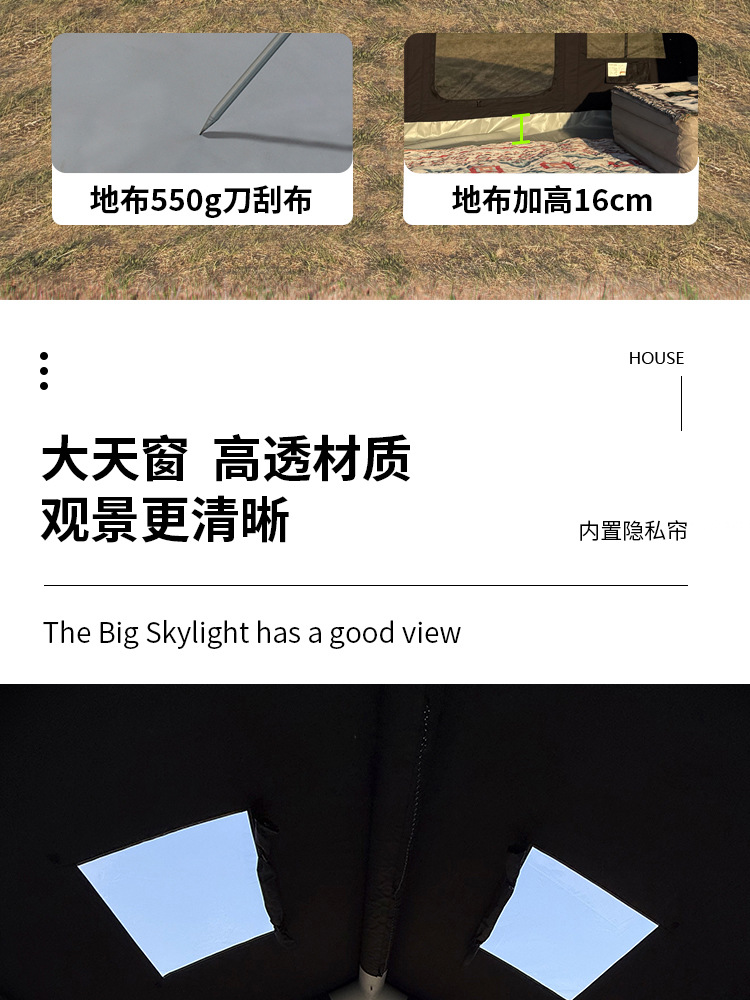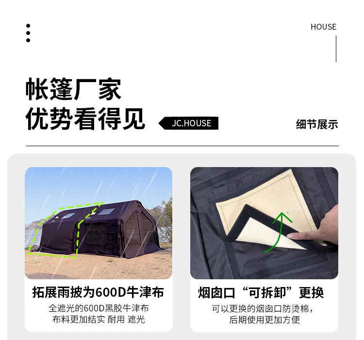 징청하우스JcHouse8+8.8 ㎡ 팽창식 텐트 캠핑 야영지 면직물 야외용 확장형 지붕 텐트스토어 가기