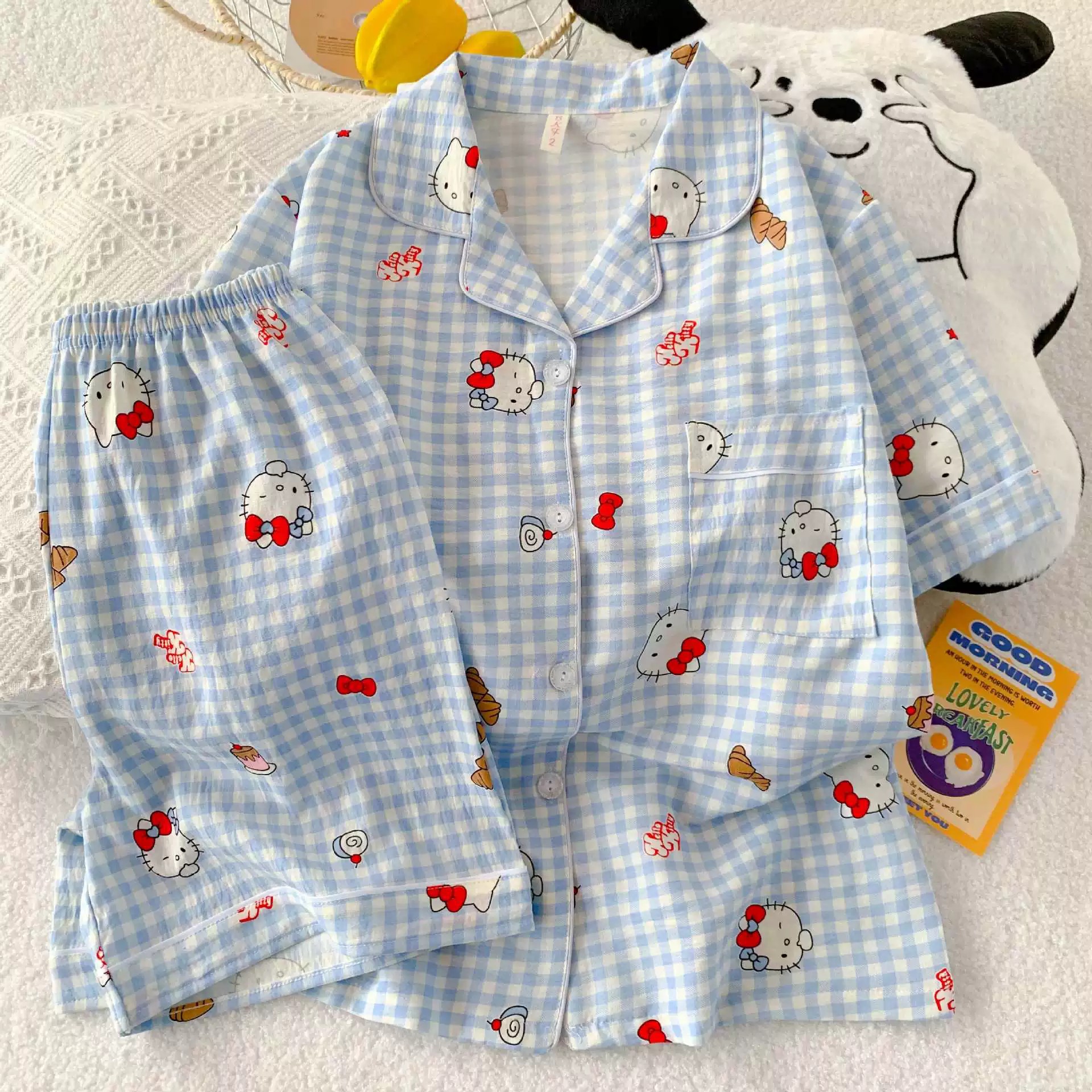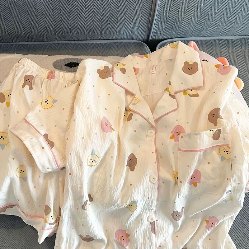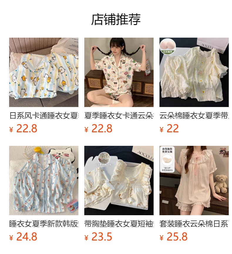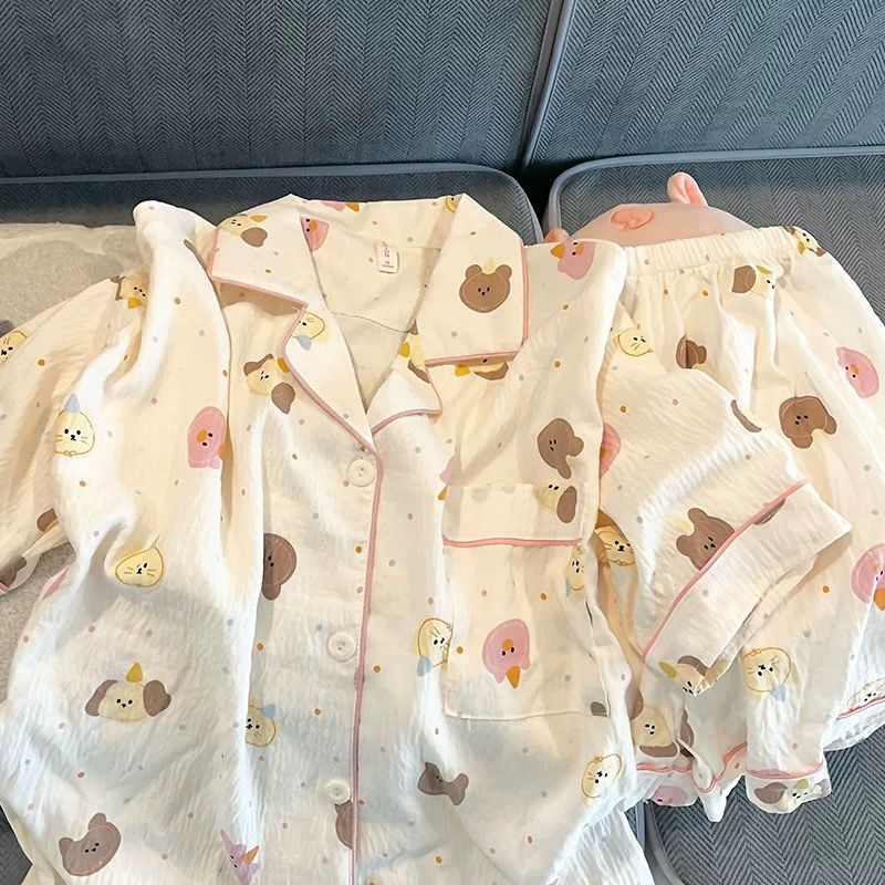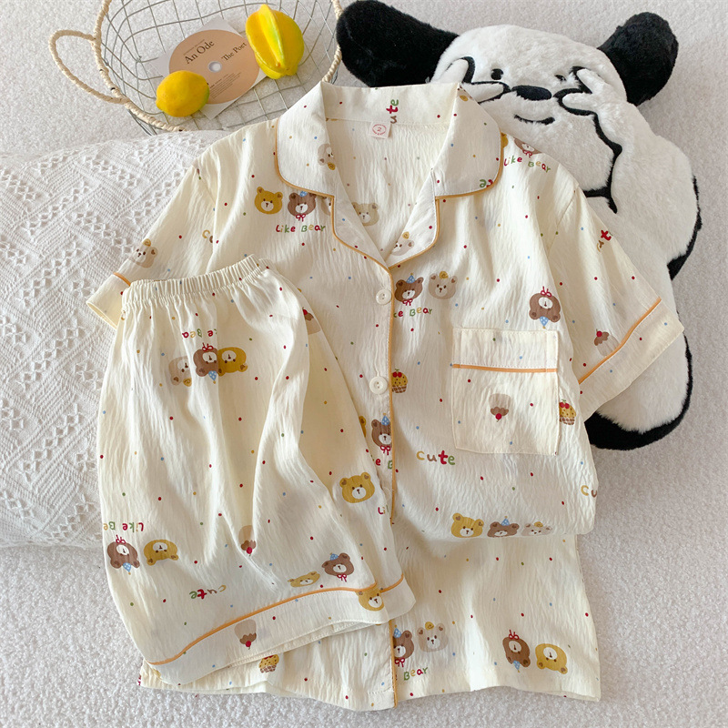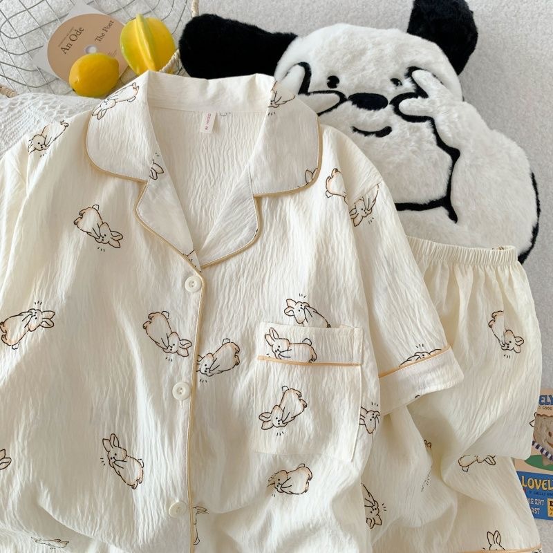 잠옷 여성의 여름 얇은 일본 스타일 만화 인쇄 구름면 반팔 반바지 홈 의류 세트 TikTok스토어 가기