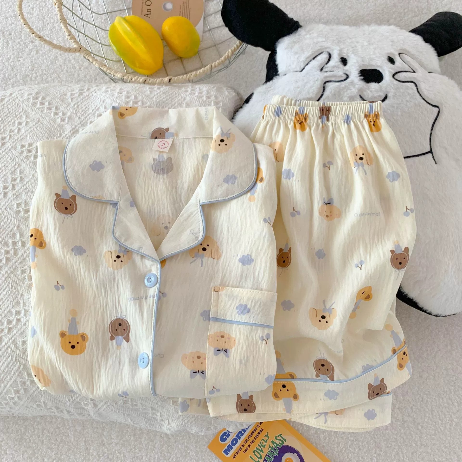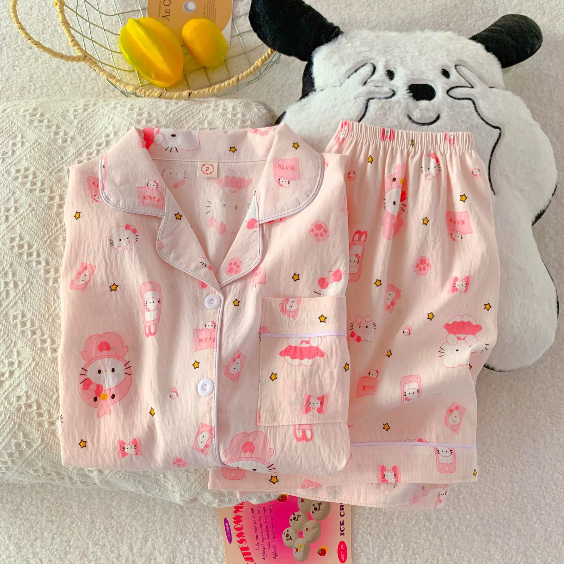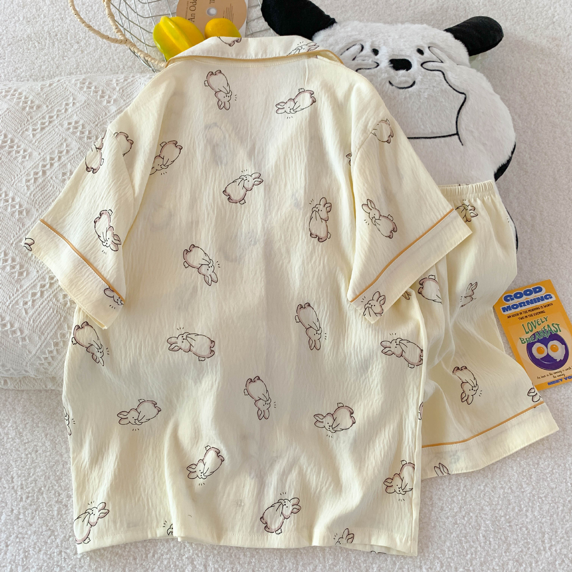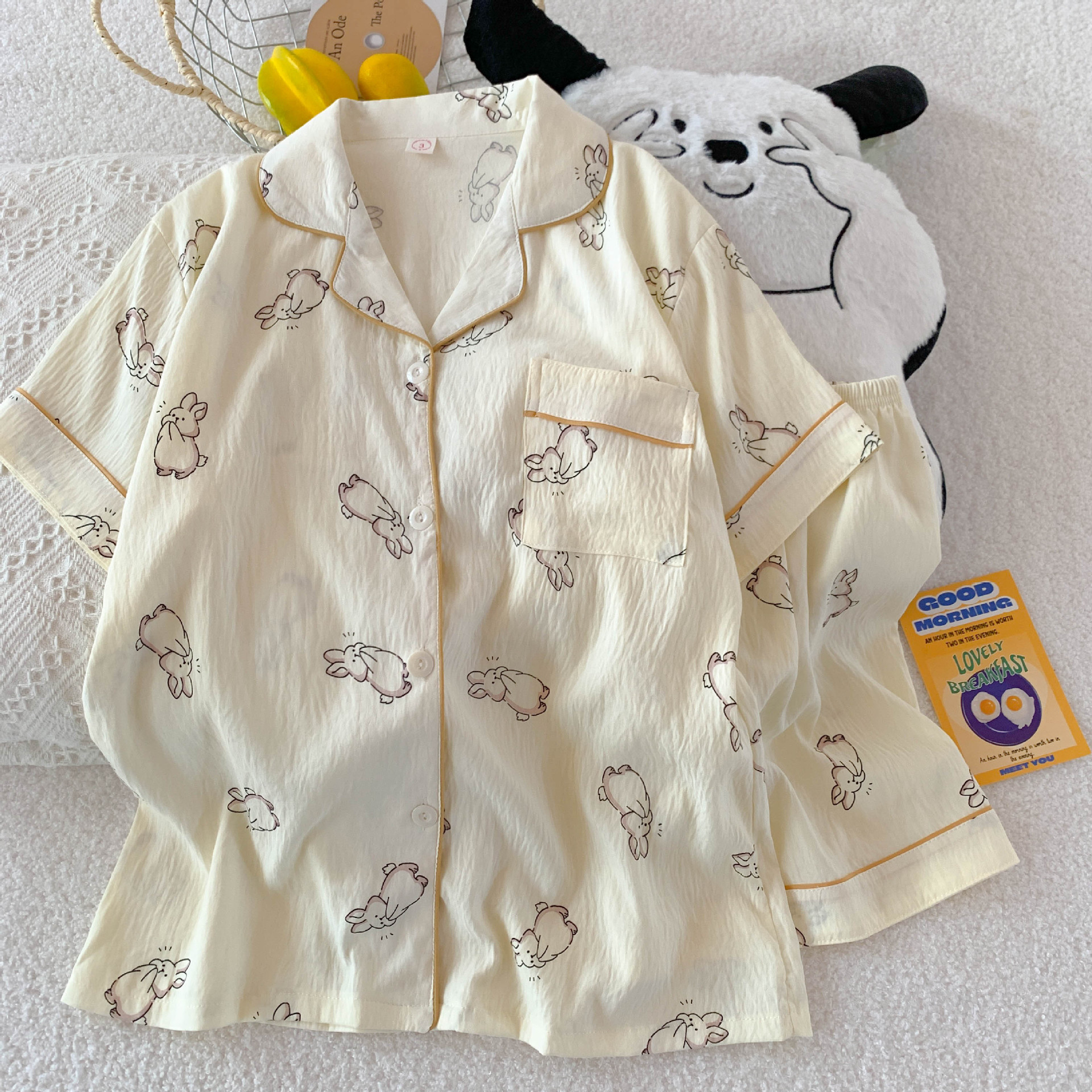 잠옷 여성의 여름 얇은 일본 스타일 만화 인쇄 구름면 반팔 반바지 홈 의류 세트 TikTok스토어 가기