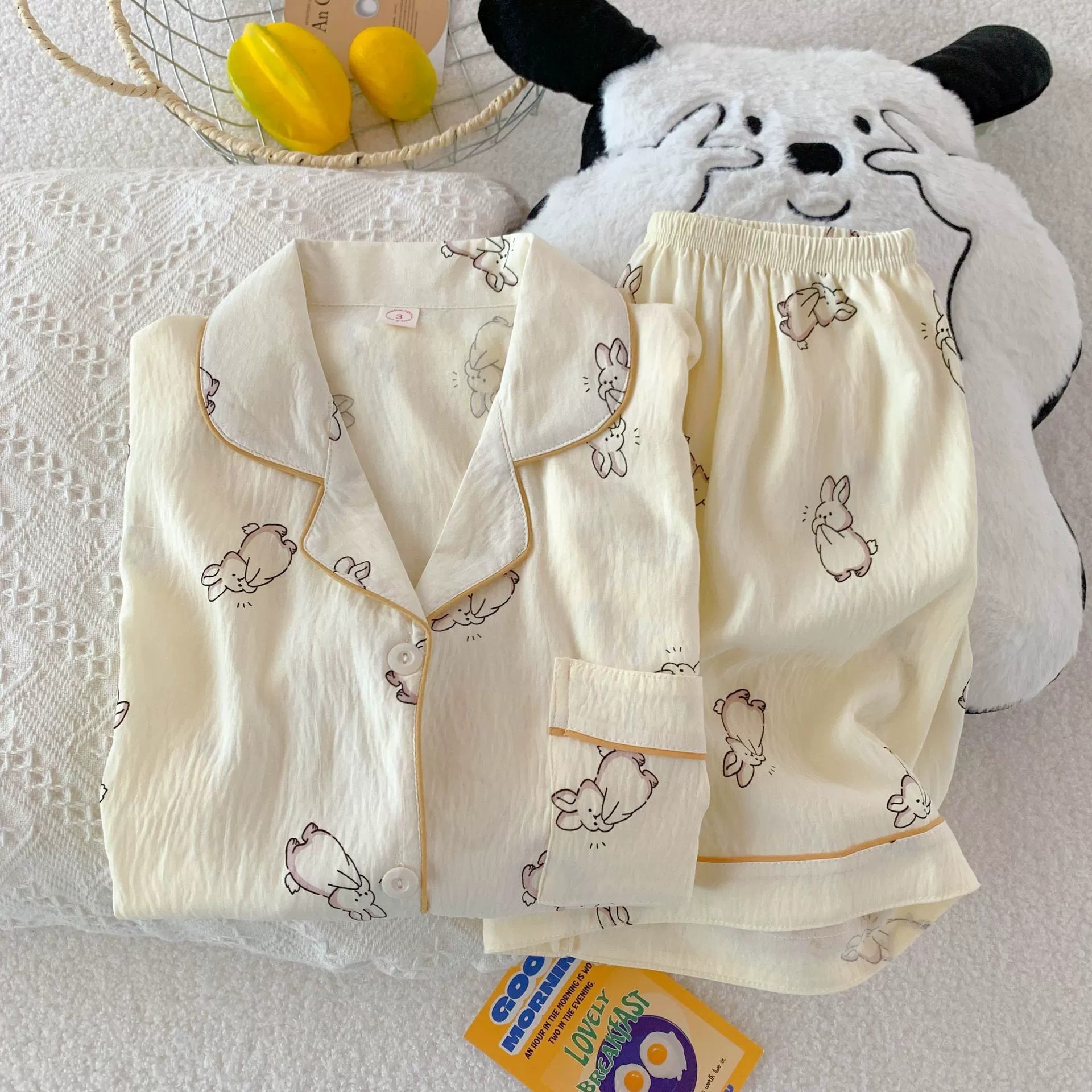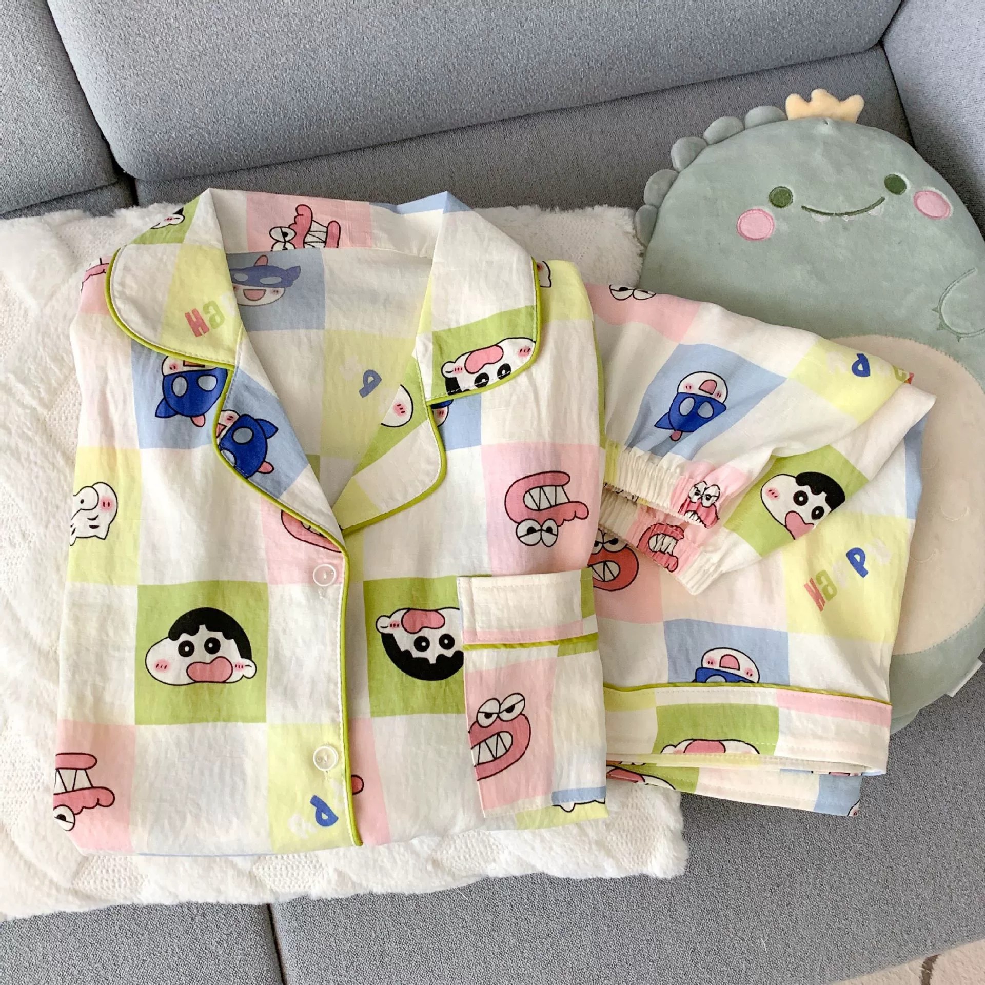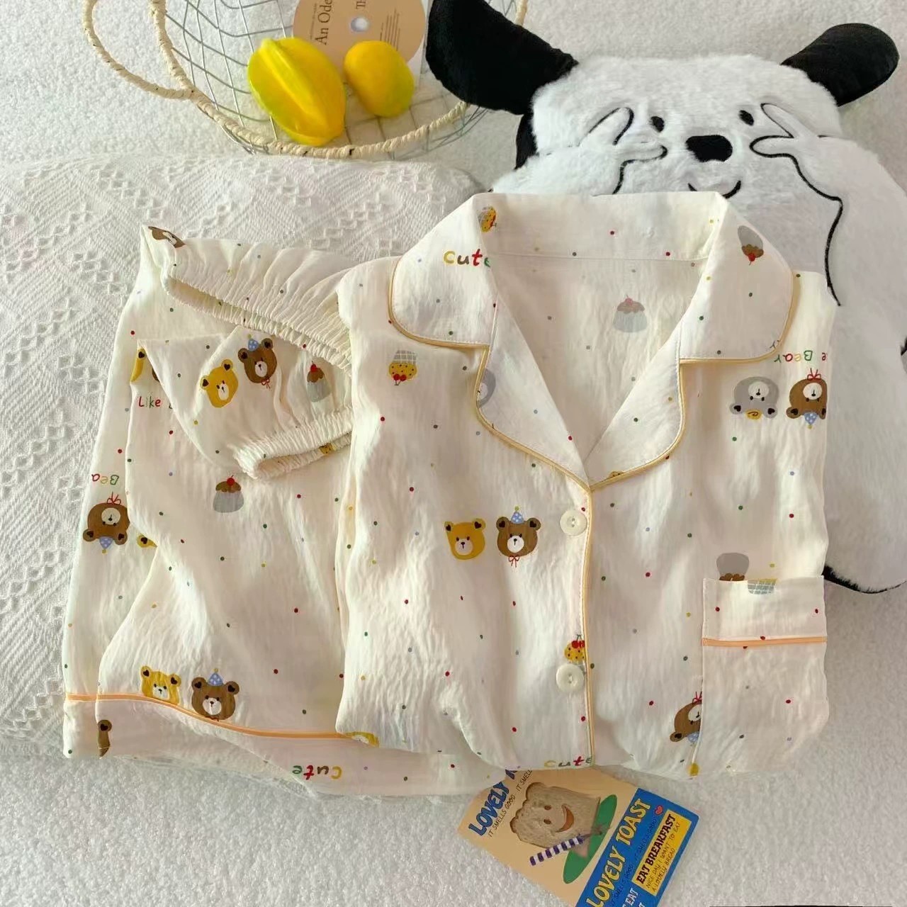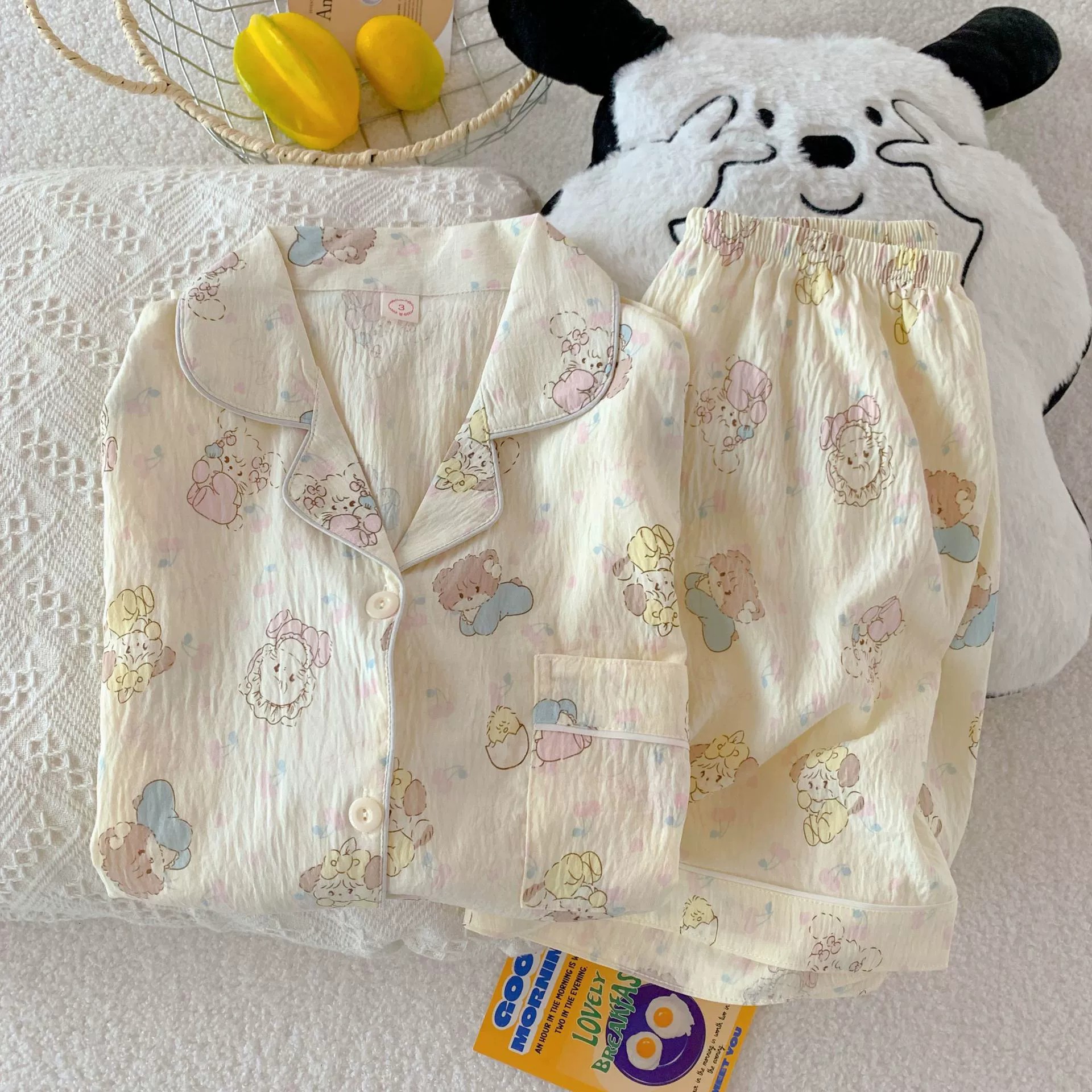 잠옷 여성의 여름 얇은 일본 스타일 만화 인쇄 구름면 반팔 반바지 홈 의류 세트 TikTok스토어 가기