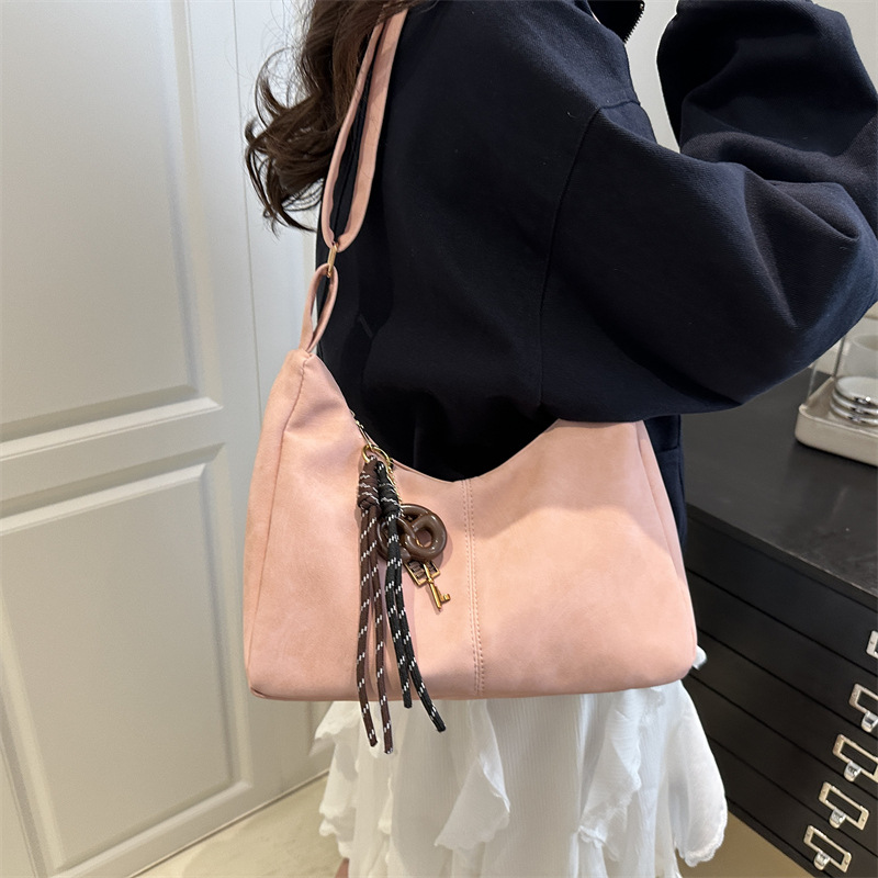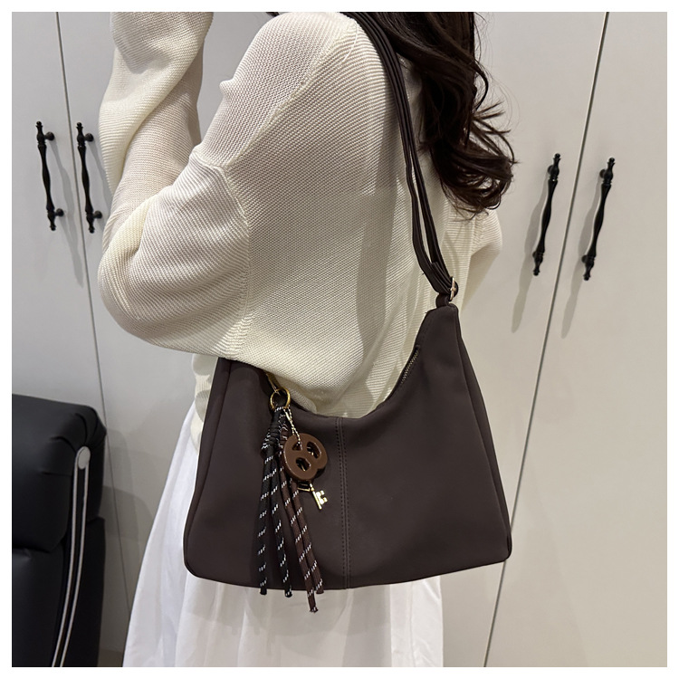 레트로 우아한 캐주얼 2025 대용량 봄 새로운 단색 한국 스타일 통근 크로스 바디 어깨 가방 여성