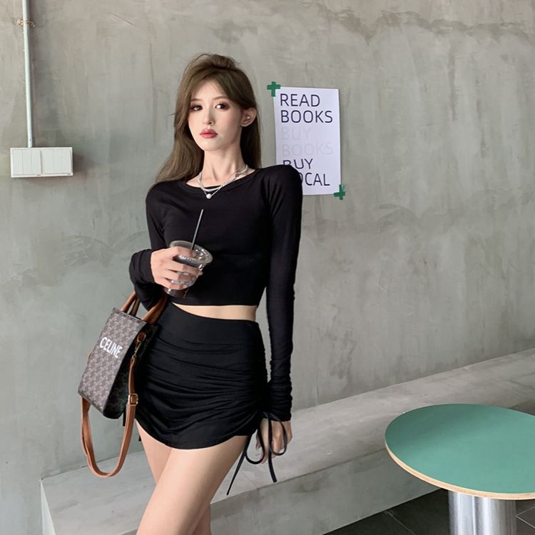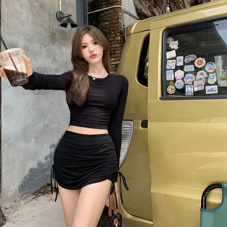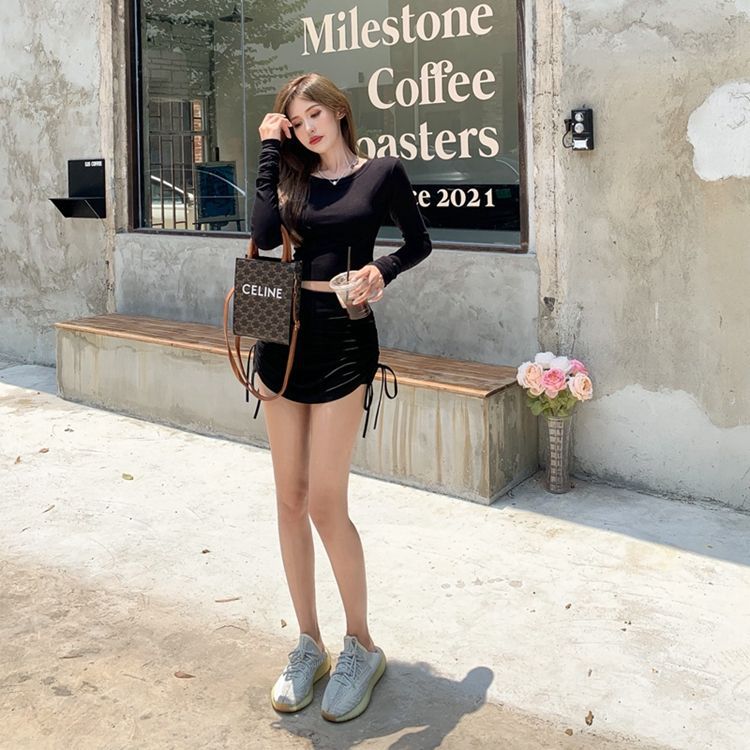 그림 끈 주름 치마 여성의 높은 허리 슬림 A-라인 짧은 치마 여름 작은 뜨거운 소녀 섹시한 엉덩이 문화스토어 가기