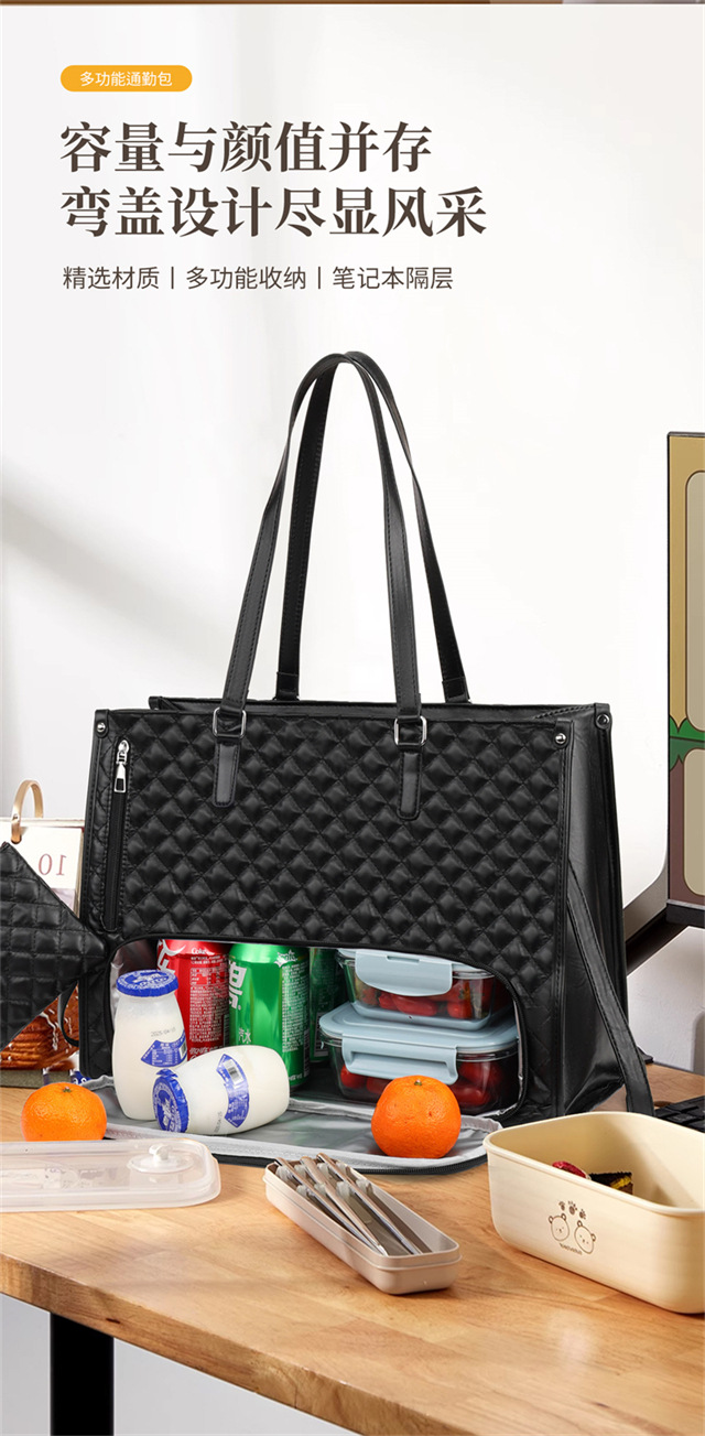 새로운 2 in 1 핸드백 도시락 조합 가방 대형 핸드백 여성 단열 도시락 여성 크로스 바디 컴퓨터 가방